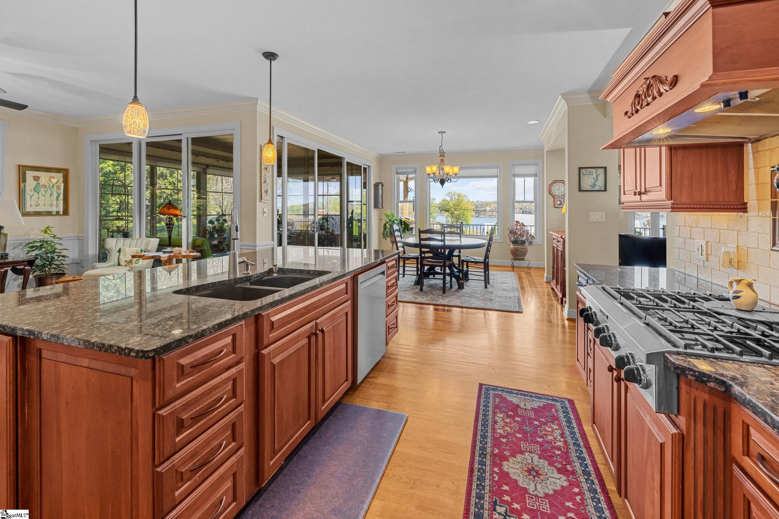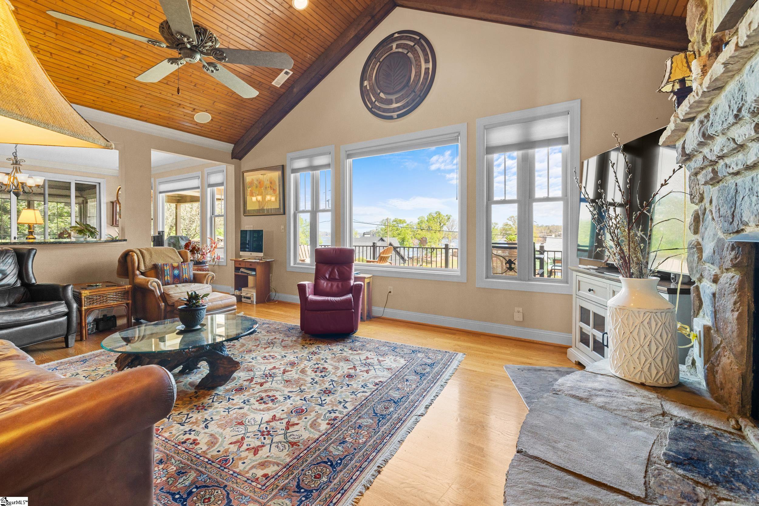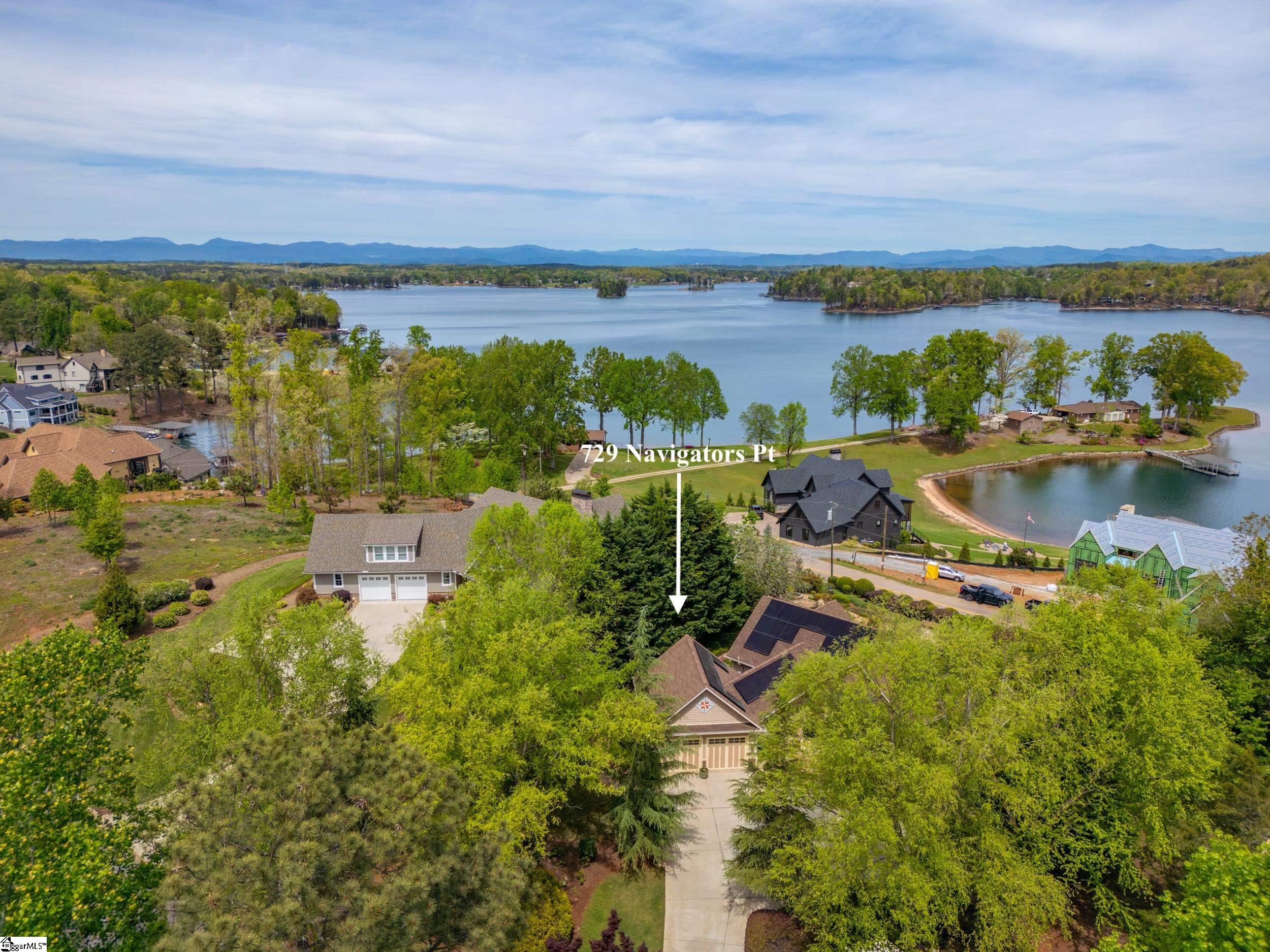 Welcome to 729 Navigators Pointe: This lovingly cared-for home features 3+ bedrooms, 3.5 baths, a sunroom/screened porch, a recreation room, a bonus room, and great storage space. Nestled on the interior of Lake Keowee, it boasts stunning year round mountain and lake views, along with a deeded boat slip #28. As you enter the main level, you’ll be greeted by a tongue-and-groove ceiling, a charming stone fireplace, and breathtaking vistas. Whether you’re entertaining family and friends in the informal dining area, keeping room, sunroom, or on the newly updated Timbertech deck, this home provides the perfect setting. The spacious kitchen is equipped with a 6 burner gas cooktop, granite countertops, a large island, a walk-in pantry, a beverage fridge, and an abundance of cabinetry. The primary suite offers double sinks, a jetted tub, a large walk-in tile shower, and direct access to the deck for ultimate relaxation. The main level also includes a powder room and a laundry room. Descend to the lower level, where you will discover 2 guest bedrooms, 2 full baths, a recreation area, a wet bar, and a bonus room that can serve as an optional fourth bedroom, if desired. For storage, the 2-car garage on the main level is complemented by over 500 square feet of heated and cooled storage below, which includes a workshop and a covered patio area. Step outside to enjoy the beautifully mature landscaping and the serene oasis the current owners have cultivated. The back yard has been completely, and wonderfully, transformed so you can relax to the soothing sounds of your private pond and waterfall, practice your putting skills, unwind with a drink by the fire pit while taking in the stunning views of Lake Keowee and the Blue Ridge Mountains, or relax in the hot tub. The deeded boat slip #28 is close by and it is a deep water slip at the very end of the dock making docking a breeze. The owners installed solar panels in 2021 (owned, not leased) so you’ll enjoy incredibly low power bills throughout the year. Additional features include: 26KW natural gas home generator, irrigation system, central vac, radon mitigation system, mini-split installed in primary for those that prefer additional hot or cool for sleeping, and much more. If you enjoy a morning or evening walks, you’ll love this location as Navigators Pt is a great street to walk down to the boat slip or community owned beach area, and the owners even put a gate in to access Luther Land behind the home providing a fairly level and low traffic street to walk and take in the incredible lake and mountain views seen from the home.