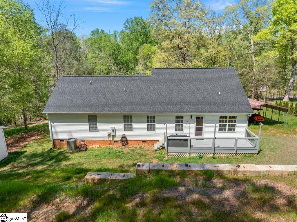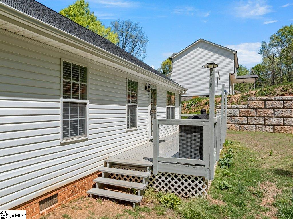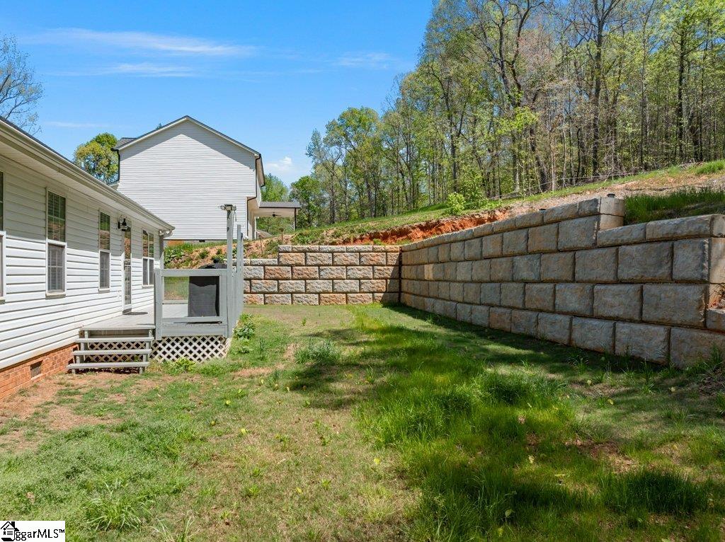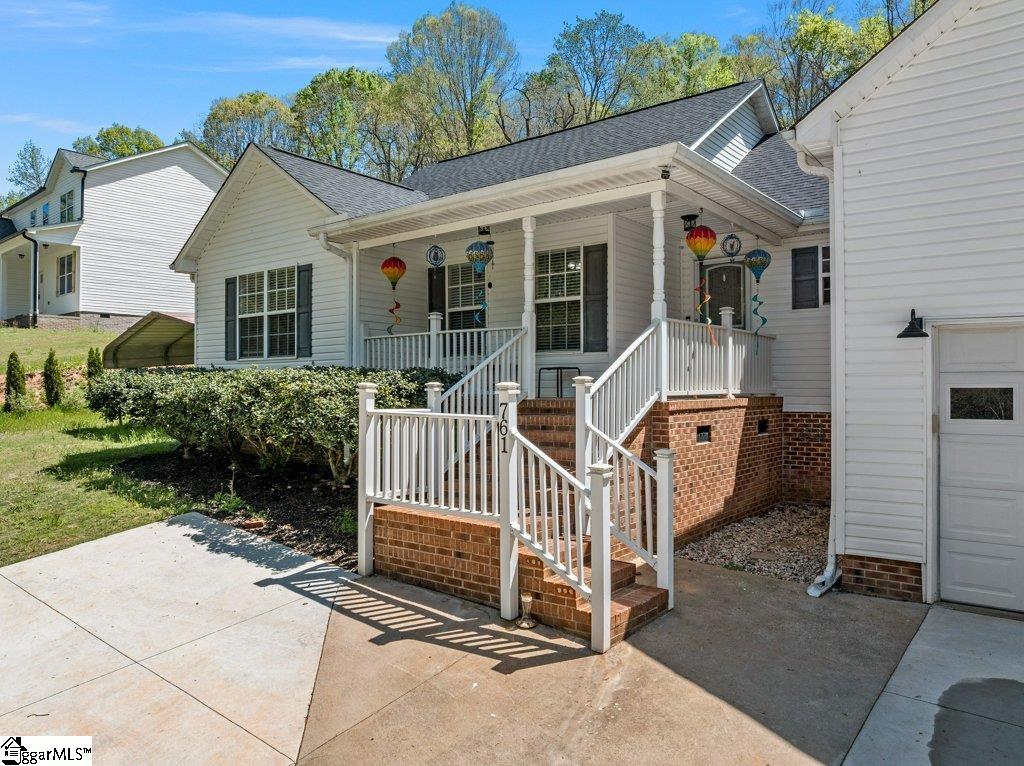 BACK ON THE MARKET DUE TO NO FAULT OF THE SELLER! Rare 9.7-acre opportunity with privacy, flexibility, and no HOA—just minutes from Greenville, Spartanburg, and GSP Airport. Opportunities like this are increasingly difficult to find—two combined parcels totaling approximately 9.74 acres, offering a unique blend of usable homesite, wooded privacy, and long-term flexibility in a rapidly growing Upstate location. The home is ideally positioned on its own ~0.67-acre parcel, with an additional ~9.07-acre tract providing natural buffer, recreation, and future potential. The land features a mix of rolling topography, mature trees, a creek and privacy-enhancing landscape. Inside, the home offers approximately 1,900 square feet with 3 bedrooms, 2 bathrooms, and a flexible layout including a spacious flex room over the garage. The kitchen has been updated with granite countertops, stainless steel appliances, and modern finishes, opening into comfortable living and dining areas designed for everyday living and entertaining. Recent improvements focus on functionality, usability, and long-term value, including a new roof (2024), expanded driveway with improved turnaround and parking, and a substantial retaining wall system with integrated drainage designed to enhance outdoor living and protect the homesite. A newly created patio area provides a private outdoor retreat surrounded by natural landscape. Interior finishes offer a solid foundation with opportunities for personalization, allowing buyers to tailor aesthetic updates to their preferences while benefiting from major system and infrastructure improvements already completed. Located within convenient access to Five Forks, Woodruff Road, BMW, and I-85, this property combines space, privacy, and accessibility—an increasingly rare combination in today’s market.