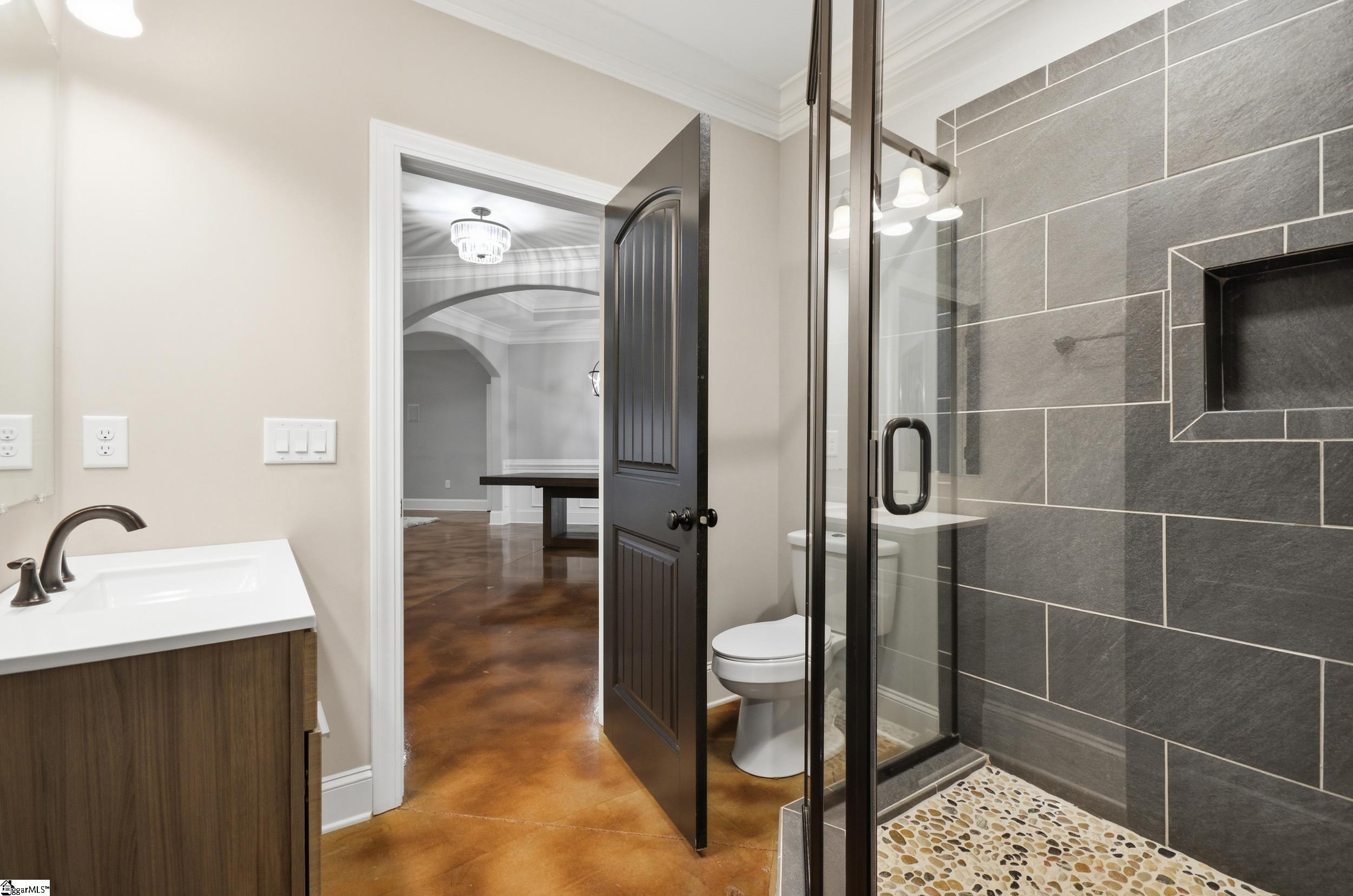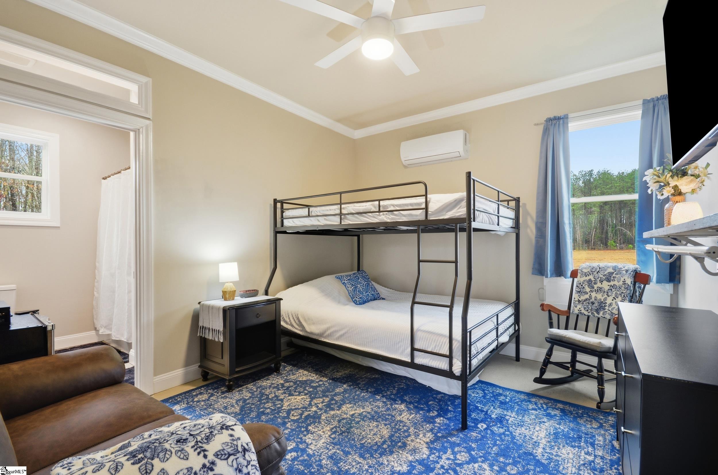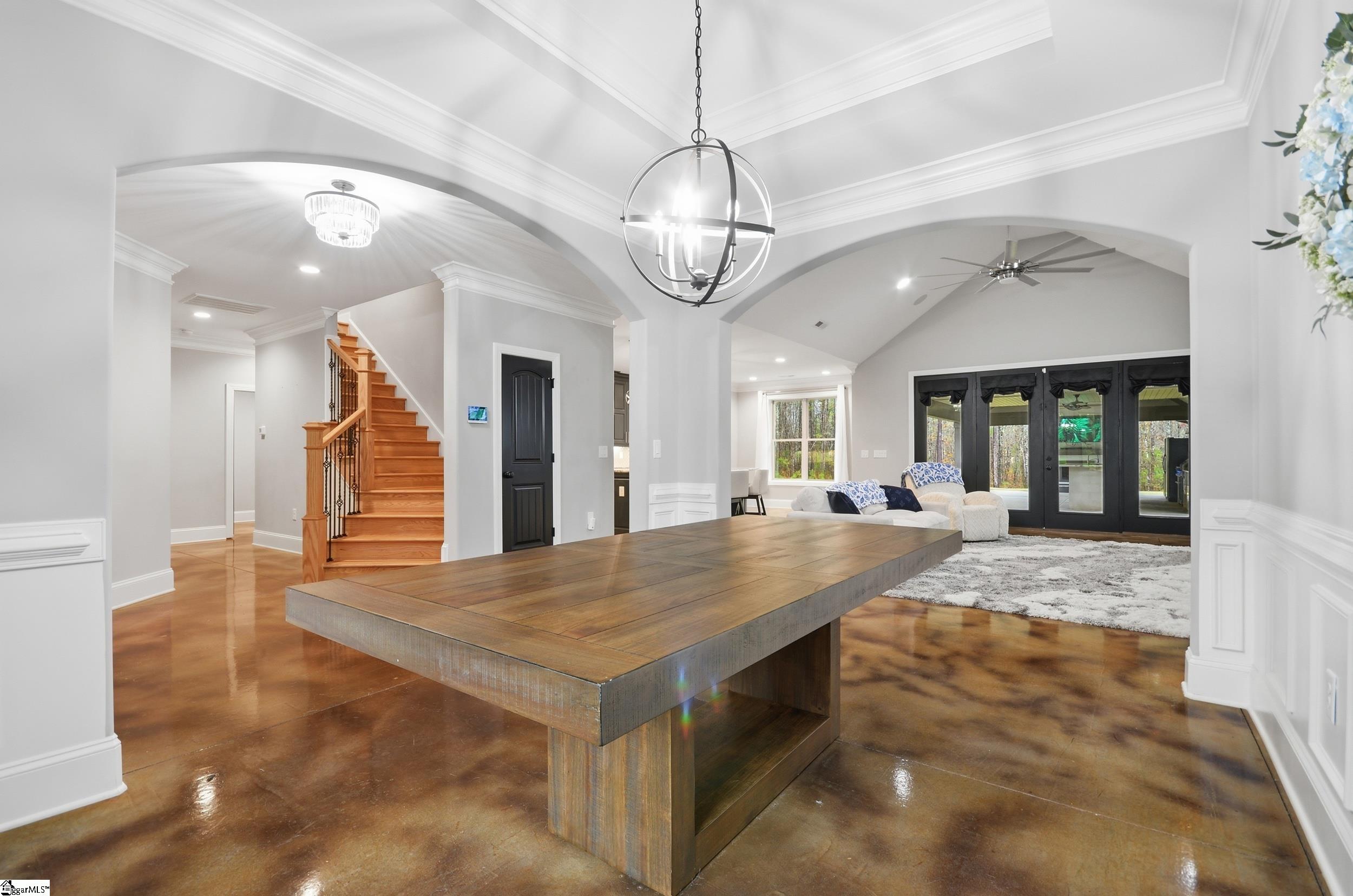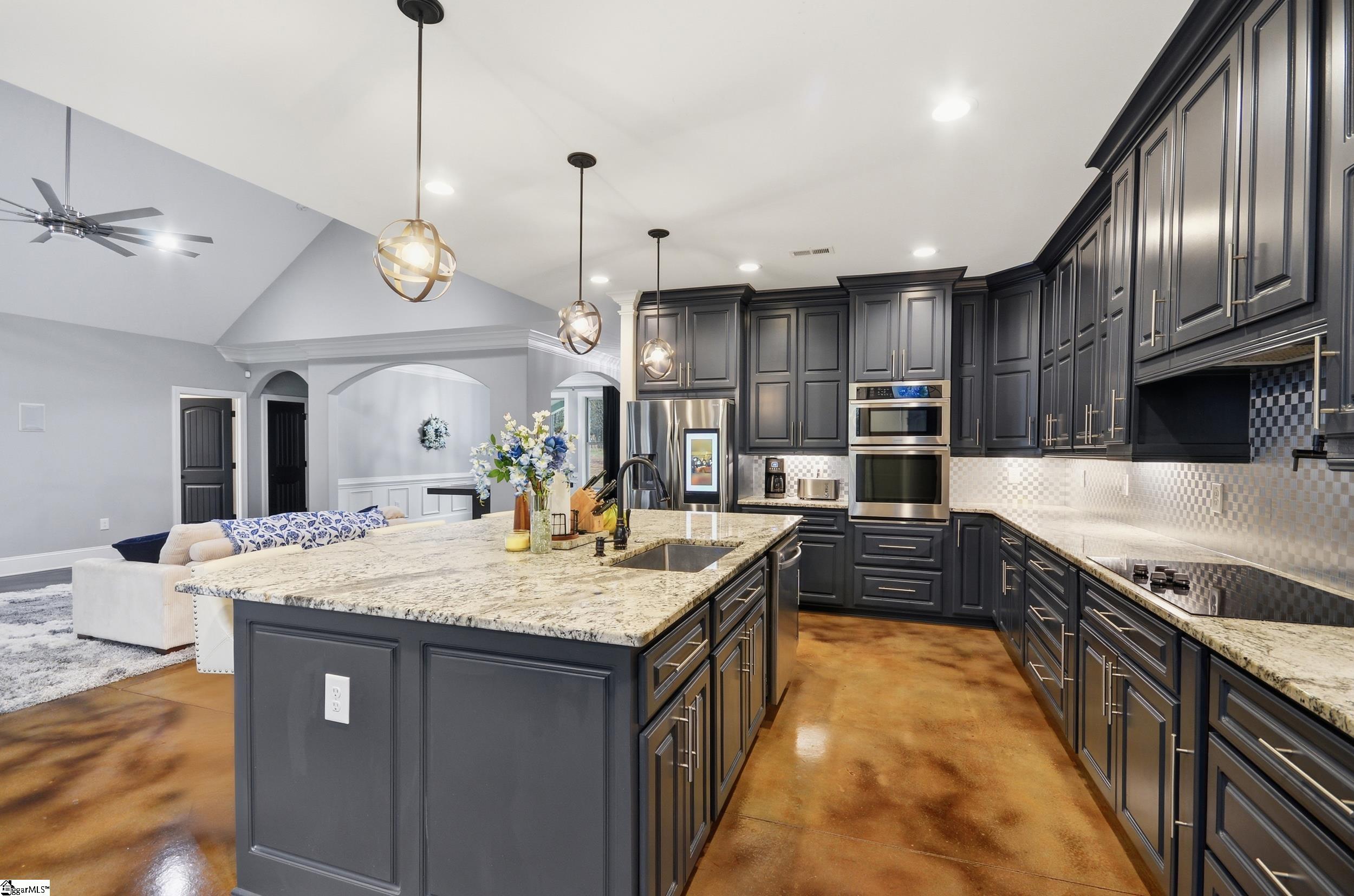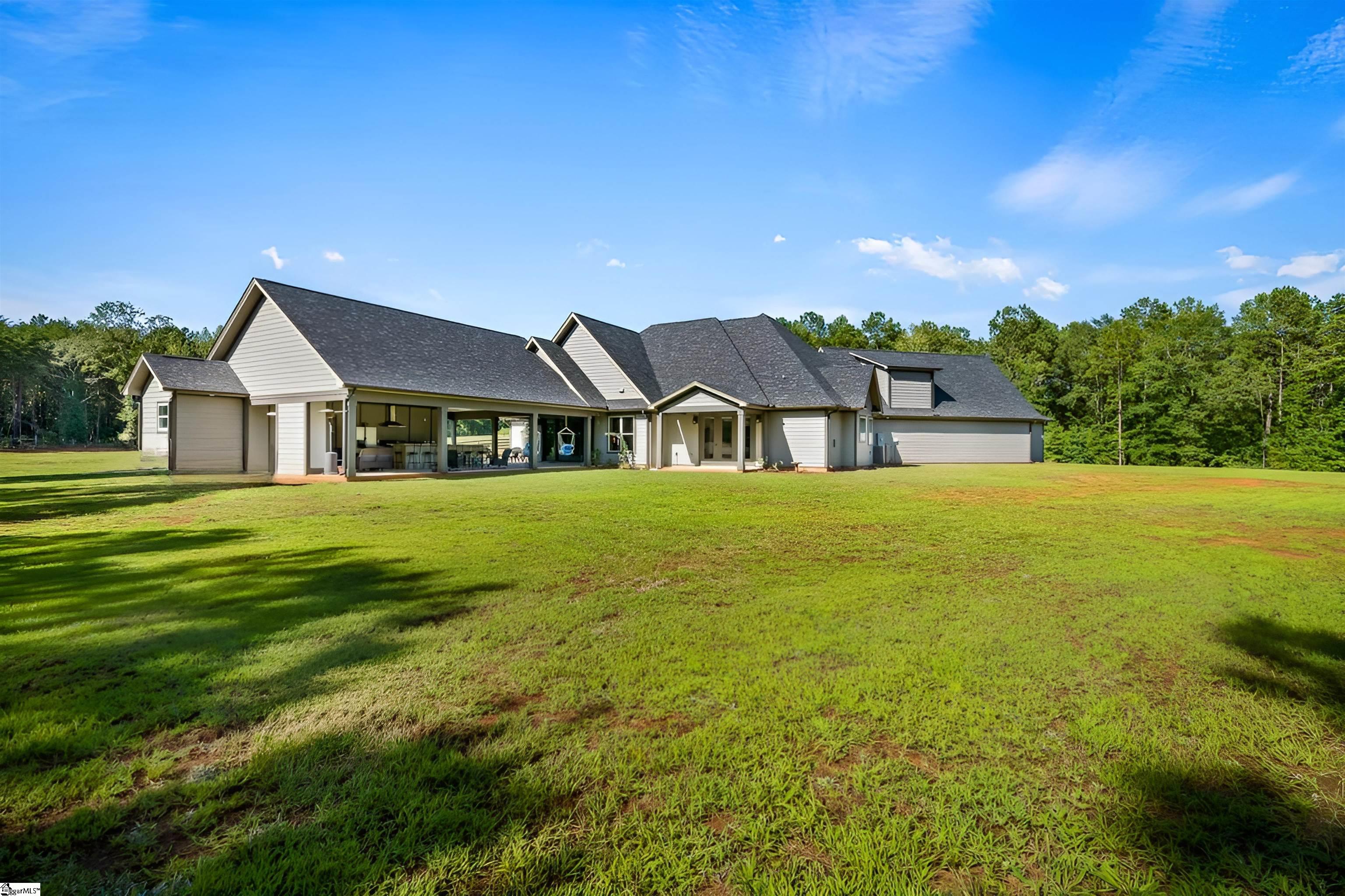 PRISTINE 2019 CUSTOM HOME ON 20+ ACRES! The home was quality built no stone left unturned. When you pull through the driveway you will pass 300′ of woods lining the front for privacy and a gated entry. You will see a beautiful side yard with 12 zone irrigation system AND the entire property is fenced-in. When you enter the home, you will be in awe of the details with bullnose sheetrock corners and arched entryways into the dining room with wainscoting and tray ceiling with double crown molding. The living room has beautiful vaulted ceilings and a technology closet with a hub for the hardwired security system covering the home, surround sound speakers, and more. The kitchen has soft close wooden cabinets to the ceiling, built-in Samsung Smart microwave and oven, dishwasher, Samsung smooth cooktop with pot filler, and Samsung refrigerator with touch screen Family Hub which allows you to stream music, watch TV, see inside your refrigerator, share photos and messages with touch-screen notes, and more. The kitchen has a walk-in pantry, breakfast nook, and large island with deep overhang. From the kitchen and living room are 8′ French doors leading to a 33′ x 49′ covered outdoor patio with kitchen featuring a propane grill, sink, refrigerator, ice and trash compartments and a living area with vaulted ceilings, TV hook-up, and electric fireplace. From the outdoor living area is a bedroom with mini-split and full bathroom. Inside is a split floor plan with 2 large bedrooms with jack-n-jill bathroom and opposite side is a 3rd bedroom with full bathroom with tiled step-in shower, laundry room with a sink and TWO washing machines and TWO dryers, and a master ensuite. The master suite is a true oasis with an 8′ door leading to a covered patio overlooking a green space pre-wired for a hot tub and pool. The bedroom has tray ceilings with double crown moldings. The master bathroom has separate owner’s height sinks with granite countertops, garden tub, tiled step-in shower with Pulse spa shower system, and 2 walk-in closets with custom shelving. You will notice ample storage with multiple hall closets and a hug attic. There is more storage space in the oversized 4 car garage that is FULLY insulated with insulated garage doors and electric car hook-up. This home was built with the best material – cement fiber siding, 2×6 walls throughout, energy efficient roof with foil lining, and stained concrete floors throughout the main level for the true farmhouse feel. The grounds are breathtaking with designated green space for the family to enjoy and fenced-in the farm area for their goats and chickens or horses. To truly appreciate all this home, you must see it in person. DON’T MISS THE VIRTUAL VIDEO TOUR LINK.