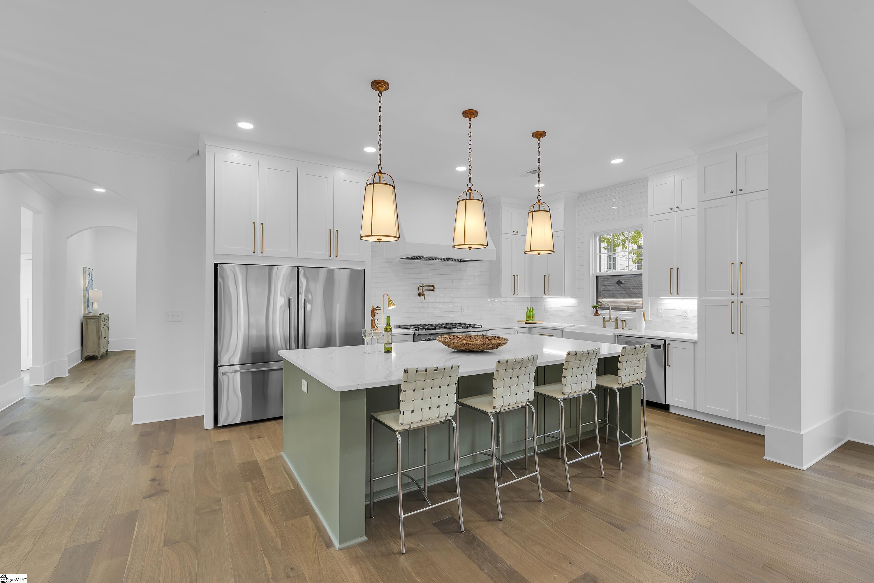 Welcome to 8 Buist Ave where you will fall in love with this stunning custom-built home offering luxury finishes, exceptional craftsmanship and an unbeatable location in the highly sought-after North Main area?just minutes from vibrant downtown Greenville! From the moment you arrive, the inviting covered front porch with custom wrought iron railings sets the tone. Enjoy morning coffee or evening cocktails while overlooking this charming, established neighborhood surrounded by amazing neighbors! Step inside to a welcoming foyer that opens into a light-filled interior featuring soaring ceilings, 1-foot baseboards, cove molding, classic archways, all blending timeless traditional design with the benefits of brand-new construction. The open-concept living room boasts vaulted ceilings and a dramatic floor-to-ceiling tiled gas log fireplace with custom mantle. Expansive 8-foot sliding glass doors provide seamless access to the large screened porch creating exceptional indoor-outdoor flow. Designed for both everyday living and entertaining, the gourmet kitchen is truly the heart of the home. Highlights include: HIGH END appliances, side by side oversized fridge and freezers, double ovens, beautiful countertops, custom backsplash to the ceiling, massive center island with ample bar seating available, the list goes on and on! The dining area is just off the kitchen and is anchored by a statement light fixture and flows well for any size dinner party! Just off the main living area the screened-in porch is ideal for year-round entertaining complete with tongue-and-groove ceiling, custom stone gas fireplace with floating mantle, and has access to adjacent rear concrete grilling pad which makes outdoor cooking effortless. The main-level owner’s suite is a true retreat featuring: walk-in closet, incredible bathroom suite w dual vanities, ample cabinetry, private water closet, soaking tub, walk-in marble shower and more! Additional main level features are large laundry room with elevated workstation, a powder room, rear family entrance drop zone with built-ins and a walk-in pantry with custom storage. Upstairs provides a flexible and functional layout ideal for families of any size. You’ll find an open study/game room, three spacious bedrooms (one true private en-suite with double walk-in closets and two add bedrooms both with great closets and both with convenient access to large shared bathroom complete with dual vanities and a custom tiled tub and shower combo! This home also has a rear two car carport and a wonderful rear garden with nice lawn complemented by a serpentine seat wall. Within walking distance to neighborhood shopping, dining, and Harris Teeter and just minutes to everything downtown Greenville SC has to offer, this exceptional high-end new construction home offers luxury, location, and lifestyle all in one. Come experience North Main living at its finest!
