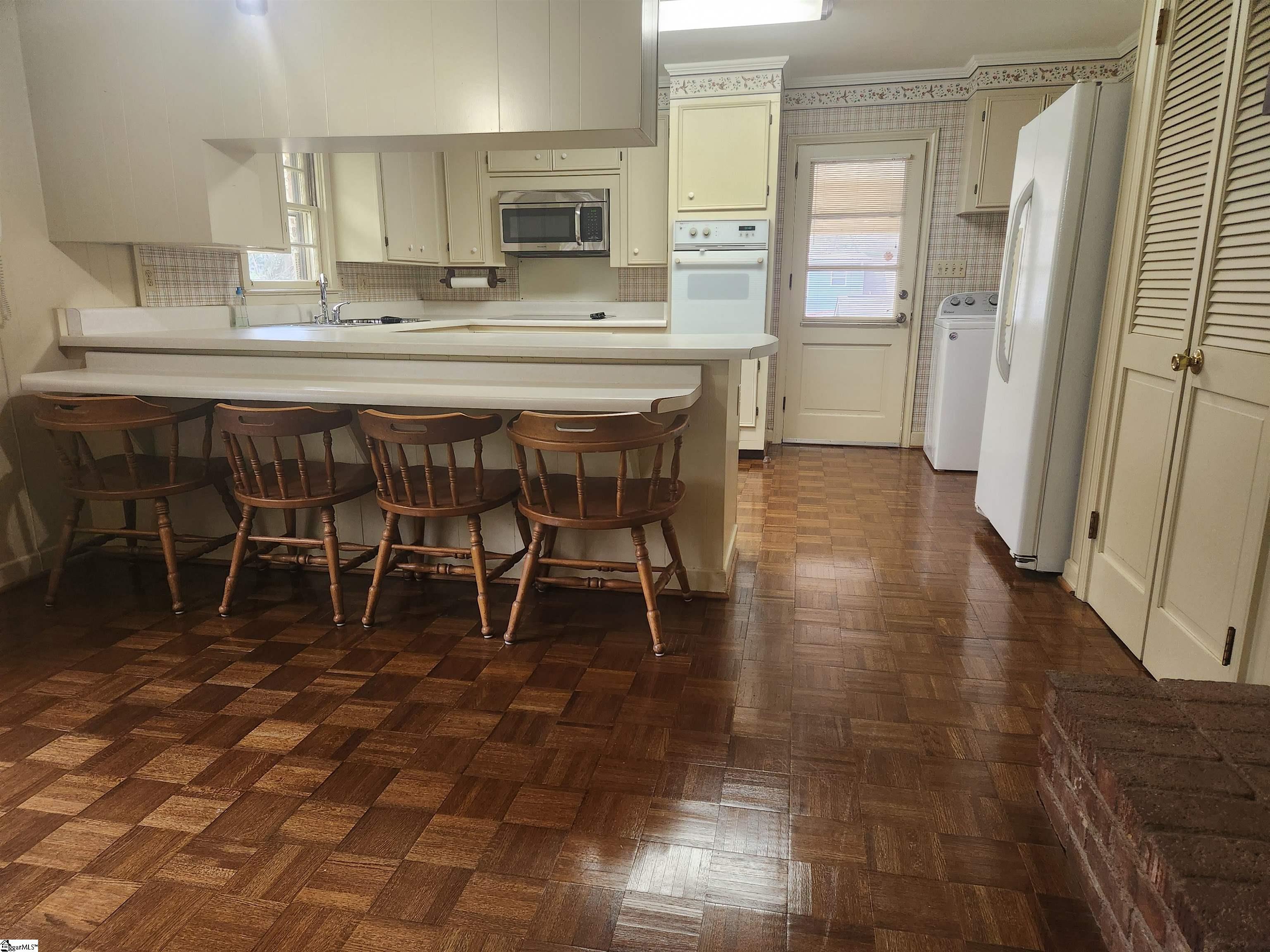 Welcome home to this mid-century charmer set in a quiet, established Greenville neighborhood. Conveniently located to Hwy 123 and Downtown. Large lush lot features mature trees that provide a tranquil setting. Built in 1960, this 3-bedroom, 2- bathroom brick ranch is well-maintained and has only had one owner. The spacious inside boasts dual living spaces with a fireplace in each of these rooms. Under the carpet, you’ll find the original hardwoods. There’s plenty of parking for multiple vehicles with the double attached carport, extra parking pad as well as a circular second driveway. Schedule a showing today.