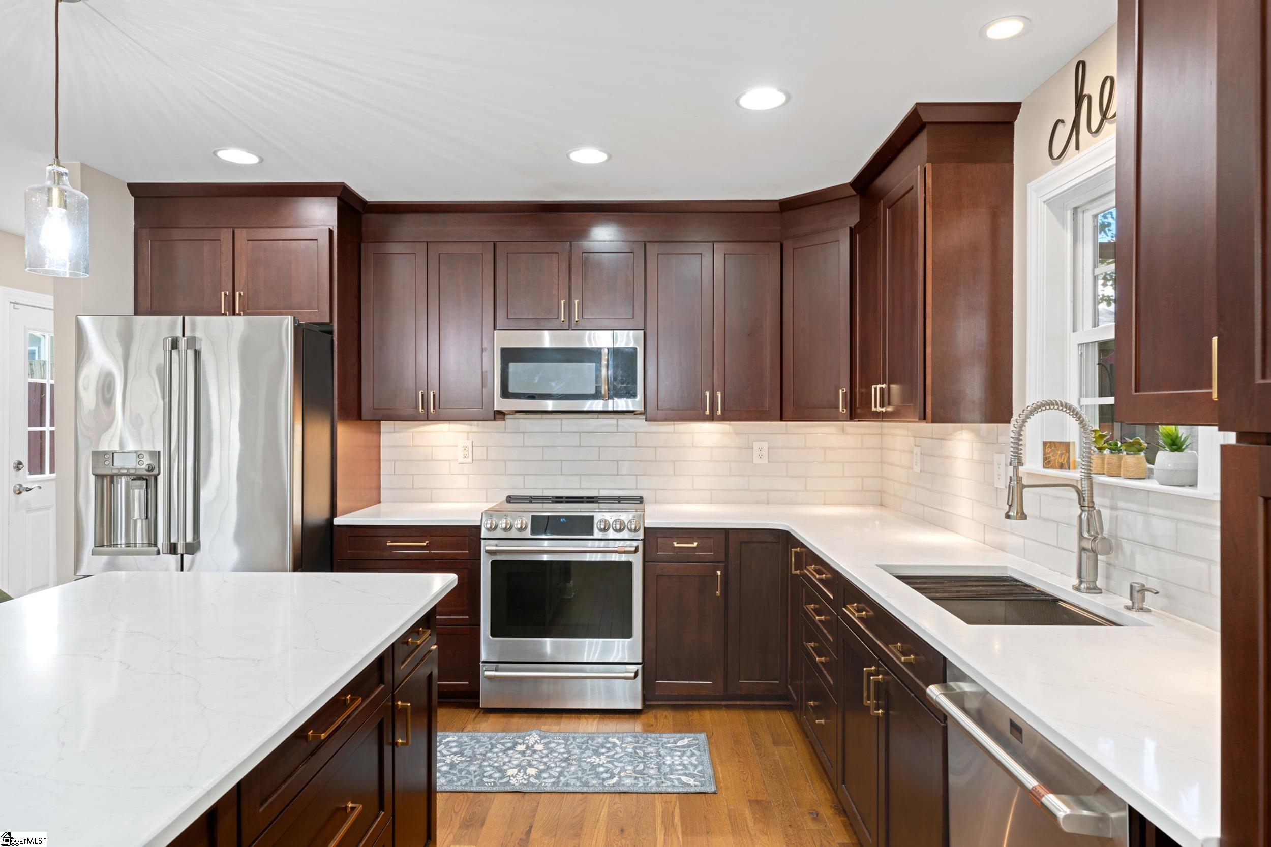 Nestled on a quiet street just off Augusta Road, this beautifully updated two-story home offers the perfect blend of privacy, convenience, and modern upgrades. Originally built in 2009 with a highly functional open floor plan, the home has been extensively improved to meet today’s standards of comfort and style. The main level is designed for effortless living and entertaining, featuring newer hardwood floors (2022), updated lighting, and a fully enhanced kitchen with quartz countertops, a stylish tile backsplash, a redesigned island at counter height, and GE Café appliances. The open layout flows seamlessly to the outdoor living spaces, now enhanced with new French doors (2026), creating the ideal setting for gatherings. A main-level bedroom with access to a full bath offers flexibility for guests or multigenerational living. Upstairs, the spacious owner’s suite provides a private retreat with its own screened porch, dual walk-in closets, and a well-appointed bathroom with dual vanities with updated Moen fixtures, new toilet, and generous layout. Two additional bedrooms and a full bath complete the second level. Major system upgrades provide peace of mind, including new HVAC systems (2024–2025), partial new ductwork, Ecobee smart thermostats, and a newly installed electric water heater relocated outside (2025). Additional improvements include newer LVP flooring in downstairs bathroom and laundry areas (2025), fresh interior paint throughout, updated cabinetry in the laundry room, and a new utility sink. The exterior has been equally enhanced with a new shed (2022) with electricity, leaf-filter gutter system (2023), and Eufy wireless security cameras (2024). New exterior doors, including a master bedroom door (2026), further elevate both function and curb appeal. Surrounded by mature trees, the home offers a serene, private setting while remaining just minutes from downtown Greenville, shopping, dining, I-85, and top-rated schools. A rare opportunity to own a thoughtfully upgraded home in the heart of Augusta Road. Make your appointment today!