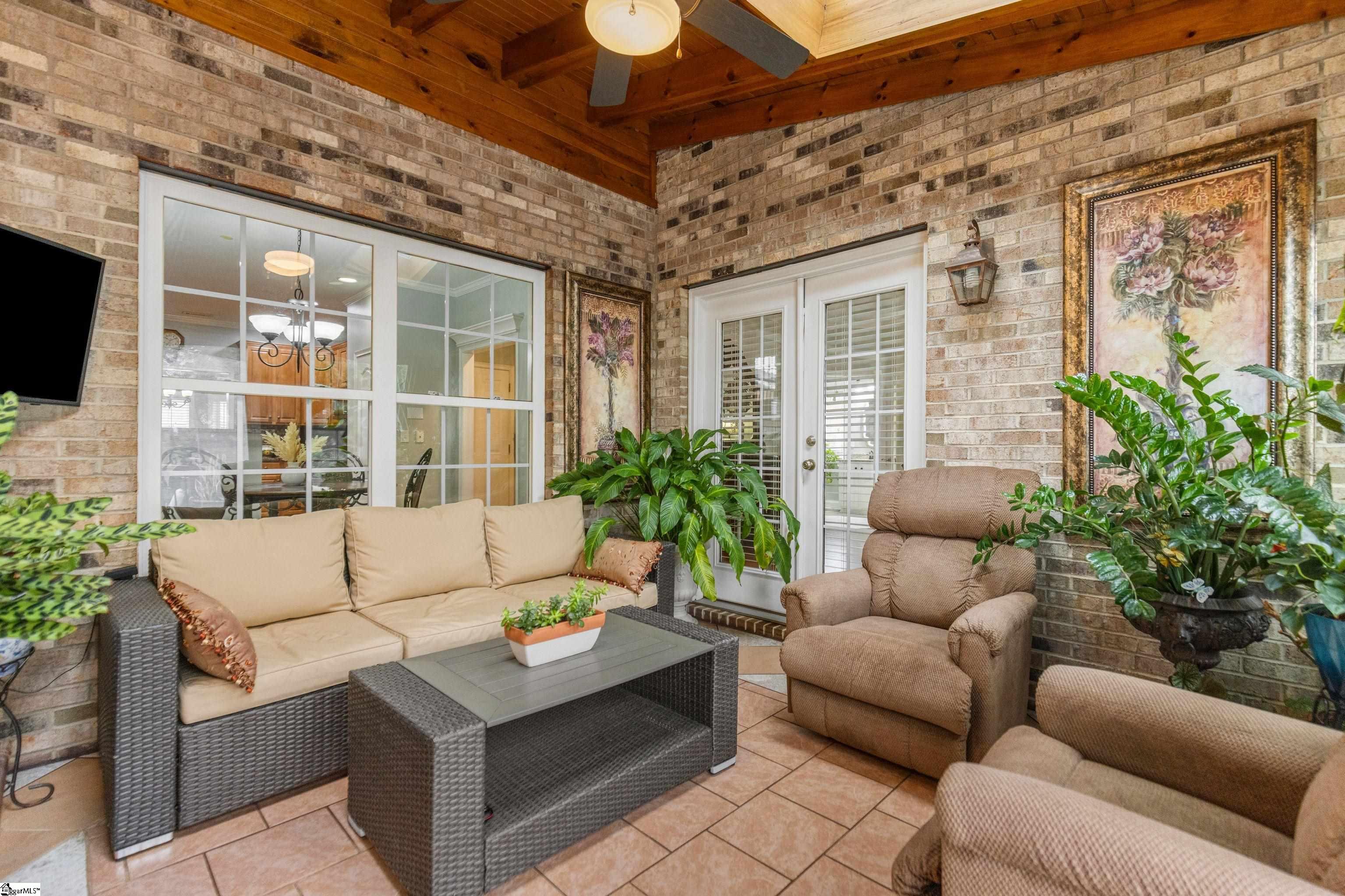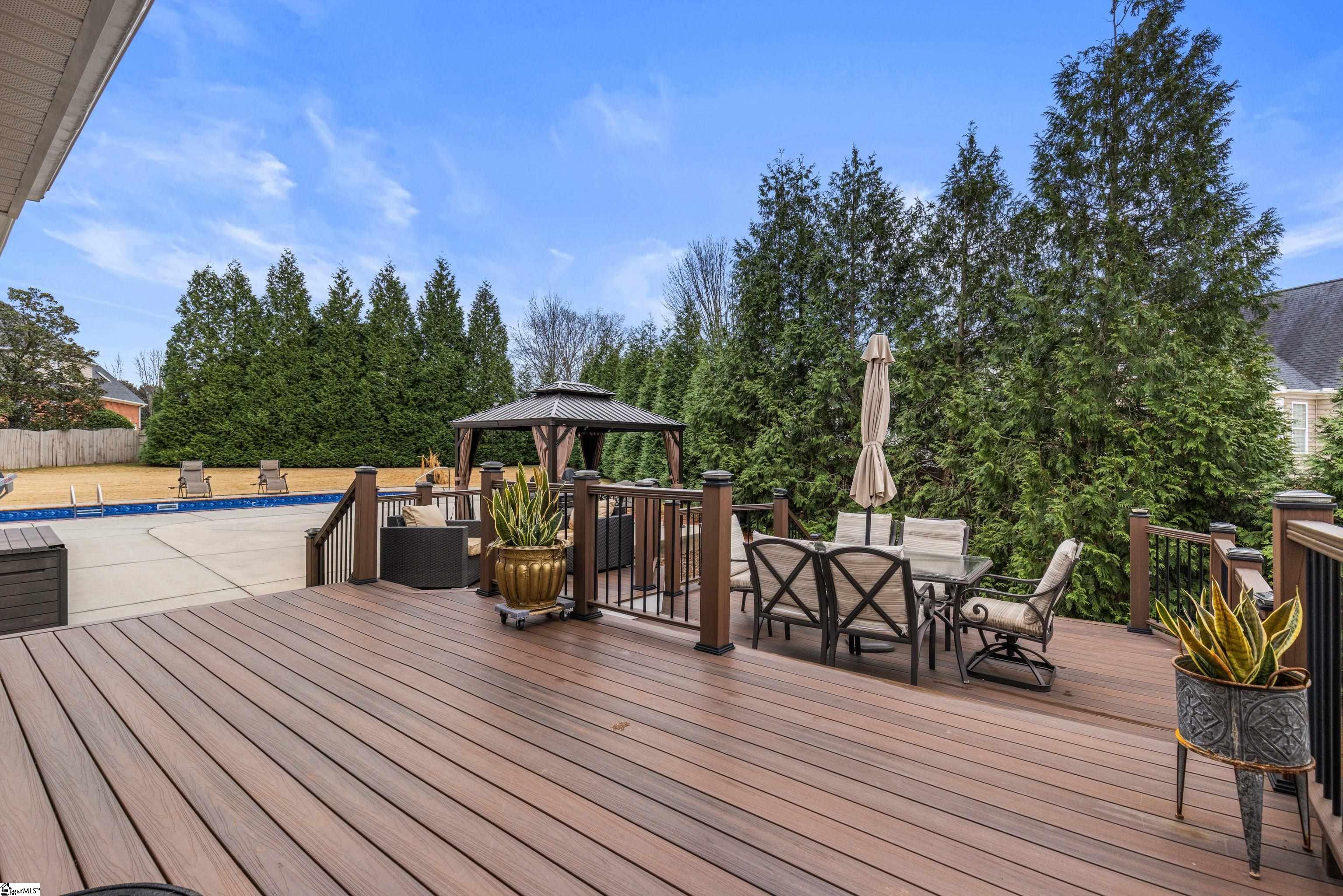Tucked away on a private cul-de-sac in the gated Riverwood Farm community, this exceptional 4-bedroom, 3.5-bath residence offers 3300 square feet of thoughtfully designed living space on nearly half an acre! Located in the highly rated Riverside school area, it combines space, quality updates, and outdoor enjoyment in one of Greer’s most desirable locations. Step inside to find a light-filled interior featuring a spacious kitchen with granite countertops, abundant cabinetry, and seamless flow into the breakfast area and formal dining room. The main living areas are perfect for hosting or everyday comfort, enhanced by an elegant tray ceiling and large windows allowing plenty of natural light. The standout feature is an a truly stunning sunroom addition just off the primary suite, coated in natural light and overlooking the backyard that has truly been transformed into an oasis. The primary suite also includes an updated bath with walk-in shower and a sizable walk in closet. Outside, enjoy your own private retreat with a privately landscaped yard, in-ground pool, and expansive deck ideal for outdoor gatherings. The fenced yard offers a rare combination of privacy and open space for relaxing or entertaining. Additional highlights include a second upstairs living area/flex space, updated primary bathroom, a new upstairs HVAC unit, and recent crawl space improvements. Community amenities include pool, clubhouse, and tennis courts, all just minutes from I-85, GSP Airport, Pelham Road shopping, and more.