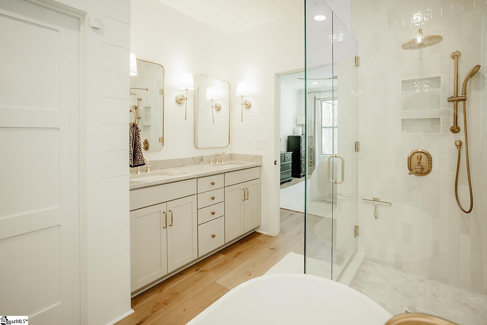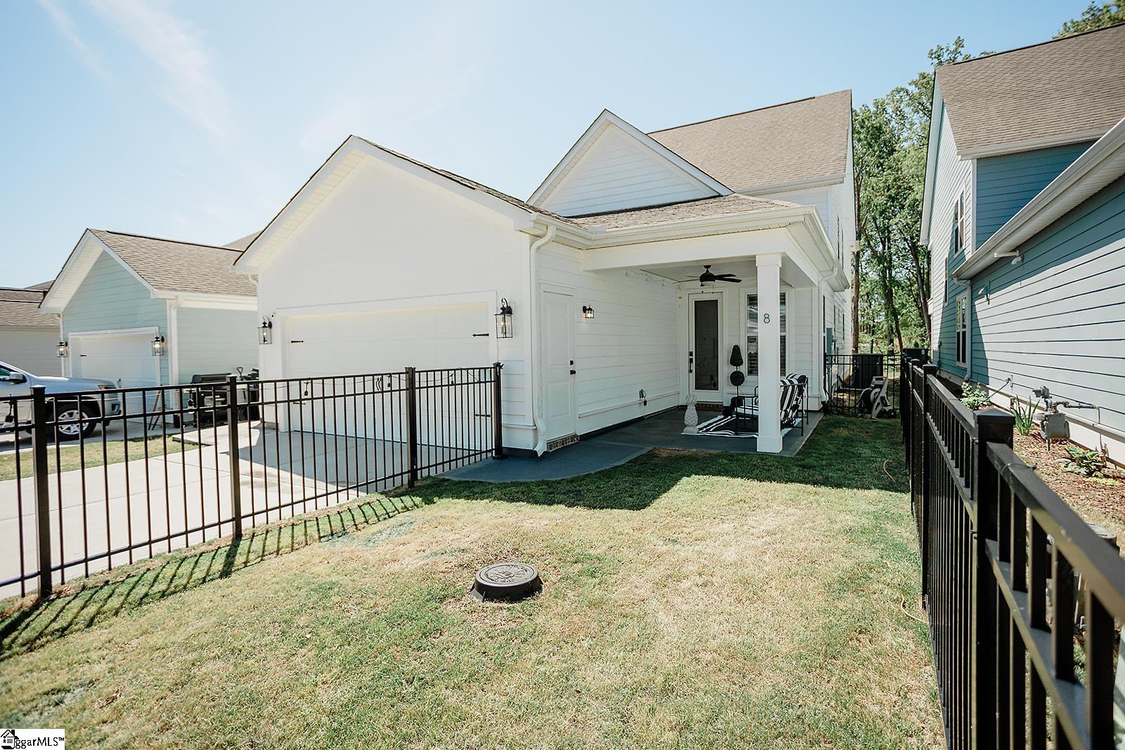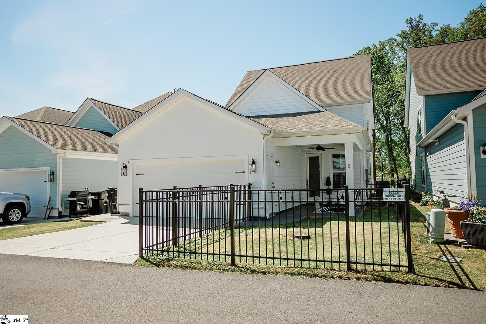 With preferred lender, SELLER OFFERING $10k toward interest rate buy down. Welcome to 8 Toynbee Drive, a beautifully crafted Charleston-style home built in 2023, ideally located just minutes from downtown Simpsonville and I-385. Situated in a charming, highly sought-after community know for its low country charm, this 4-bedroom, 2.5-bath residence with double balconies and a 2-car epoxy floor garage offers over 2,500 square feet of thoughtfully designed living space. This home features the sought-after “Avondale” Model Home floor plan by Crescent Homes—no longer available—and includes numerous custom upgrades along with a transferable structural warranty. The Settlement community provides exceptional amenities, including walking paths to the CCNB Amphitheater, a resort-style pool, playground, dog park, firepit overlooking a stocked pond, greenspaces, covered picnic pavilion with barbecue grills and planned pickleball and tennis courts. Neighborly community gatherings are scheduled regularly. As you step onto the property, be welcomed by a gated yard and painted concrete covered patio. Inside, you’ll find an open-concept layout highlighted by vaulted ceilings, wood beams, plantation shutters, a gas fireplace, and luxury vinyl wide plank flooring (COREtec Cairo Oak) throughout the main level and upstairs common space. This flooring is known for its durability, and is 100% water/dent/pet/kid/scratch/warp/buckle resistant with Lifetime Limited Warranty coverage. The gourmet kitchen is designed to impress with stacked cabinets, quartz countertops, soft-close drawers/cabinets, Nantucket Farmhouse Sink, floating shelves, a marble imitation backsplash, under-cabinet lighting, large custom hood range area, oversized custom farmhouse island, and stainless-steel Frigidaire appliances. The main-level primary suite offers a peaceful retreat overlooking the wooded backyard and pond, complete with a walk-in closet and spa-inspired bath featuring dual vanities, a tiled shower, and a soaking tub. Additional main-floor spaces include a flexible room ideal for an office or dining area(currently functions as a nursery), a walk-in pantry with wood shelving, laundry room with extra under stair storage, and powder room. Upstairs, a spacious loft is complemented by three additional bedrooms, a full bath, built in bookshelves, and ample storage. One oversized bedroom offers versatility as a media room or secondary suite, while another has a private ensuite function to the hall bathroom via a pocket door. Outdoor living is just as inviting, with an upper balcony overlooking the private backyard and scenic pond. Conveniently located just 5 mins from the NEW Simpsonville Fire Department, Simpsonville Police Department, Simpsonville Summary Court, and Gracely Park, with only a 20 minute drive to downtown Greenville, I-85, GSP Airport, and Prisma Health, this move-in-ready home combines comfort, style, and community living. Don’t miss the opportunity to make it yours. Please reach out to owner/agent Lauren Dorrity 864-363-5116 @ lauren@therealestateshoppeonline.com with all questions, enquires, and offers.