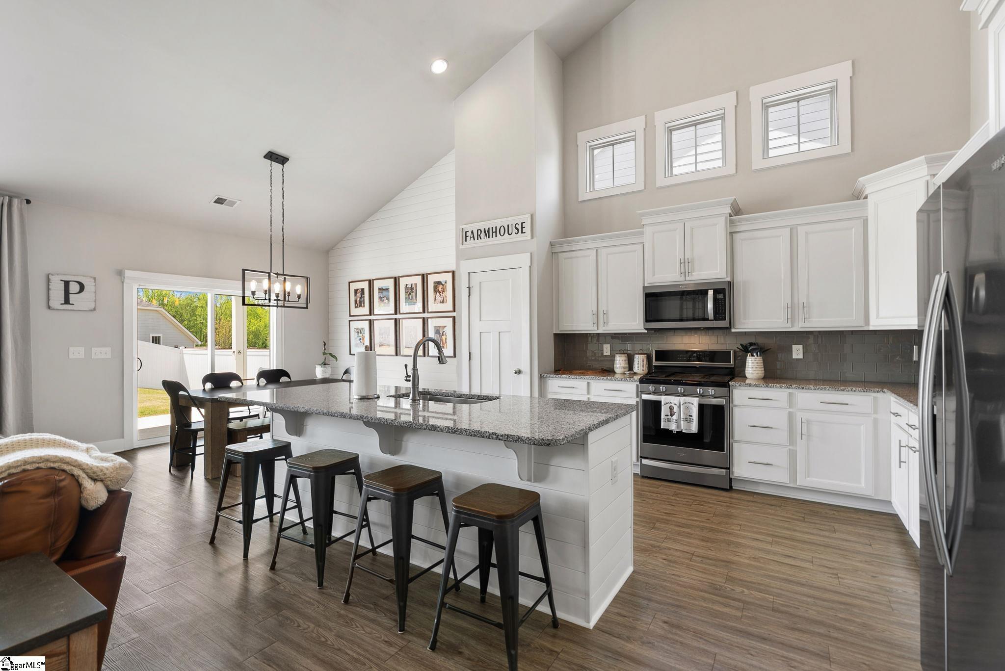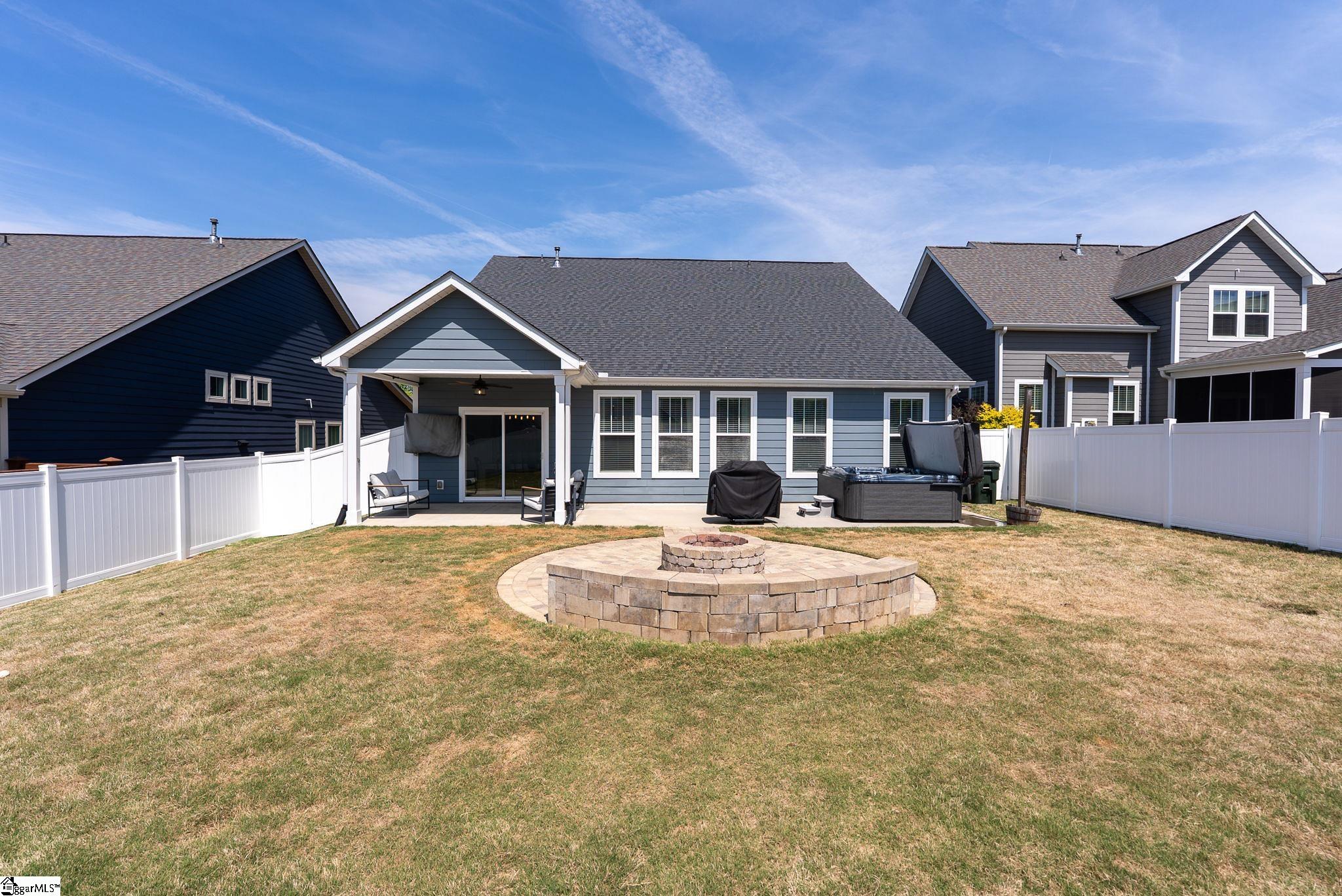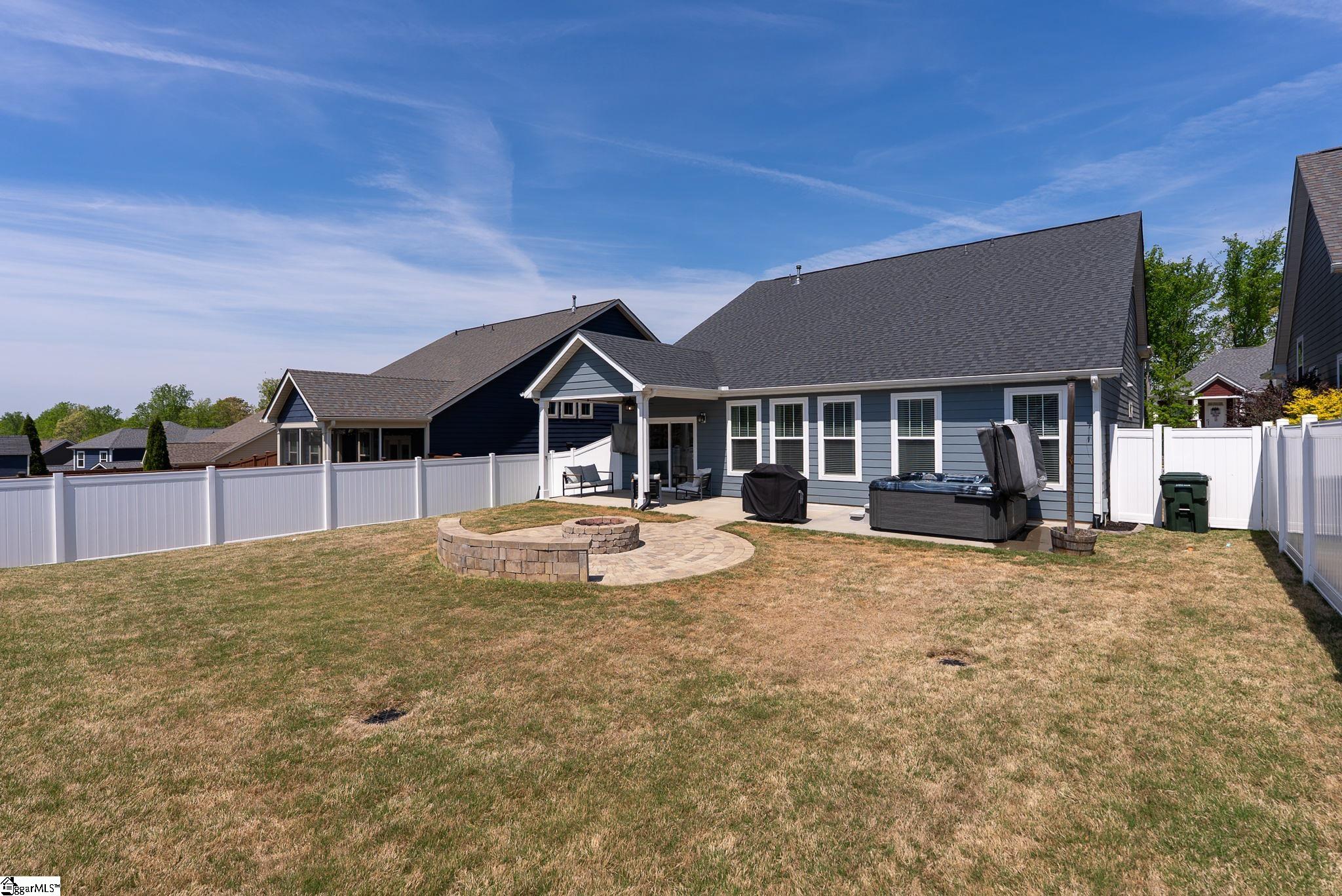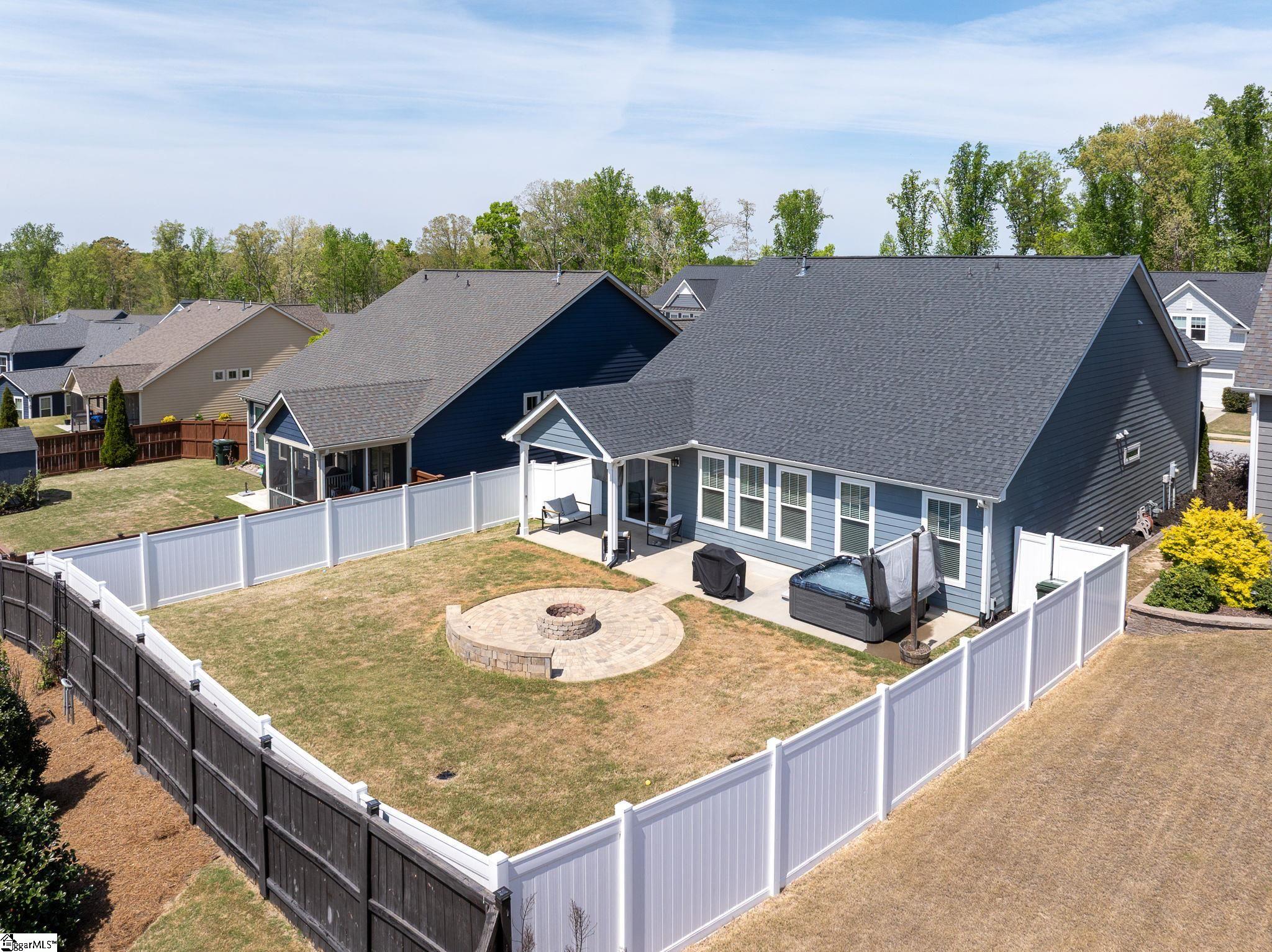 Welcome to 809 Lockhurst Dr., a stunning residence nestled in the desirable Coventry subdivision of Simpsonville. This beautiful four-bedroom, two-bathroom home perfectly blends modern elegance with everyday functionality. Inside, the open floor plan is defined by high vaulted ceilings and abundant natural light, creating an airy, spacious atmosphere. The heart of the home is the gourmet kitchen, which boasts a large central island, granite countertops, sleek stainless steel appliances, and plentiful cabinetry for all your storage needs. The thoughtful layout places the primary suite on the main floor alongside two additional bedrooms, ensuring ease of access and privacy. The primary suite offers a convenient main-level retreat, highlighted by an ensuite bathroom that features a double vanity, a large-format tile shower, and a generous walk-in closet. For added convenience, a dedicated walk-in laundry room and a two-car garage—perfect for extra storage—are also located on the main level. Upstairs, a versatile loft serves as a flexible space that can easily function as a fourth bedroom or a dynamic bonus room. Outdoor living is truly elevated here; a glass slider off the kitchen leads to a private oasis featuring a large fenced backyard, a covered patio, and an outdoor firepit. As a special bonus, the hot tub conveys with the home, offering the ultimate spot for relaxation. Residents also enjoy access to the community pool and a location that puts you moments away from the vibrant energy of Main Street Simpsonville, where local favorites like Sidewall Pizza, Houni’s Italian Ice, and boutique shops await.