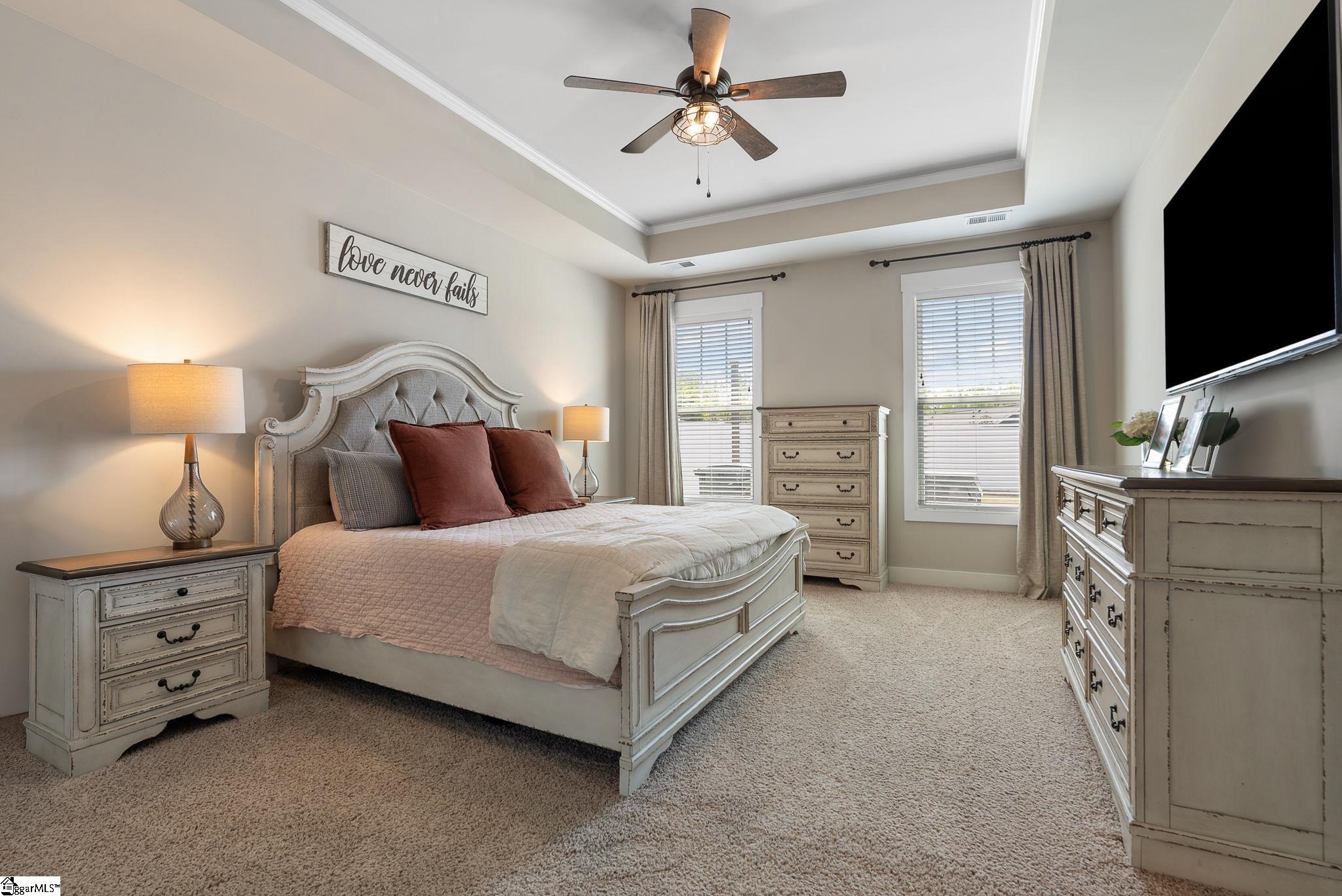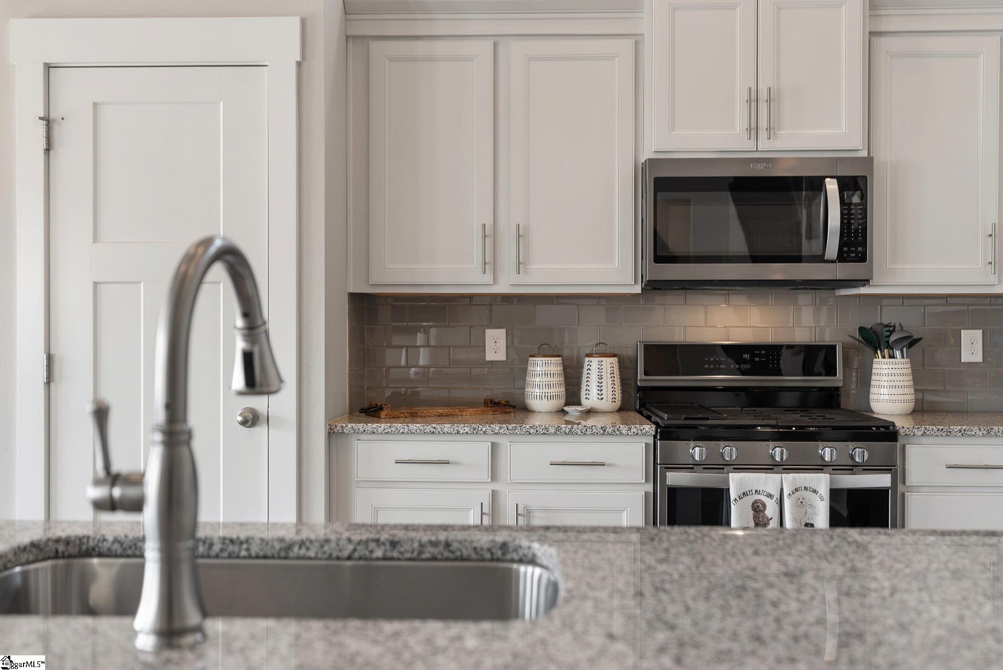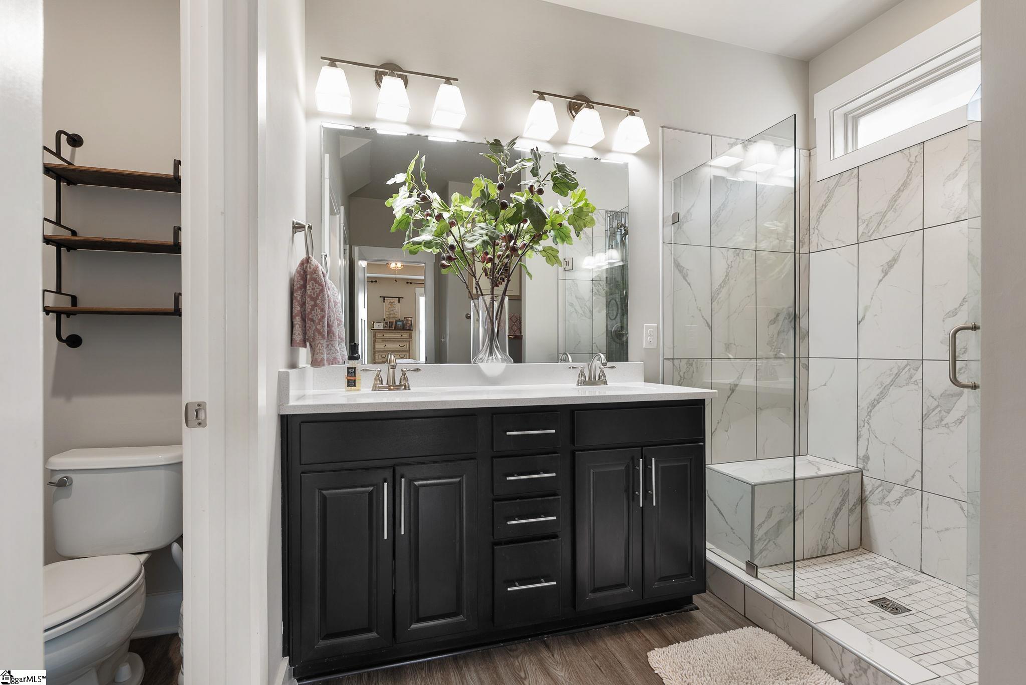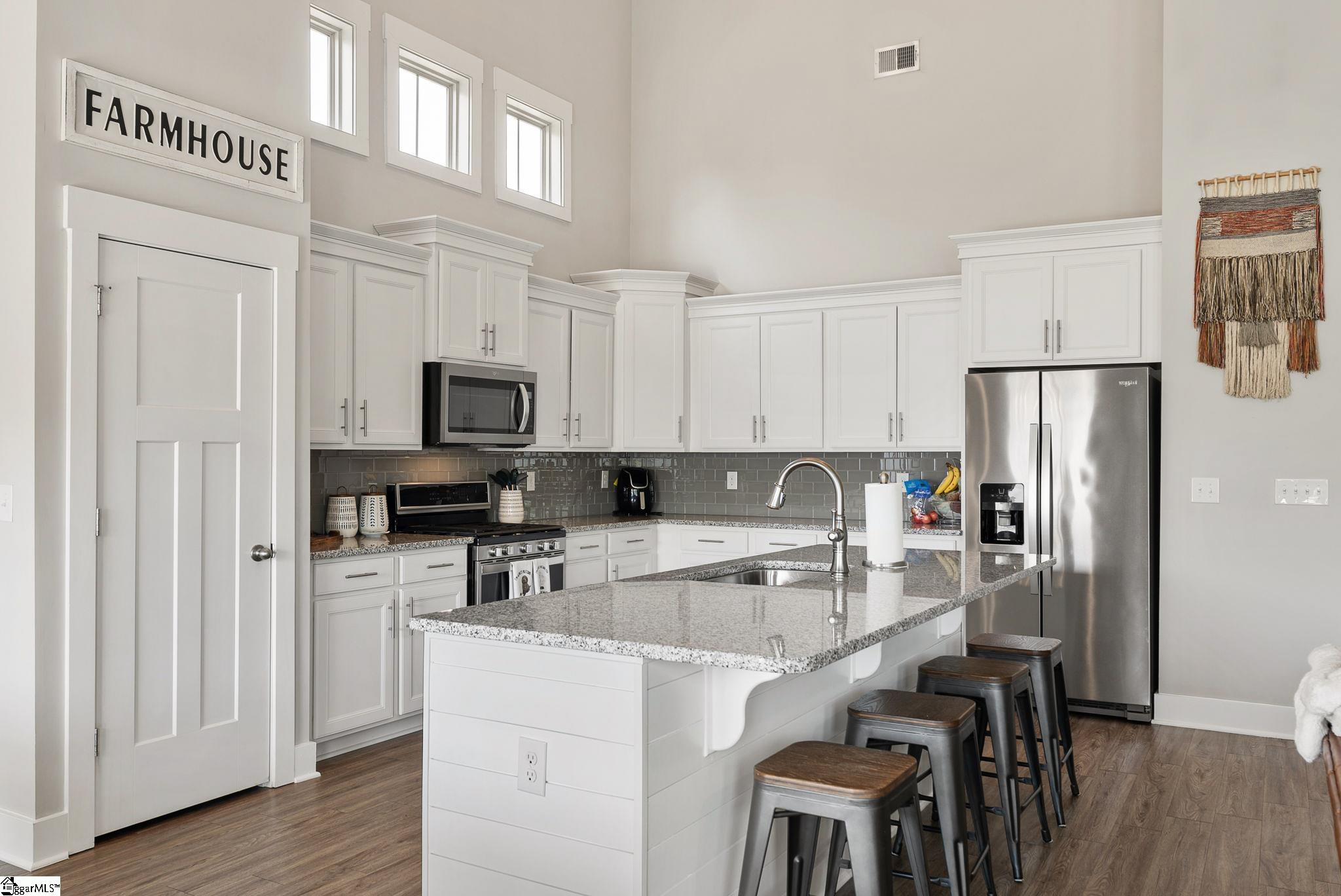 Welcome to 809 Lockhurst Dr., a stunning residence nestled in the desirable Coventry subdivision of Simpsonville. This beautiful four-bedroom, two-bathroom home perfectly blends modern elegance with everyday functionality. Inside, the open floor plan is defined by high vaulted ceilings and abundant natural light, creating an airy, spacious atmosphere. The heart of the home is the gourmet kitchen, which boasts a large central island, granite countertops, sleek stainless steel appliances, and plentiful cabinetry for all your storage needs. The thoughtful layout places the primary suite on the main floor alongside two additional bedrooms, ensuring ease of access and privacy. The primary suite offers a convenient main-level retreat, highlighted by an ensuite bathroom that features a double vanity, a large-format tile shower, and a generous walk-in closet. For added convenience, a dedicated walk-in laundry room and a two-car garage—perfect for extra storage—are also located on the main level. Upstairs, a versatile loft serves as a flexible space that can easily function as a fourth bedroom or a dynamic bonus room. Outdoor living is truly elevated here; a glass slider off the kitchen leads to a private oasis featuring a large fenced backyard, a covered patio, and an outdoor firepit. As a special bonus, the hot tub conveys with the home, offering the ultimate spot for relaxation. Residents also enjoy access to the community pool and a location that puts you moments away from the vibrant energy of Main Street Simpsonville, where local favorites like Sidewall Pizza, Houni’s Italian Ice, and boutique shops await.