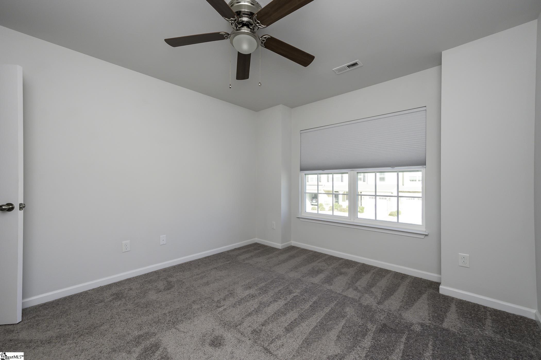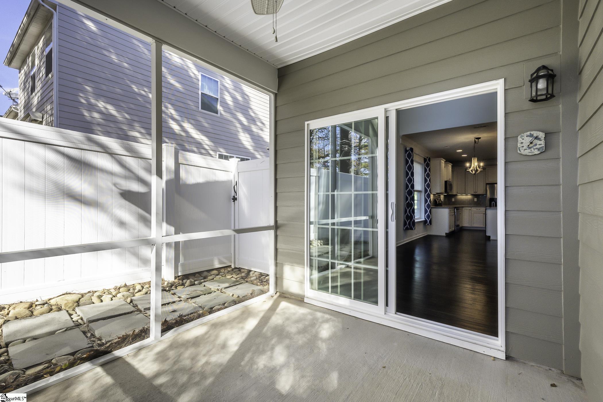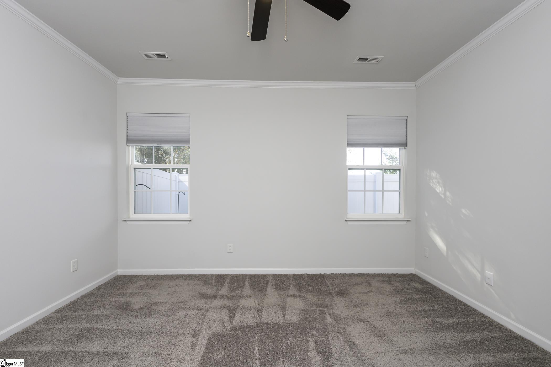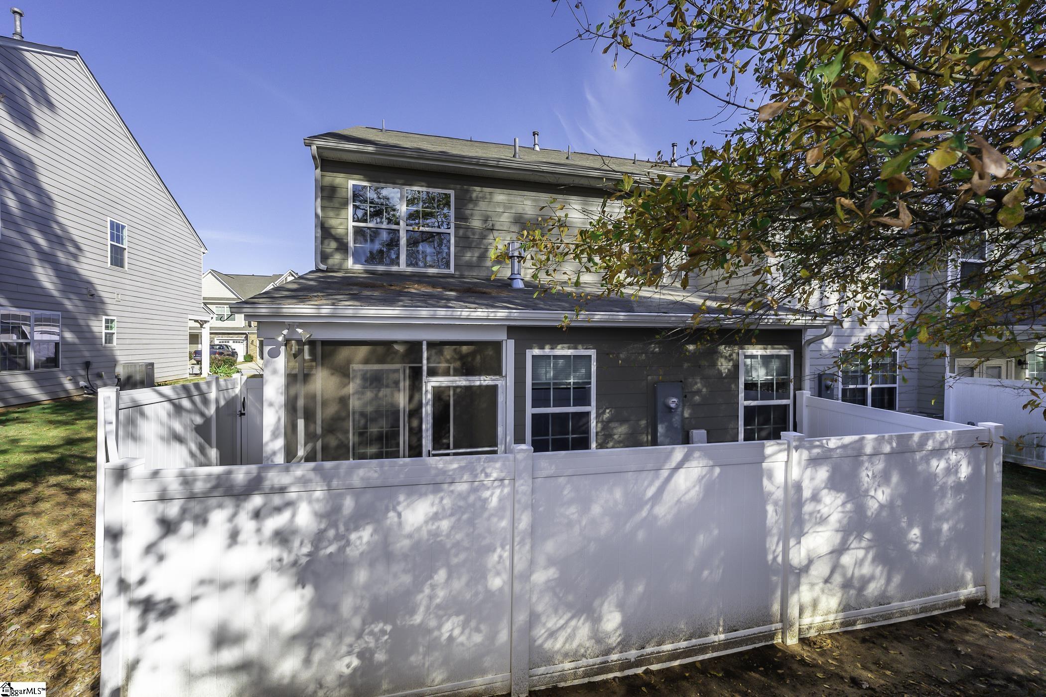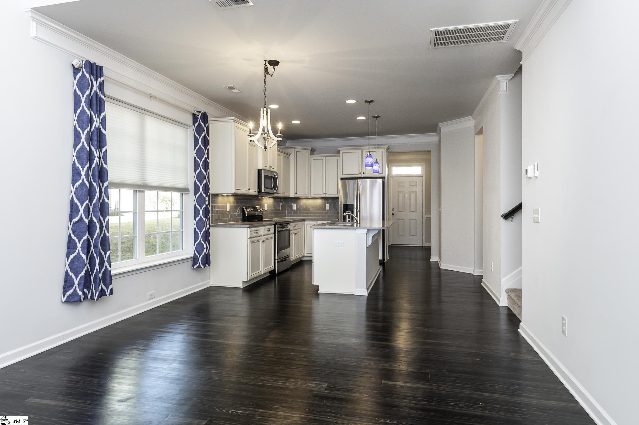 Welcome to The Village at Adams Mill, a quiet, walkable neighborhood with no through traffic, conveniently located off SC-14 between Woodruff Rd and Main Street Simpsonville. Enjoy easy access to groceries, gas, shopping, I-385, and downtown Simpsonville, along with large athletic fields adjacent to the subdivision that extend your outdoor space for walking and recreation. This beautifully maintained 2-story end-unit townhome offers 4 bedrooms, 2.5 baths, and a spacious loft. Large windows on three sides provide abundant natural light throughout the day, while the open floor plan features a dramatic 15-foot ceiling in the living room, creating a bright and inviting atmosphere. The living area flows seamlessly into the kitchen and dining space, making everyday living and entertaining easy and comfortable. The main-level primary suite offers convenience and privacy, complete with a roomy walk-in shower, spacious bathroom, and walk-in closet. The laundry is also located on the main level for added ease. Upstairs, you’ll find three additional bedrooms and a versatile loft overlooking the living room, ideal for a home office, media room, or flex space. Ceiling fans are installed throughout the home, including the screened-in back porch, where you can relax and enjoy the peaceful, private setting. The end-unit location provides additional privacy, and a second concrete parking pad may be added for an additional vehicle at the new owner’s expense. Residents enjoy a welcoming community atmosphere with friendly neighbors and a well-maintained environment. Homes like this don’t come along often. Schedule your showing today.
