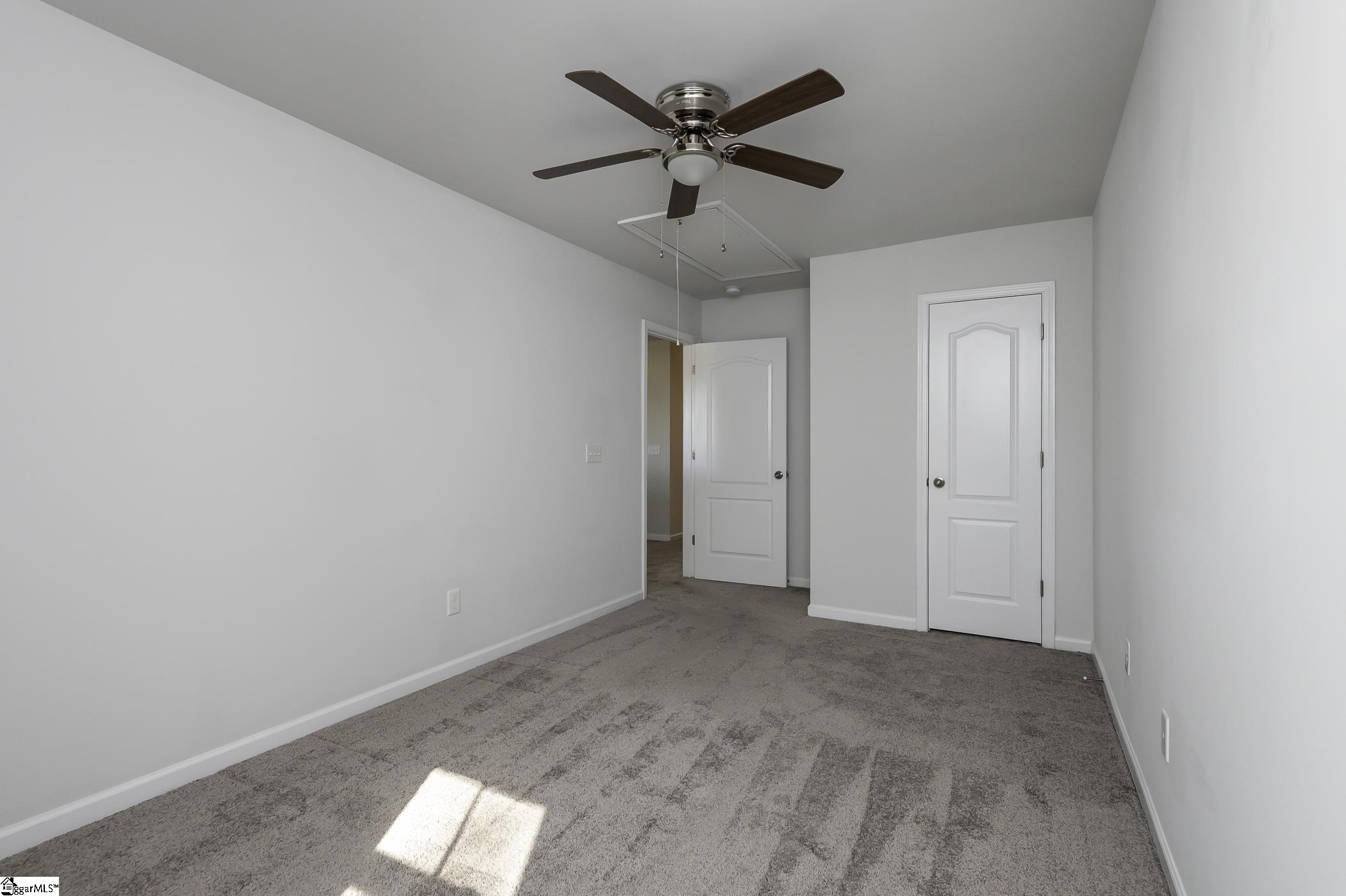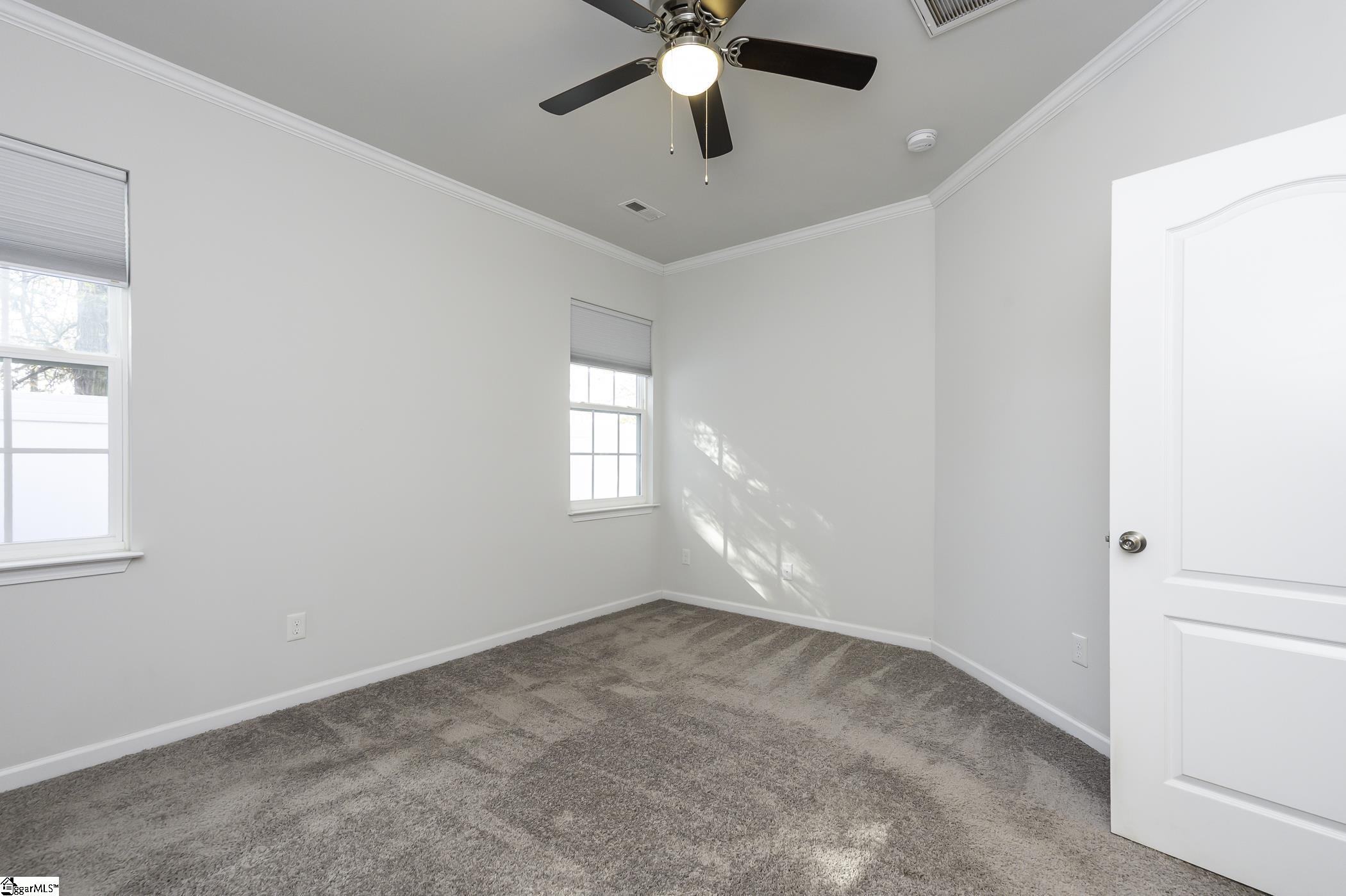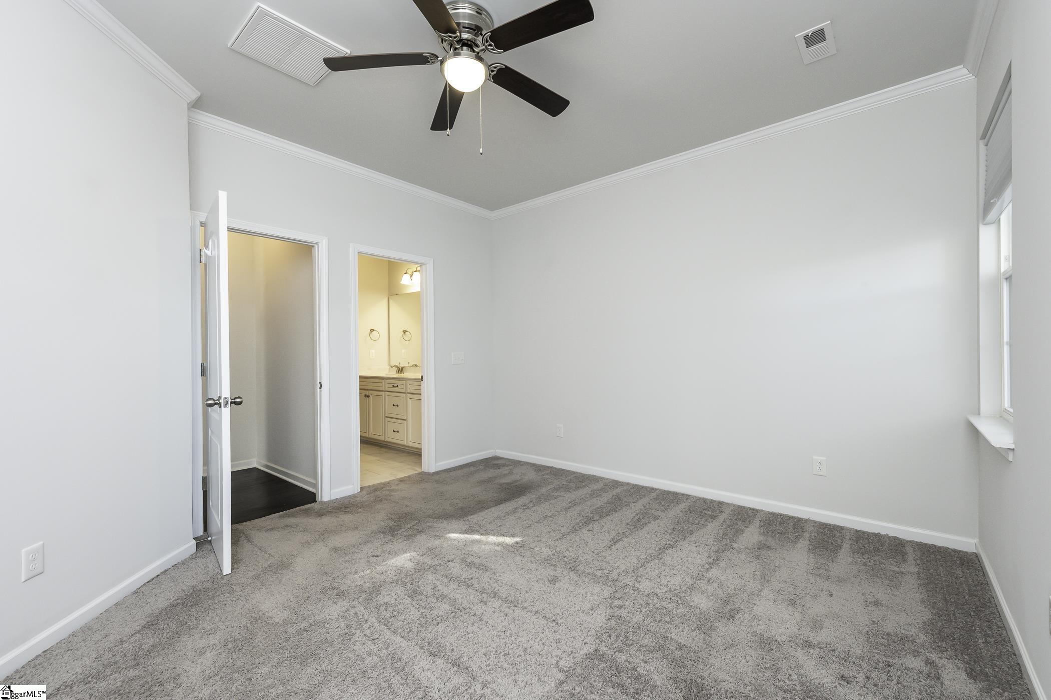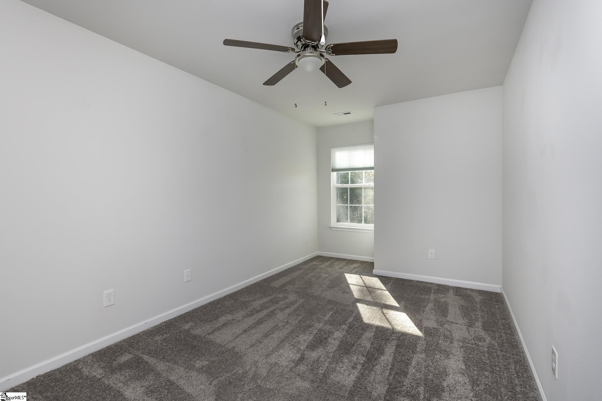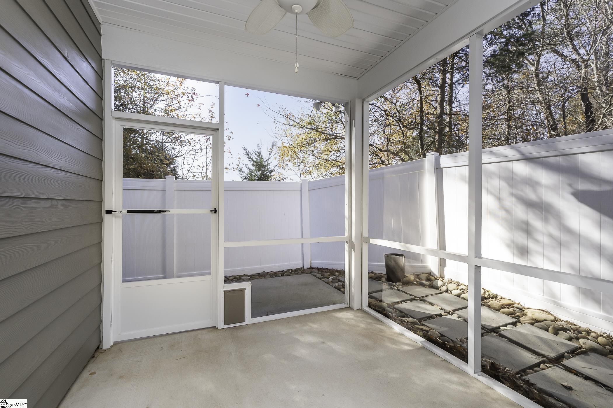 Welcome to The Village at Adams Mill, a quiet, walkable neighborhood with no through traffic, conveniently located off SC-14 between Woodruff Rd and Main Street Simpsonville. Enjoy easy access to groceries, gas, shopping, I-385, and downtown Simpsonville, along with large athletic fields adjacent to the subdivision that extend your outdoor space for walking and recreation. This beautifully maintained 2-story end-unit townhome offers 4 bedrooms, 2.5 baths, and a spacious loft. Large windows on three sides provide abundant natural light throughout the day, while the open floor plan features a dramatic 15-foot ceiling in the living room, creating a bright and inviting atmosphere. The living area flows seamlessly into the kitchen and dining space, making everyday living and entertaining easy and comfortable. The main-level primary suite offers convenience and privacy, complete with a roomy walk-in shower, spacious bathroom, and walk-in closet. The laundry is also located on the main level for added ease. Upstairs, you’ll find three additional bedrooms and a versatile loft overlooking the living room, ideal for a home office, media room, or flex space. Ceiling fans are installed throughout the home, including the screened-in back porch, where you can relax and enjoy the peaceful, private setting. The end-unit location provides additional privacy, and a second concrete parking pad may be added for an additional vehicle at the new owner’s expense. Residents enjoy a welcoming community atmosphere with friendly neighbors and a well-maintained environment. Homes like this don’t come along often. Schedule your showing today.