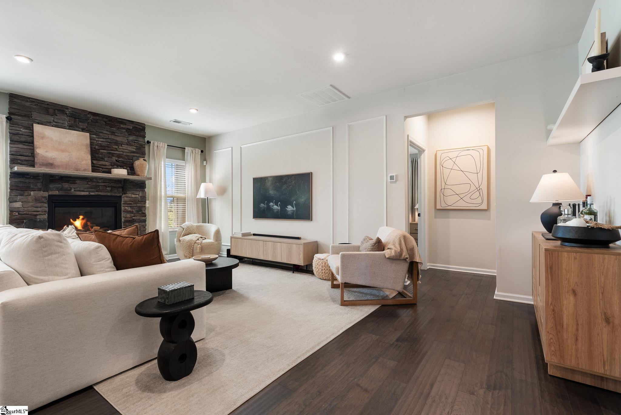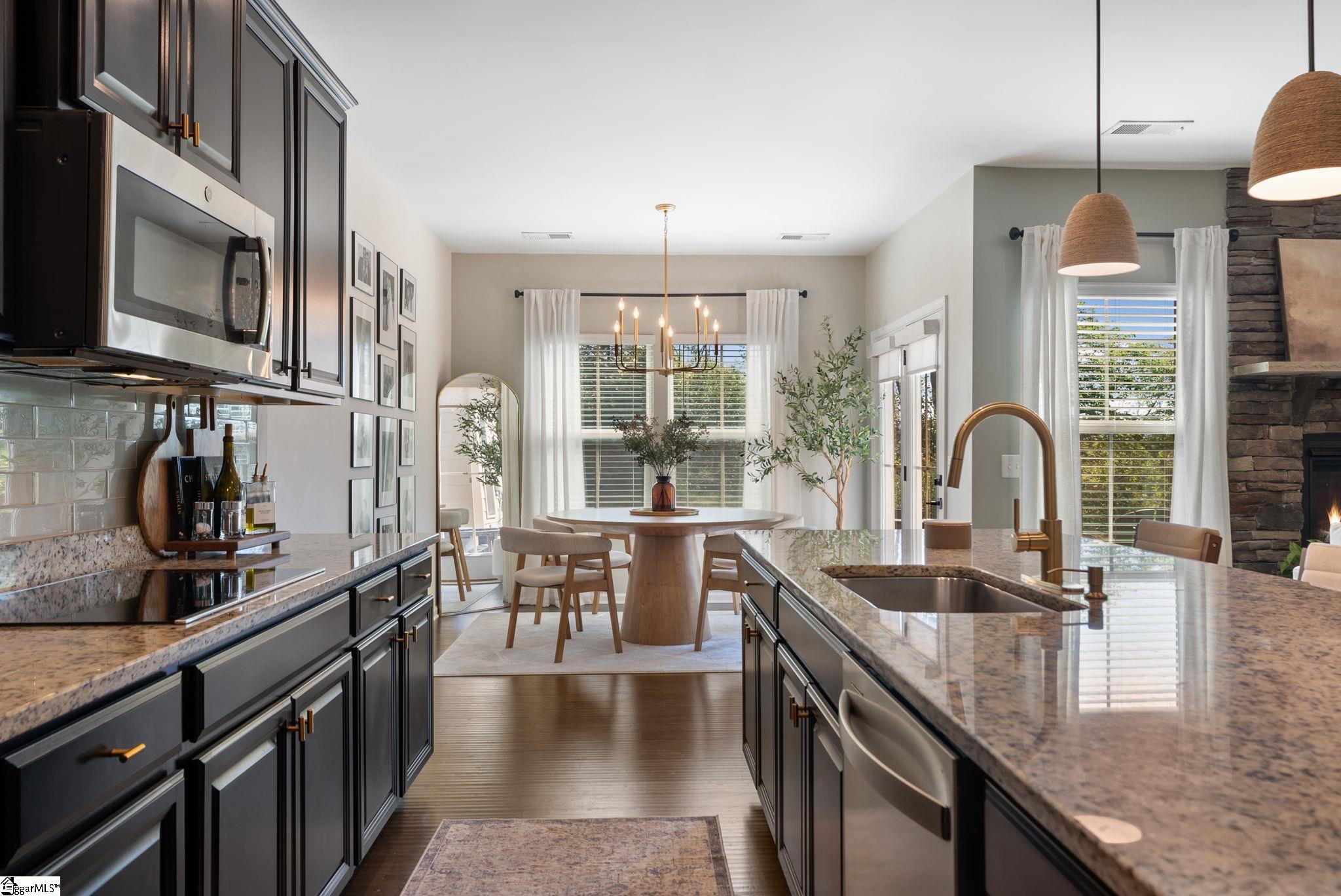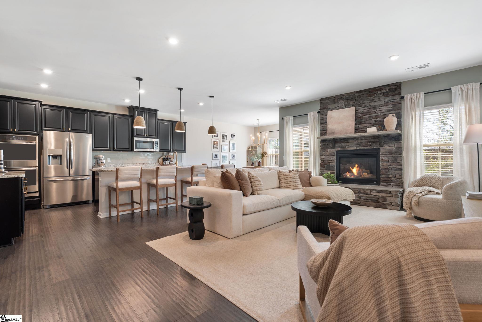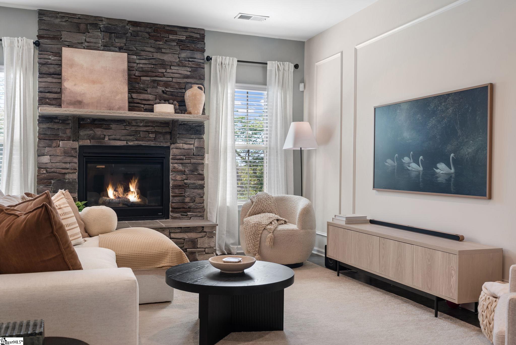 Nestled in the prestigious Five Forks enclave, 82 Hemingway Lane is a masterpiece of craftsman sophistication that seamlessly harmonizes architectural elegance with a low-maintenance lifestyle. The interior is defined by a sense of volume and light, characterized by expansive nine-foot ceilings and rich hardwood floors that guide you through an intuitive open-concept layout. At the heart of the home, a stately living room anchored by a classic gas fireplace flows effortlessly into a gourmet culinary suite, where premium granite countertops, a substantial social island, and professional-grade double wall ovens cater to the modern epicurean. This thoughtful design extends to a dedicated wine cellar closet and a sun-drenched breakfast nook, ideal for both grand entertaining and quiet mornings. The main-level primary retreat serves as a private sanctuary, featuring a spa-inspired en-suite with a deep garden soaking tub and a voluminous walk-in closet. Upstairs, the home offers immense versatility with three generous bedrooms and a sprawling den, complemented by an unfinished attic that provides discreet, ample storage. The exterior artistry is equally refined, featuring a private patio and a professionally landscaped lot maintained by a full-yard irrigation system. With an HOA that oversees all lawn care, this residence offers a turnkey lifestyle of “luxury without the labor,” all while being situated moments from the premier dining of Five Forks and the vibrant energy of Simpsonville’s historic Main Street.