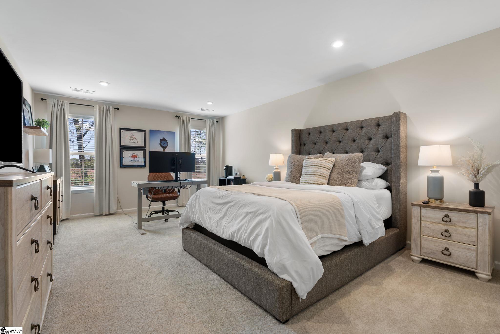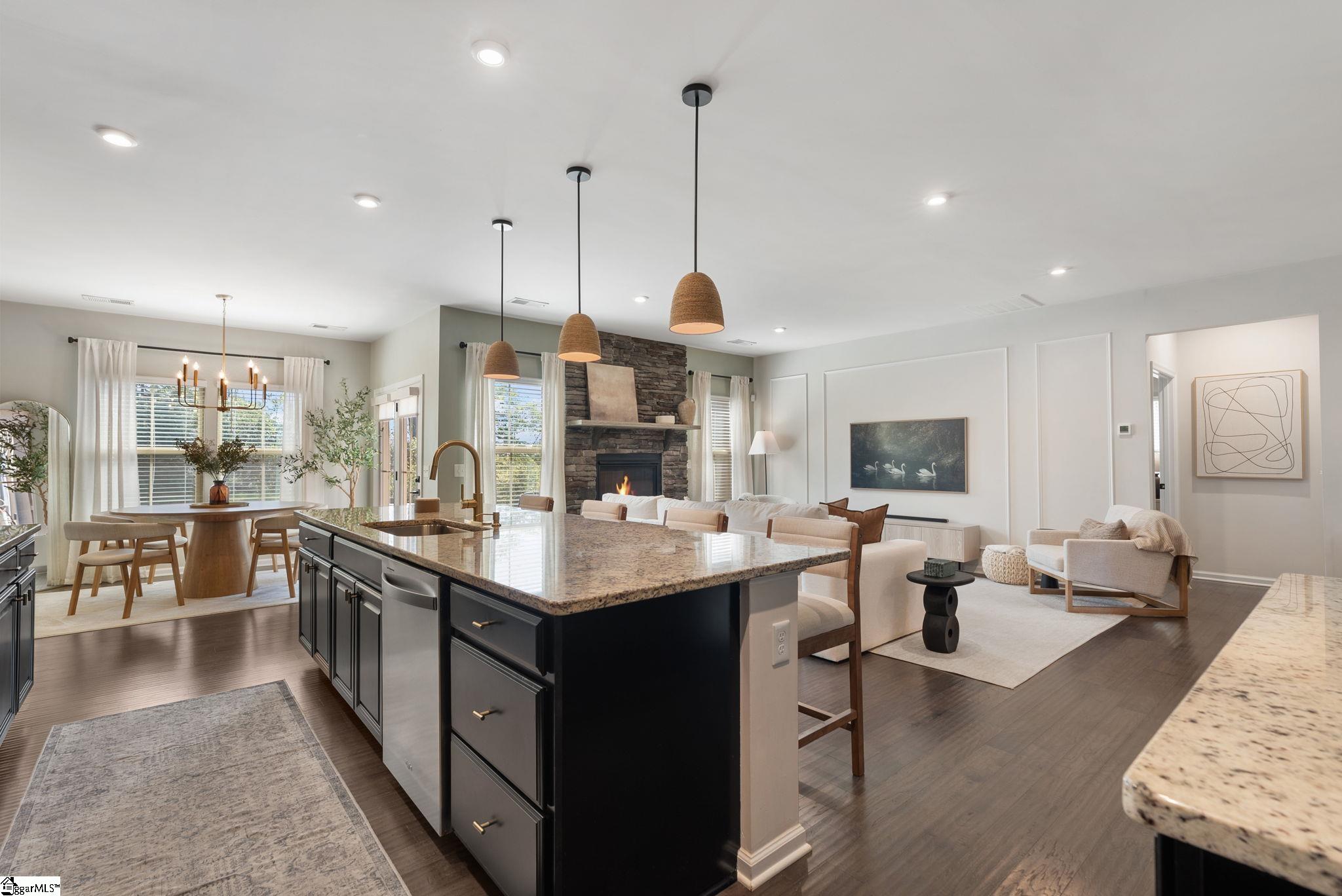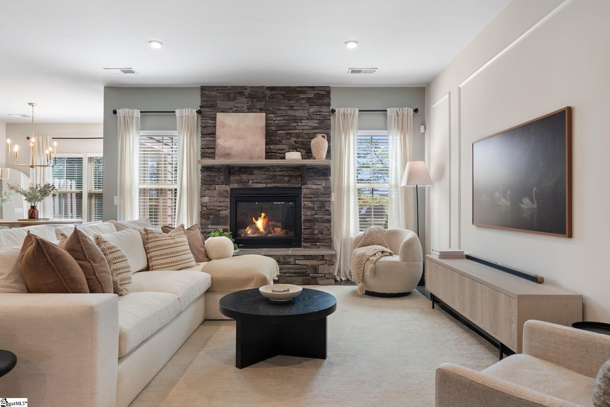 Nestled in the prestigious Five Forks enclave, 82 Hemingway Lane is a masterpiece of craftsman sophistication that seamlessly harmonizes architectural elegance with a low-maintenance lifestyle. The interior is defined by a sense of volume and light, characterized by expansive nine-foot ceilings and rich hardwood floors that guide you through an intuitive open-concept layout. At the heart of the home, a stately living room anchored by a classic gas fireplace flows effortlessly into a gourmet culinary suite, where premium granite countertops, a substantial social island, and professional-grade double wall ovens cater to the modern epicurean. This thoughtful design extends to a dedicated wine cellar closet and a sun-drenched breakfast nook, ideal for both grand entertaining and quiet mornings. The main-level primary retreat serves as a private sanctuary, featuring a spa-inspired en-suite with a deep garden soaking tub and a voluminous walk-in closet. Upstairs, the home offers immense versatility with three generous bedrooms and a sprawling den, complemented by an unfinished attic that provides discreet, ample storage. The exterior artistry is equally refined, featuring a private patio and a professionally landscaped lot maintained by a full-yard irrigation system. With an HOA that oversees all lawn care, this residence offers a turnkey lifestyle of “luxury without the labor,” all while being situated moments from the premier dining of Five Forks and the vibrant energy of Simpsonville’s historic Main Street.