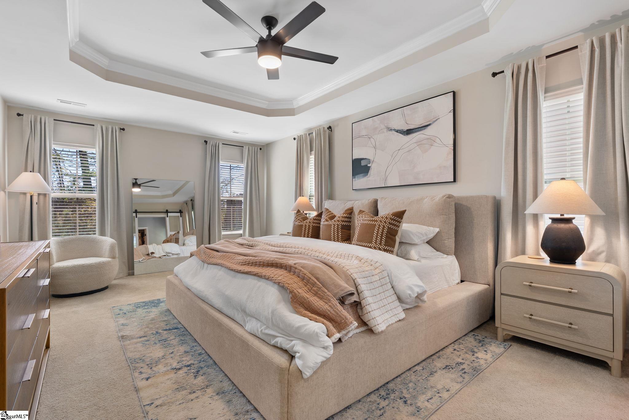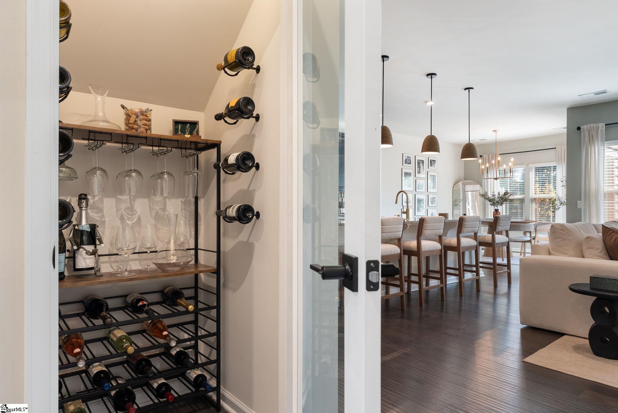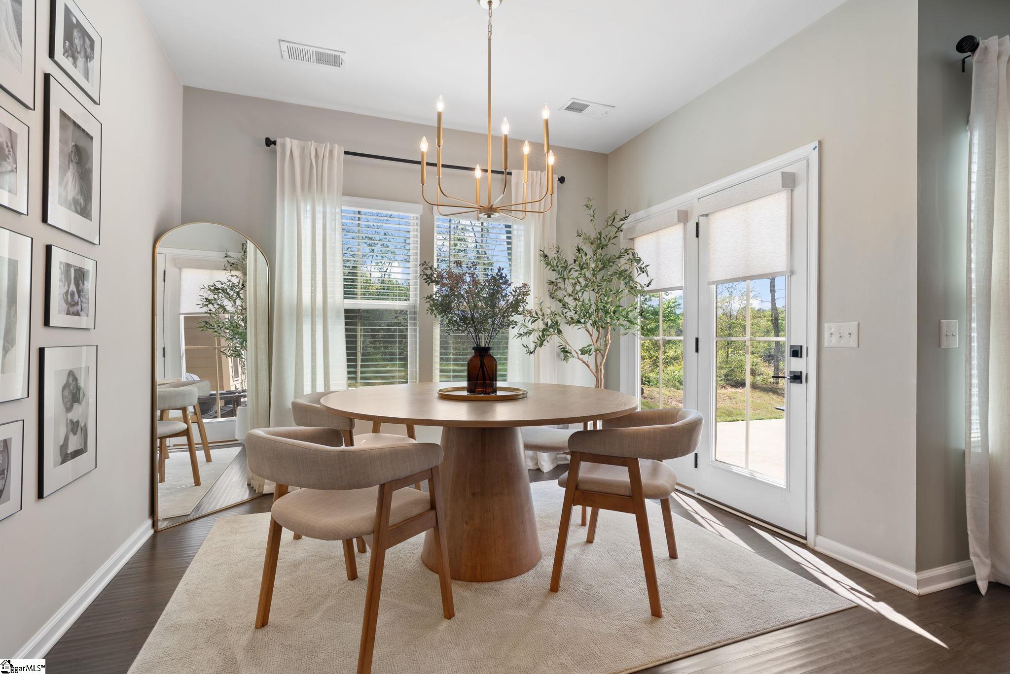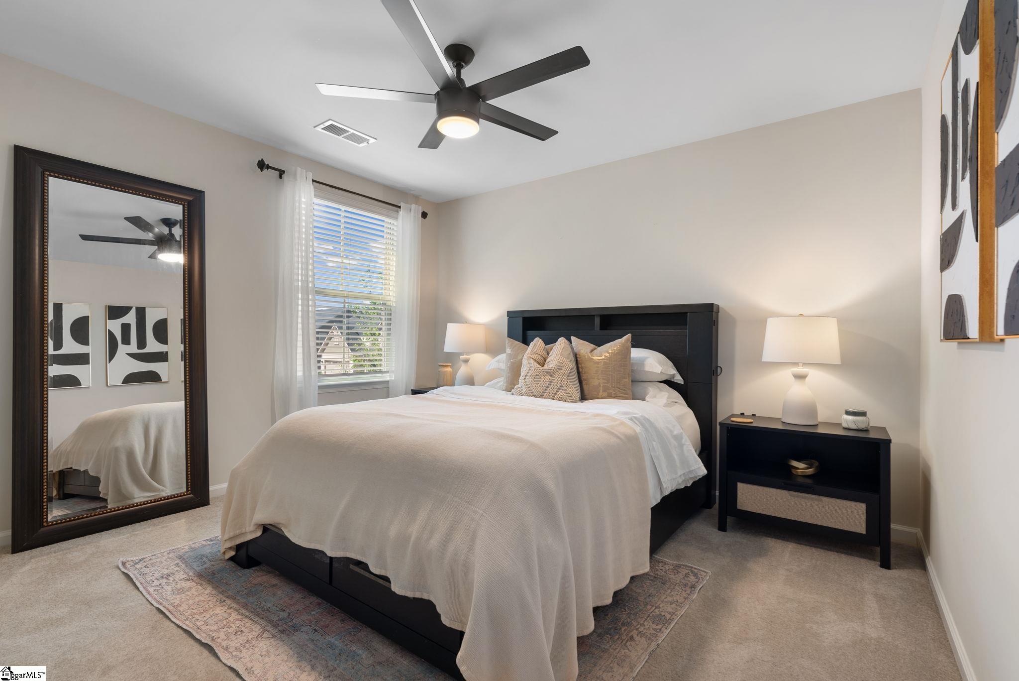 Nestled in the prestigious Five Forks enclave, 82 Hemingway Lane is a masterpiece of craftsman sophistication that seamlessly harmonizes architectural elegance with a low-maintenance lifestyle. The interior is defined by a sense of volume and light, characterized by expansive nine-foot ceilings and rich hardwood floors that guide you through an intuitive open-concept layout. At the heart of the home, a stately living room anchored by a classic gas fireplace flows effortlessly into a gourmet culinary suite, where premium granite countertops, a substantial social island, and professional-grade double wall ovens cater to the modern epicurean. This thoughtful design extends to a dedicated wine cellar closet and a sun-drenched breakfast nook, ideal for both grand entertaining and quiet mornings. The main-level primary retreat serves as a private sanctuary, featuring a spa-inspired en-suite with a deep garden soaking tub and a voluminous walk-in closet. Upstairs, the home offers immense versatility with three generous bedrooms and a sprawling den, complemented by an unfinished attic that provides discreet, ample storage. The exterior artistry is equally refined, featuring a private patio and a professionally landscaped lot maintained by a full-yard irrigation system. With an HOA that oversees all lawn care, this residence offers a turnkey lifestyle of “luxury without the labor,” all while being situated moments from the premier dining of Five Forks and the vibrant energy of Simpsonville’s historic Main Street.