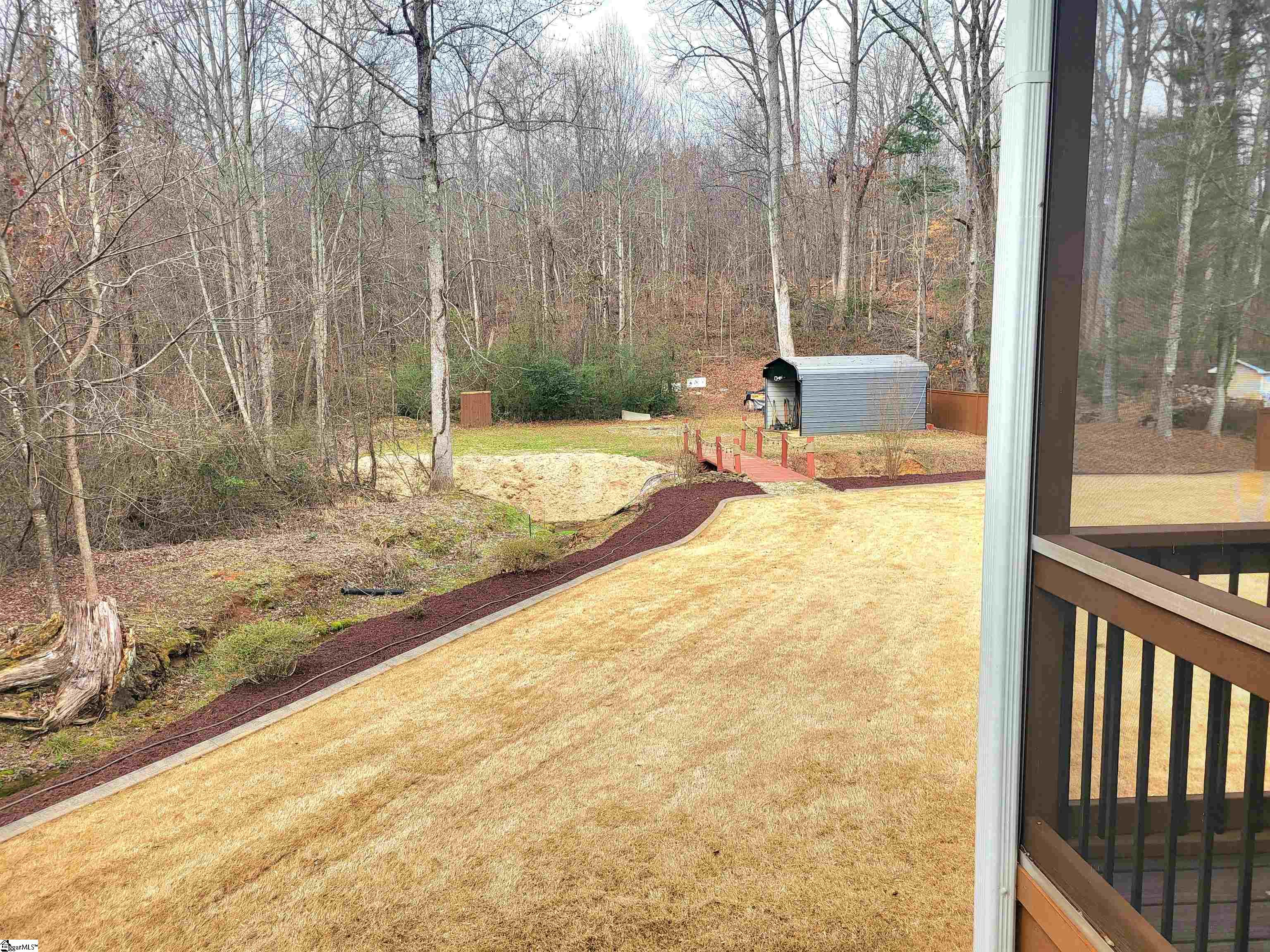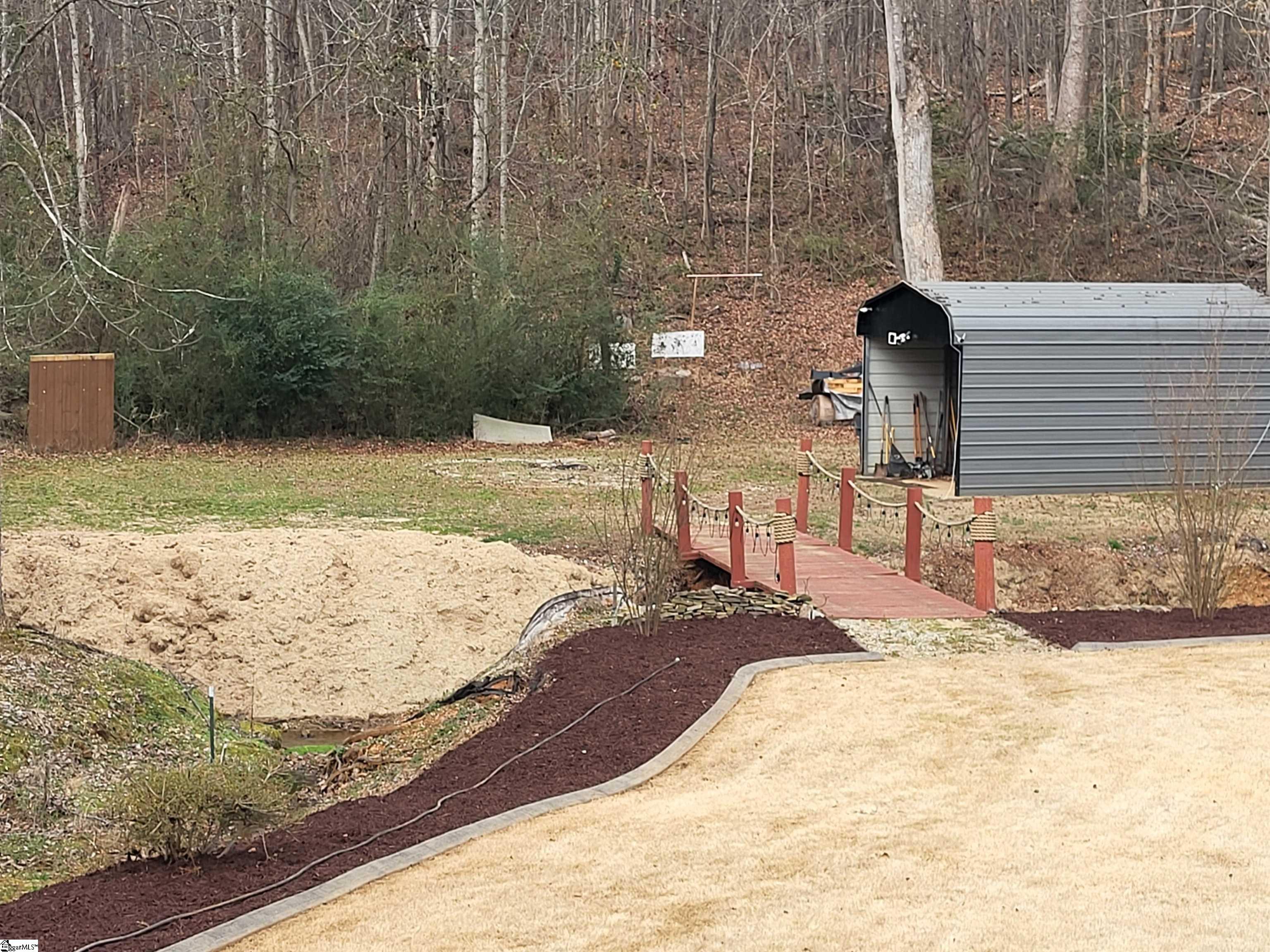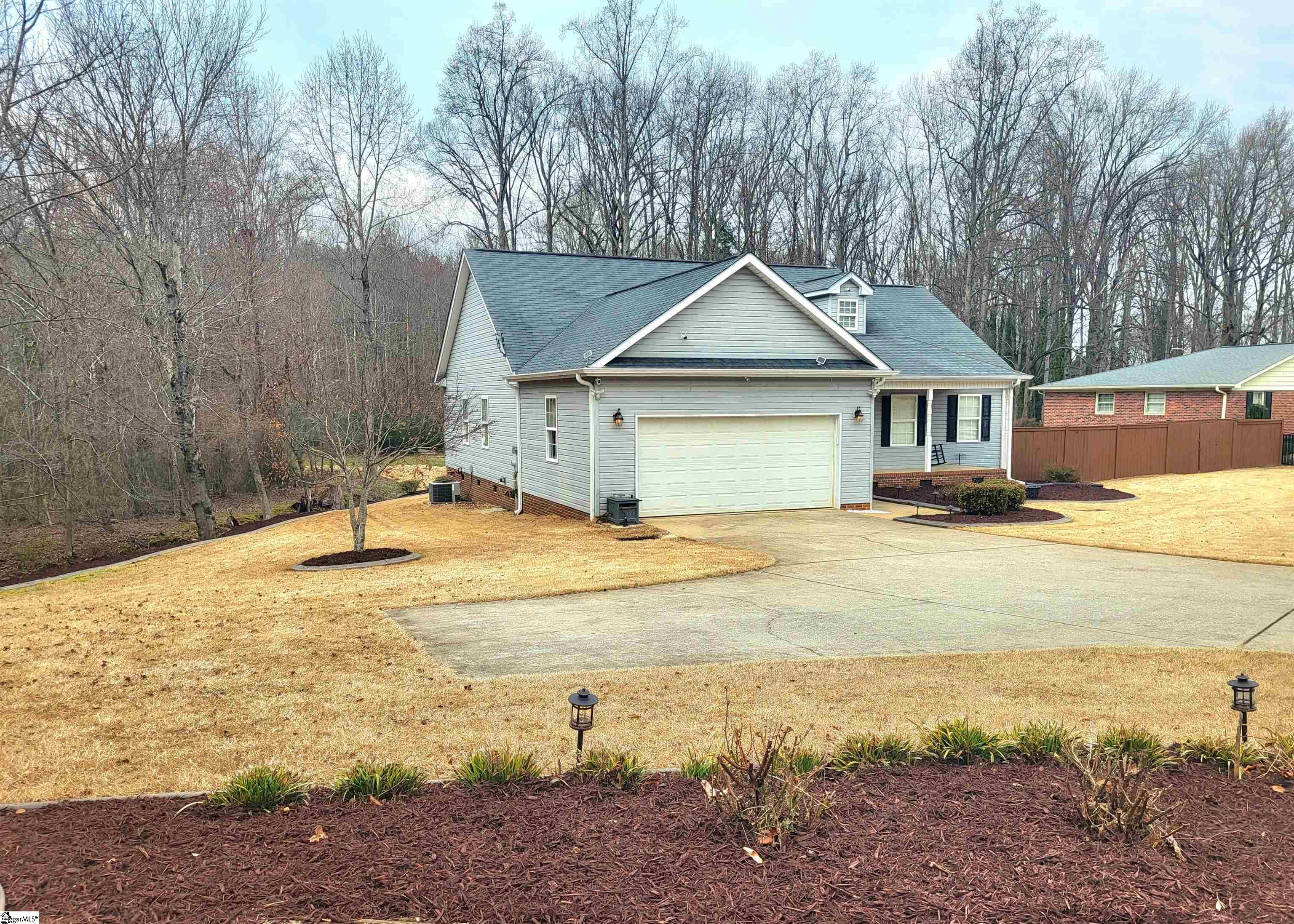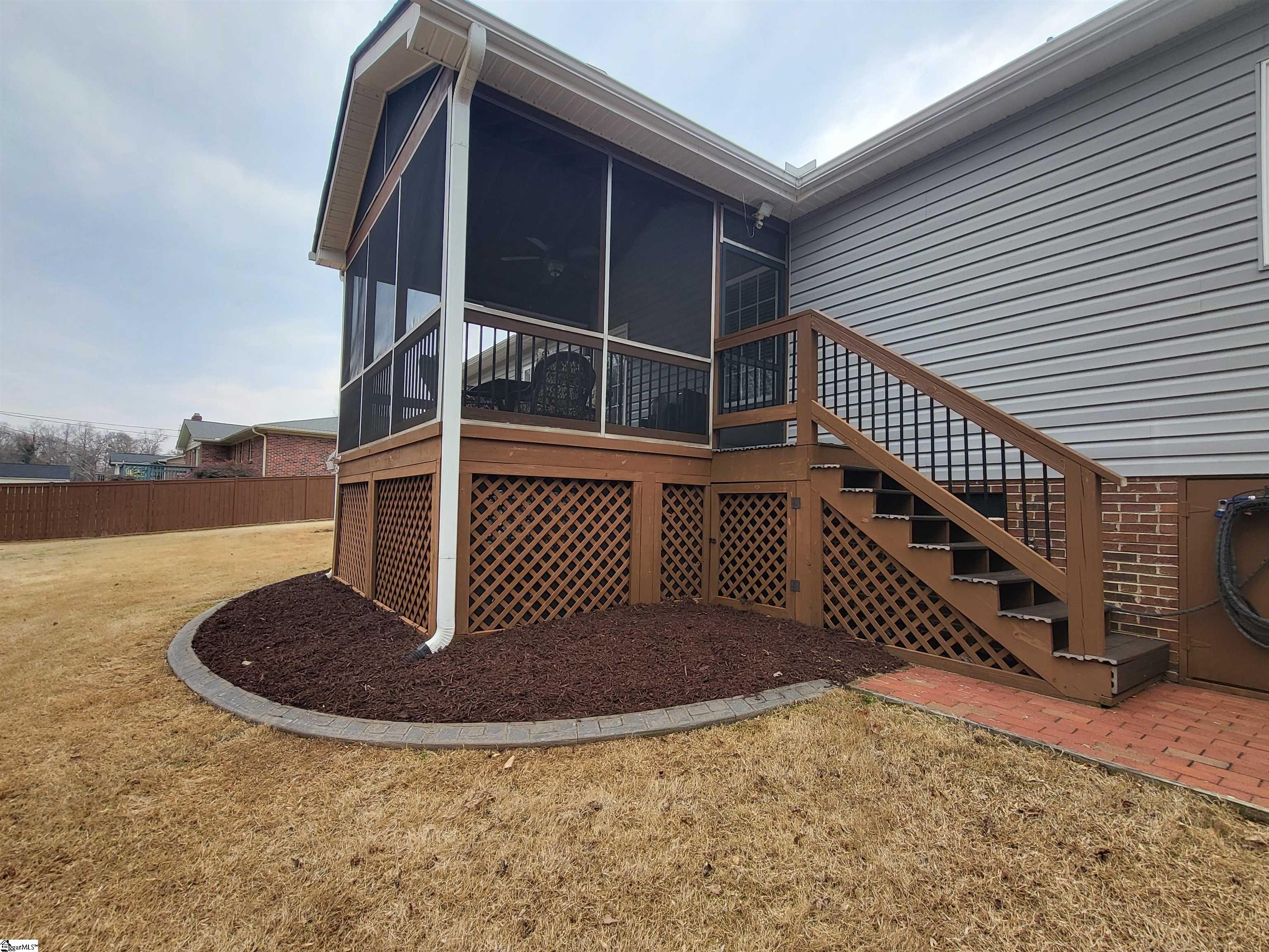 This is a fantastic home with so much to offer! Situated on .67 acre with a lovely, flowing creek and bridge to the rear of the property and has a shed for extra storage. The bridge can support mowers, golf carts and ATVs. The lawn has a full sprinkler system in the front and back! You’ll love the natural surroundings and woods bordering the home. The interior offers beautiful floors throughout, a split and open floor plan, solid countertops, stainless appliances, vaulted and trey ceilings, a gas fireplace, an awesome screened porch overlooking the backyard, a great primary suite with a super huge walk-in closet, a walk-in tiled shower and a pretty claw-foot tub. Well-maintained and one sweet home! Just outside the city of Greer and conveniently located! This home will not last on the open market so act fast!