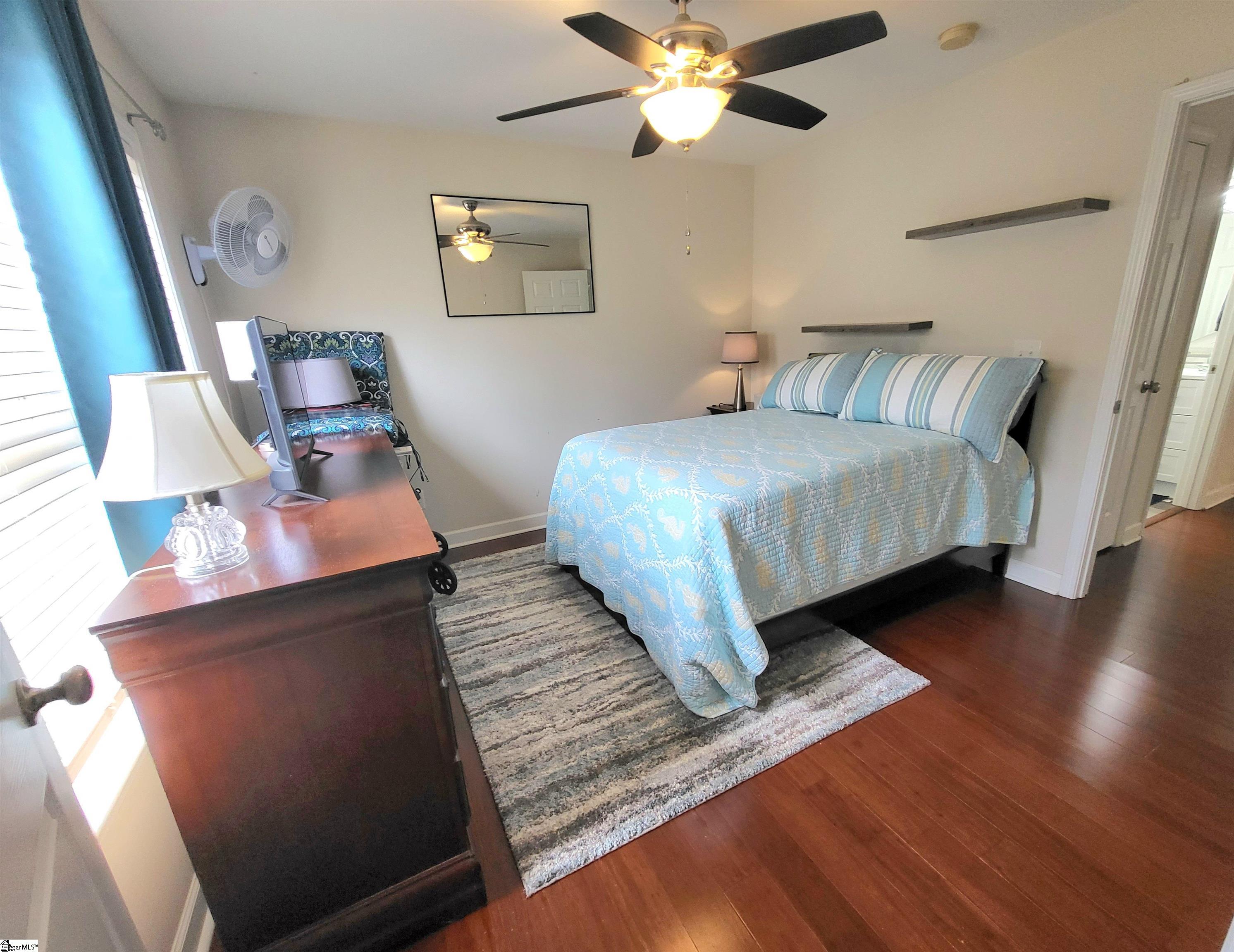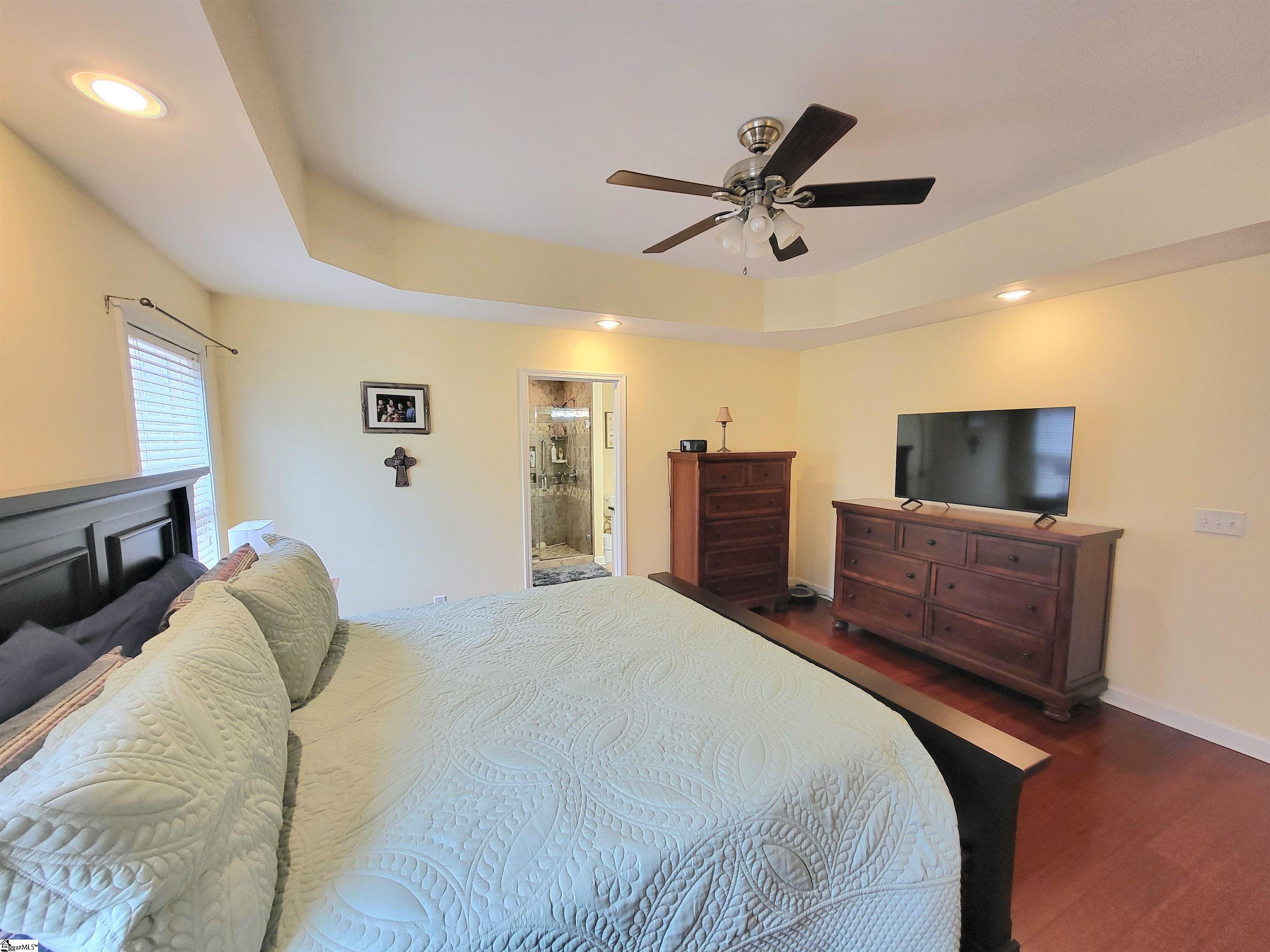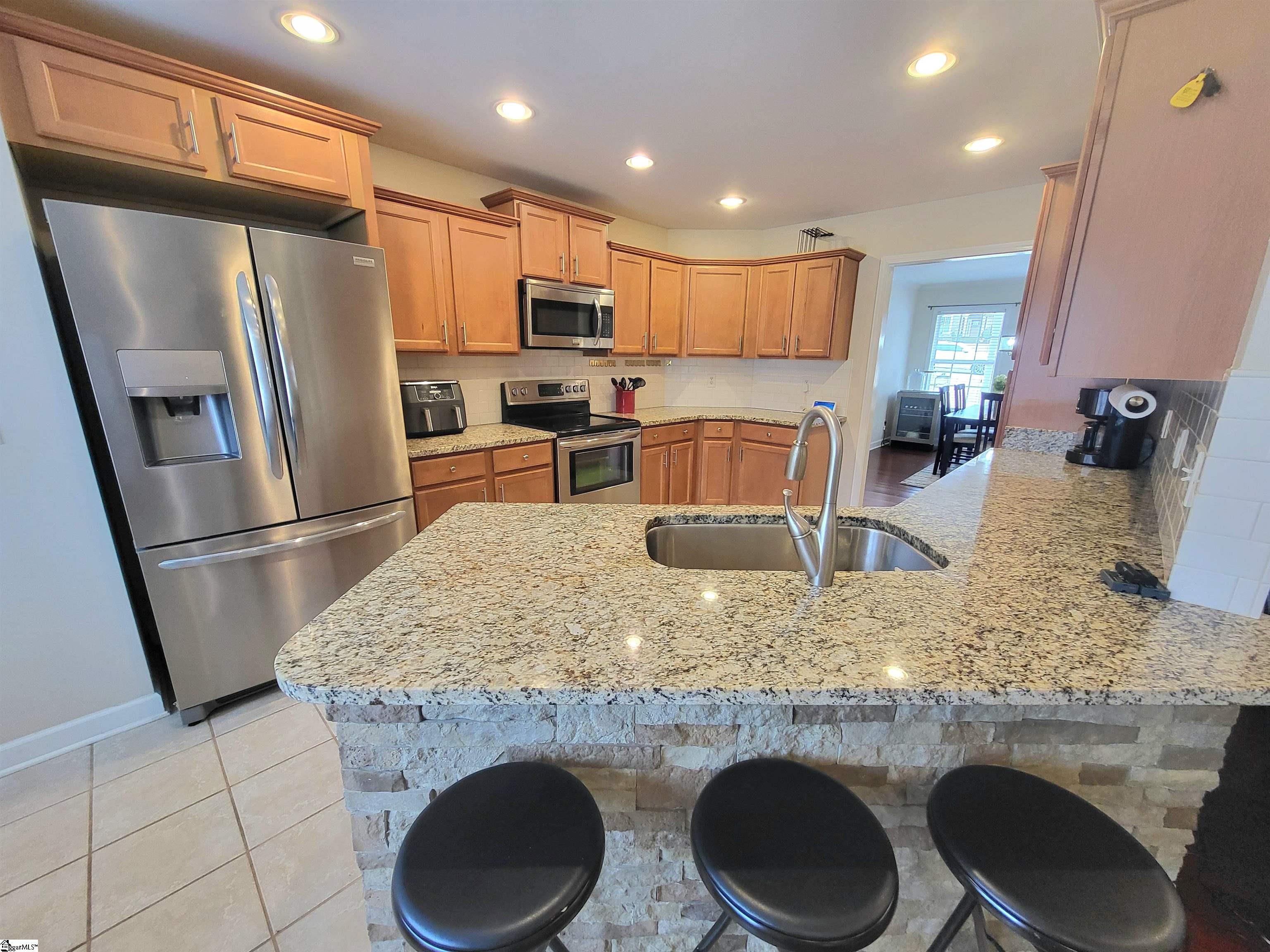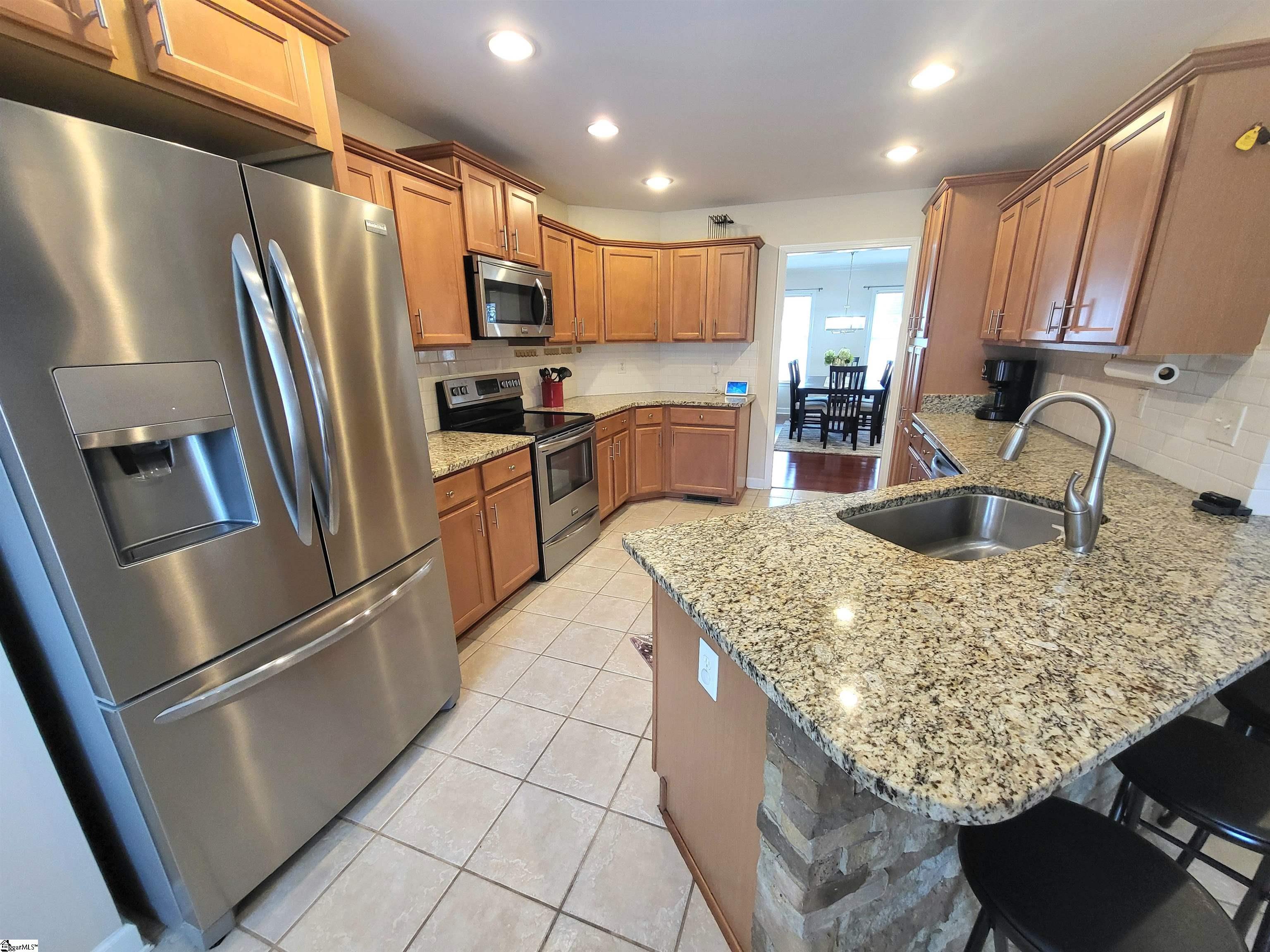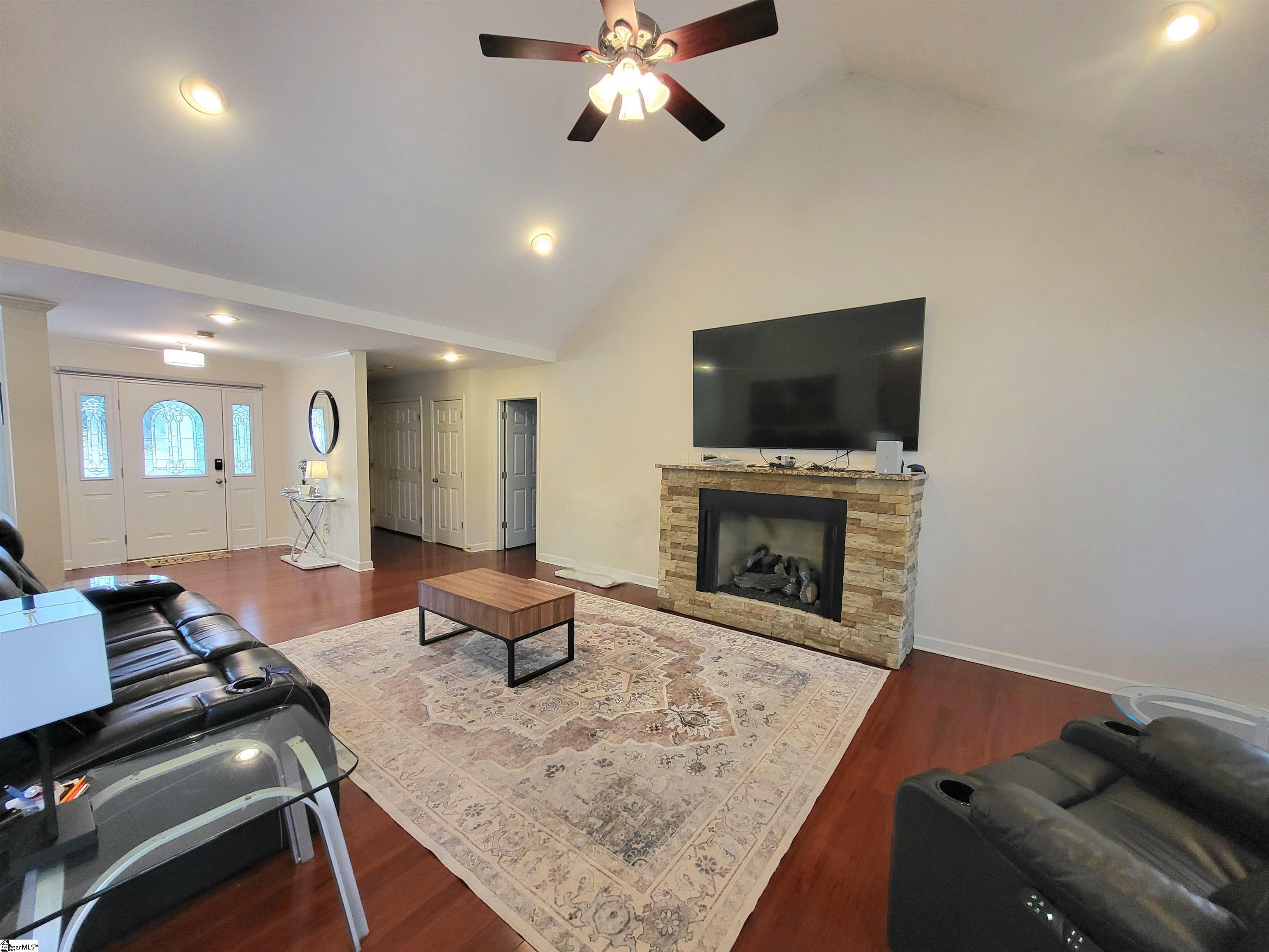 This is a fantastic home with so much to offer! Situated on .67 acre with a lovely, flowing creek and bridge to the rear of the property and has a shed for extra storage. The bridge can support mowers, golf carts and ATVs. The lawn has a full sprinkler system in the front and back! You’ll love the natural surroundings and woods bordering the home. The interior offers beautiful floors throughout, a split and open floor plan, solid countertops, stainless appliances, vaulted and trey ceilings, a gas fireplace, an awesome screened porch overlooking the backyard, a great primary suite with a super huge walk-in closet, a walk-in tiled shower and a pretty claw-foot tub. Well-maintained and one sweet home! Just outside the city of Greer and conveniently located! This home will not last on the open market so act fast!