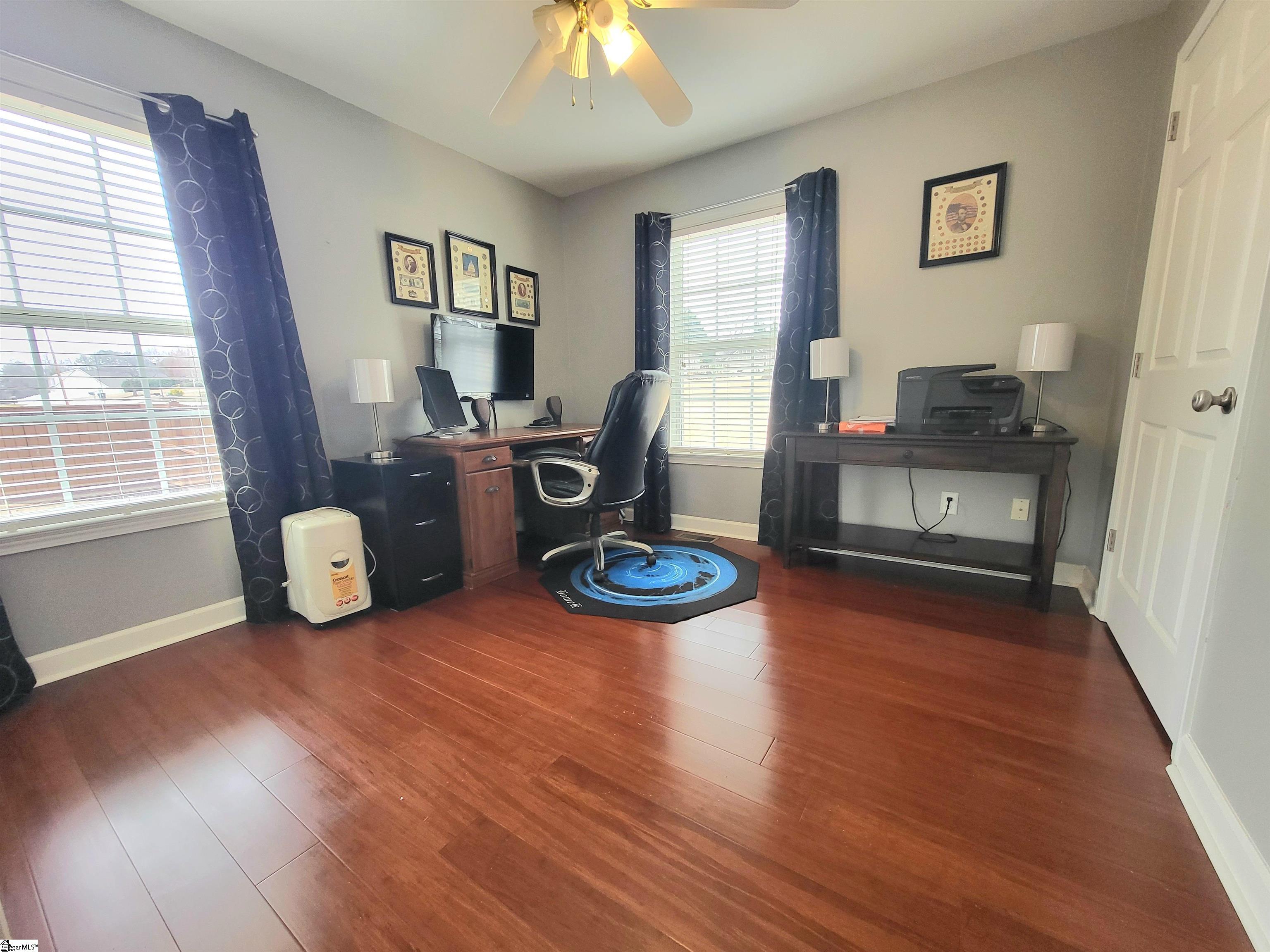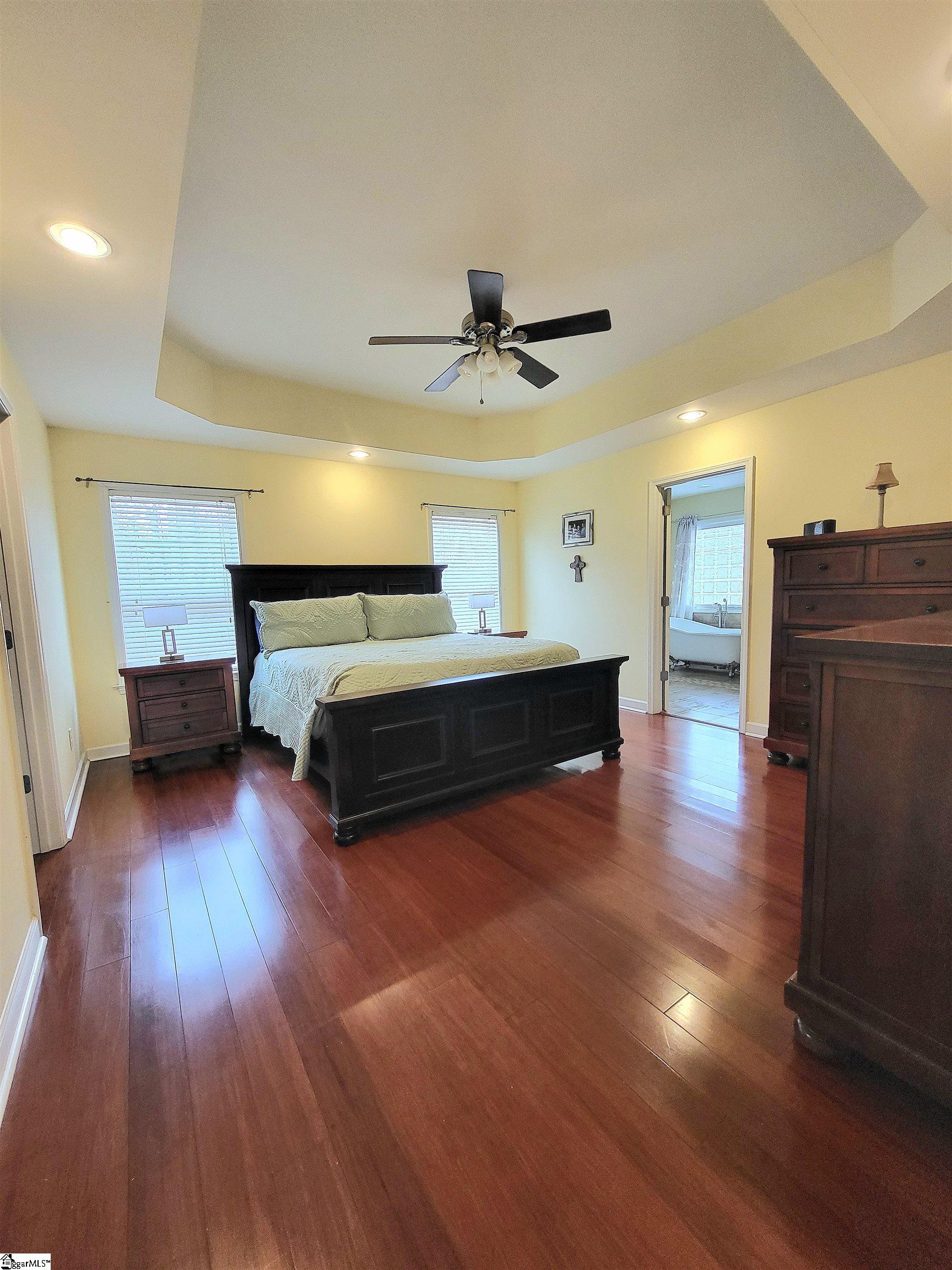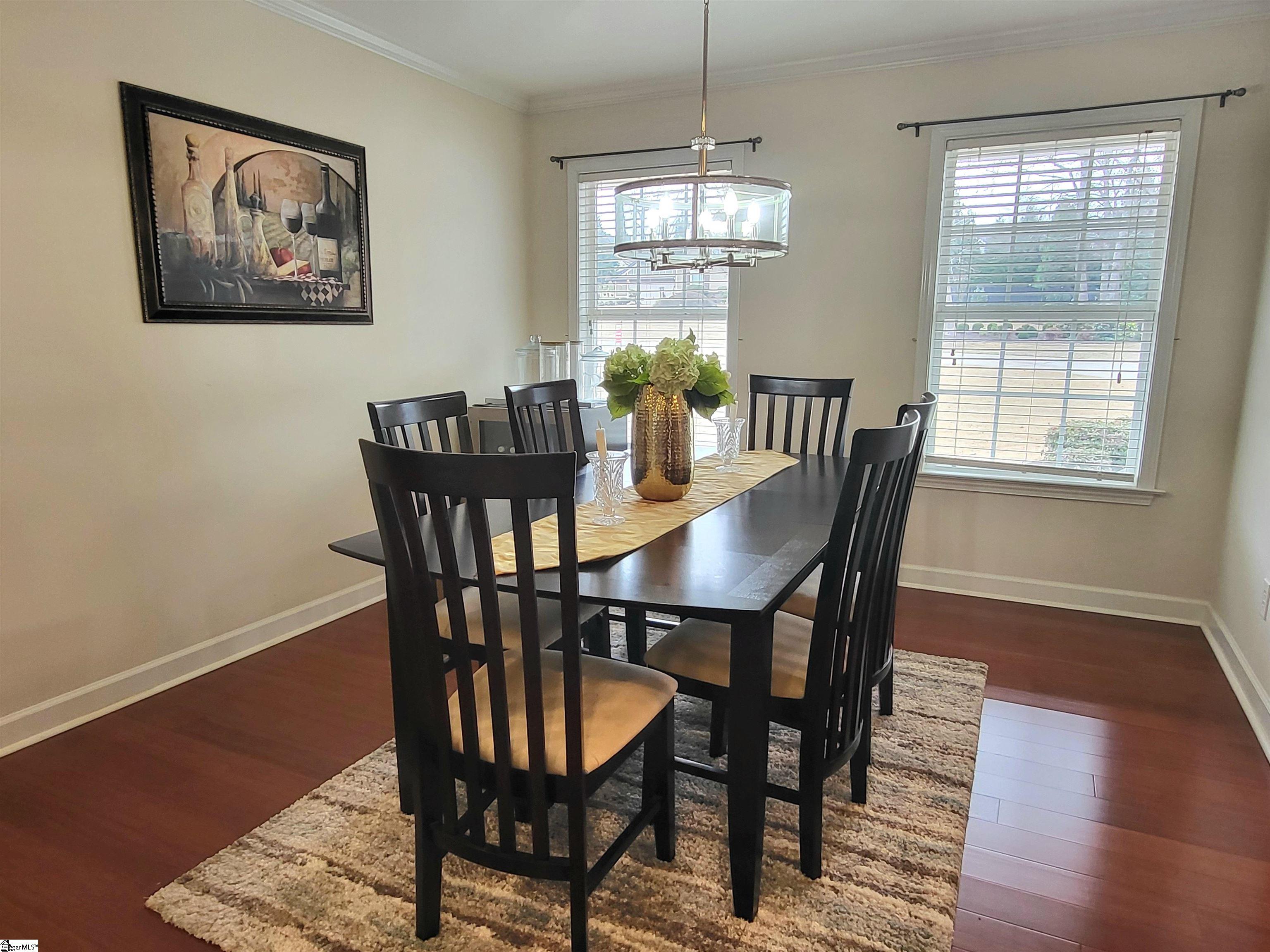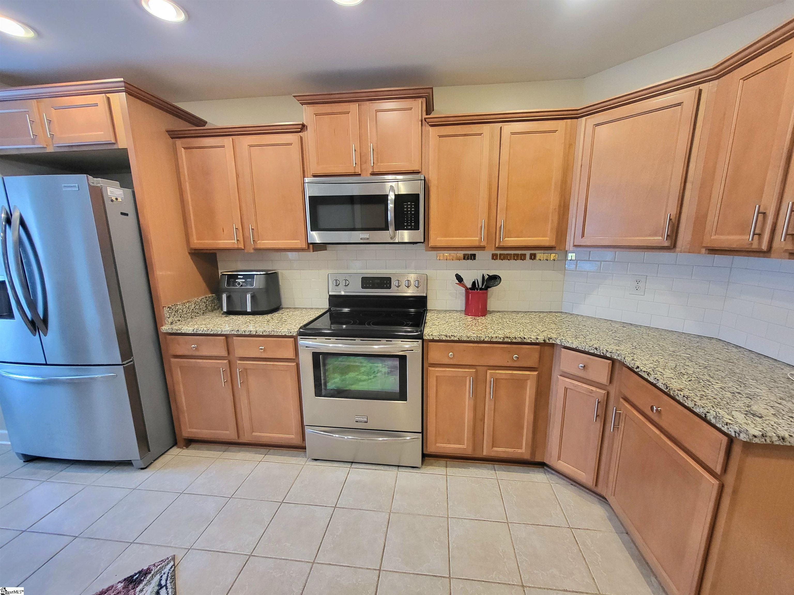 This is a fantastic home with so much to offer! Situated on .67 acre with a lovely, flowing creek and bridge to the rear of the property and has a shed for extra storage. The bridge can support mowers, golf carts and ATVs. The lawn has a full sprinkler system in the front and back! You’ll love the natural surroundings and woods bordering the home. The interior offers beautiful floors throughout, a split and open floor plan, solid countertops, stainless appliances, vaulted and trey ceilings, a gas fireplace, an awesome screened porch overlooking the backyard, a great primary suite with a super huge walk-in closet, a walk-in tiled shower and a pretty claw-foot tub. Well-maintained and one sweet home! Just outside the city of Greer and conveniently located! This home will not last on the open market so act fast!