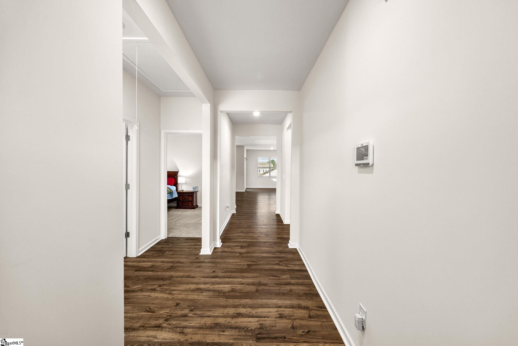Welcome to Brookside Farms in the desirable Mountain View community of Greer, where everyday living feels like a retreat. Enjoy breathtaking mountain views, gently rolling homesites, and scenic walking trails that wind through the neighborhood, leading to a stunning clubhouse and open-air pavilion. Whether you’re unwinding by the outdoor fireplace or gathering with friends and neighbors indoors, this community was designed for both relaxation and connection. The amenities truly set this neighborhood apart featuring two resort-style pools, pickleball and bocce ball courts, and a playground perfect for making lifelong memories. All of this is conveniently located just minutes from shopping, dining, hospitals, and more. Inside, this thoughtfully designed one-story home offers 3 bedrooms with a layout that blends comfort and functionality. The private primary suite is tucked toward the back of the home, while two secondary bedrooms sit at the front ideal for guests, family, or a home office. The open-concept living space features a cozy gas log fireplace and flows seamlessly into the kitchen, complete with granite countertops, Whirlpool stainless steel appliances, and a spacious walk-in pantry. The primary suite includes a generous walk-in closet and an en-suite bath with dual Venetian marble vanities and a large walk-in shower. A centrally located walk-in laundry room adds convenience, while the 2-car garage and covered back porch complete this highly desirable floor plan. This home also includes a smart home package, bringing modern connectivity and ease to your daily life.