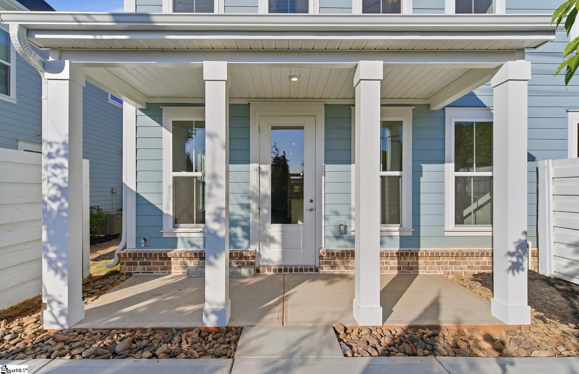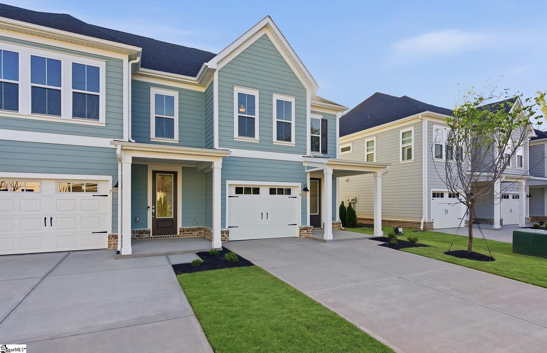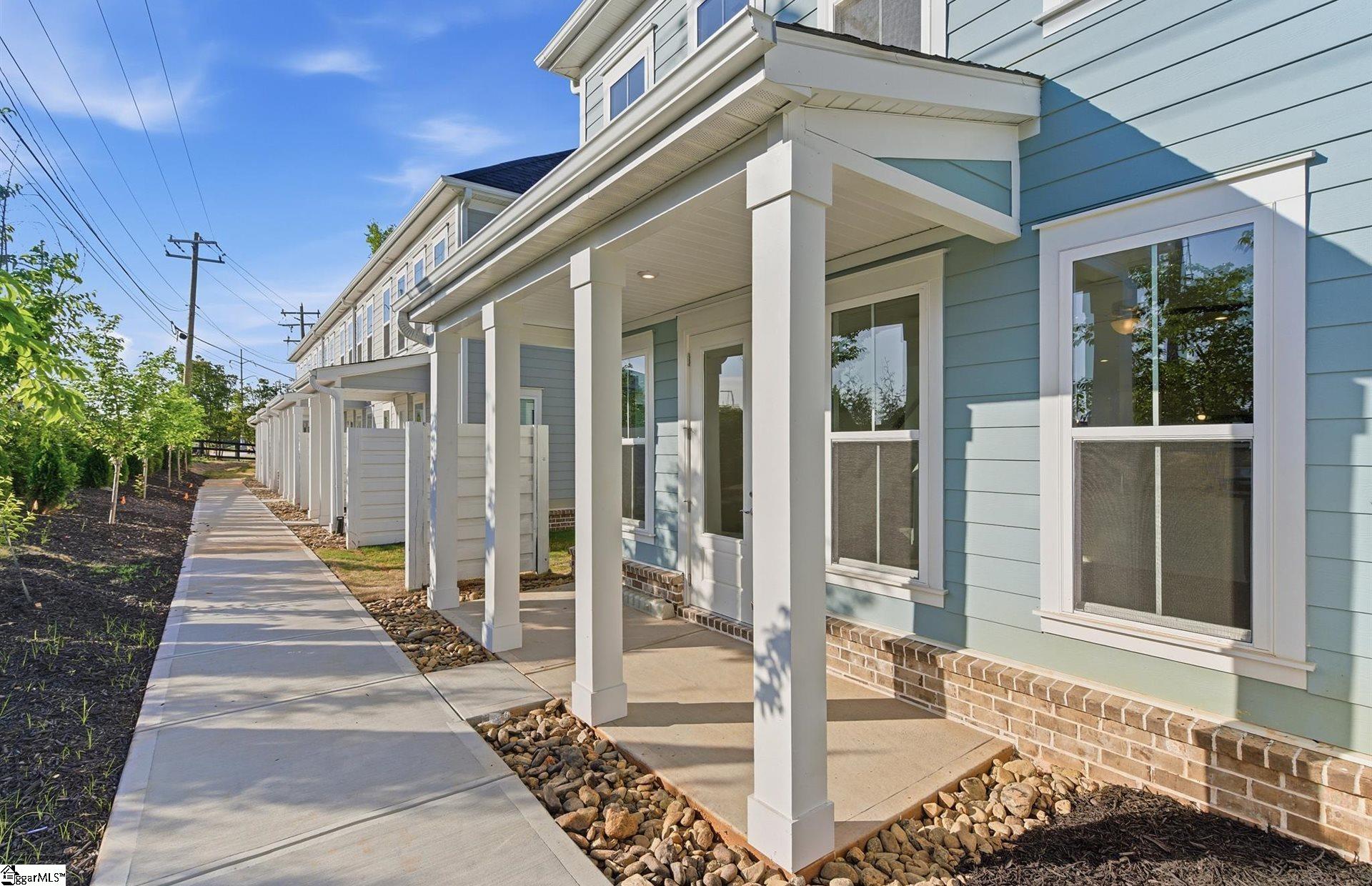 Discover boutique townhome living just minutes from vibrant Downtown Greenville—without the premium price tag. This thoughtfully designed community blends modern style, quality craftsmanship, and everyday convenience. The exterior features durable Hardie Board concrete siding, solid brick accents at the waterline on both front and rear elevations, an impressive 8-ft front entry door and backdoor with ¾ glass which allows in more light, 9-ft ceilings on both levels, and carriage-style garage doors with windows. Inside, you’ll find a refined interior featuring 7” Luxury Vinyl Plank flooring, Quartz countertops, Backsplash, Under Cabinet Lighting Package, Aristokraft cabinetry, and a Whirlpool stainless steel gas range and appliance package with exterior hood ventilation. Additional upgrades include Luxury Kitchen Package with in wall oven and microwave and stainless steel vent. Smart Home pre-wiring and an Owner’s Suite bathroom with tile extended to the ceiling in the shower—plus so much more. Community amenities invite you to relax and connect—meet neighbors at the Paw Park dog area or unwind by the cozy outdoor fire pit with comfortable seating. Each home includes an attached garage, and the driveways are generously sized with a full two-car width. PLUS we have ample overflow parking for visitors.
