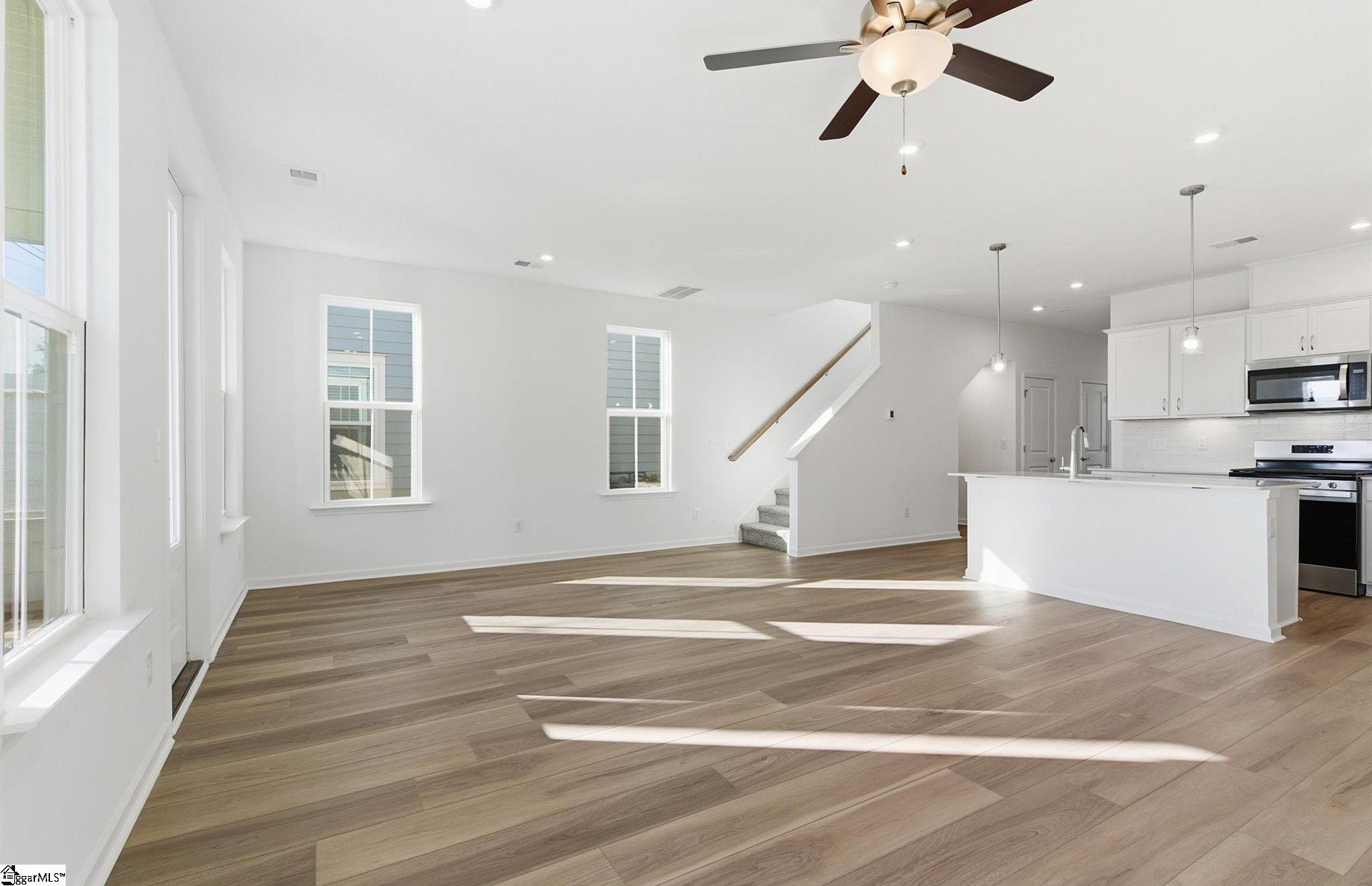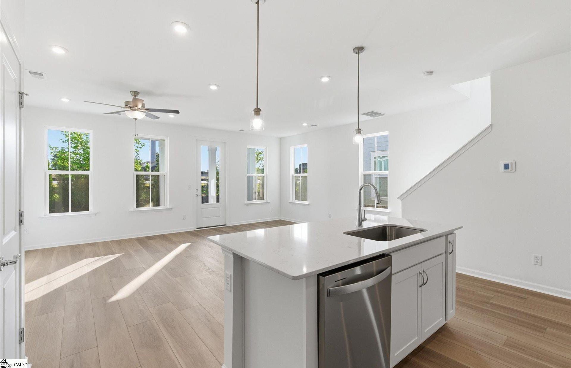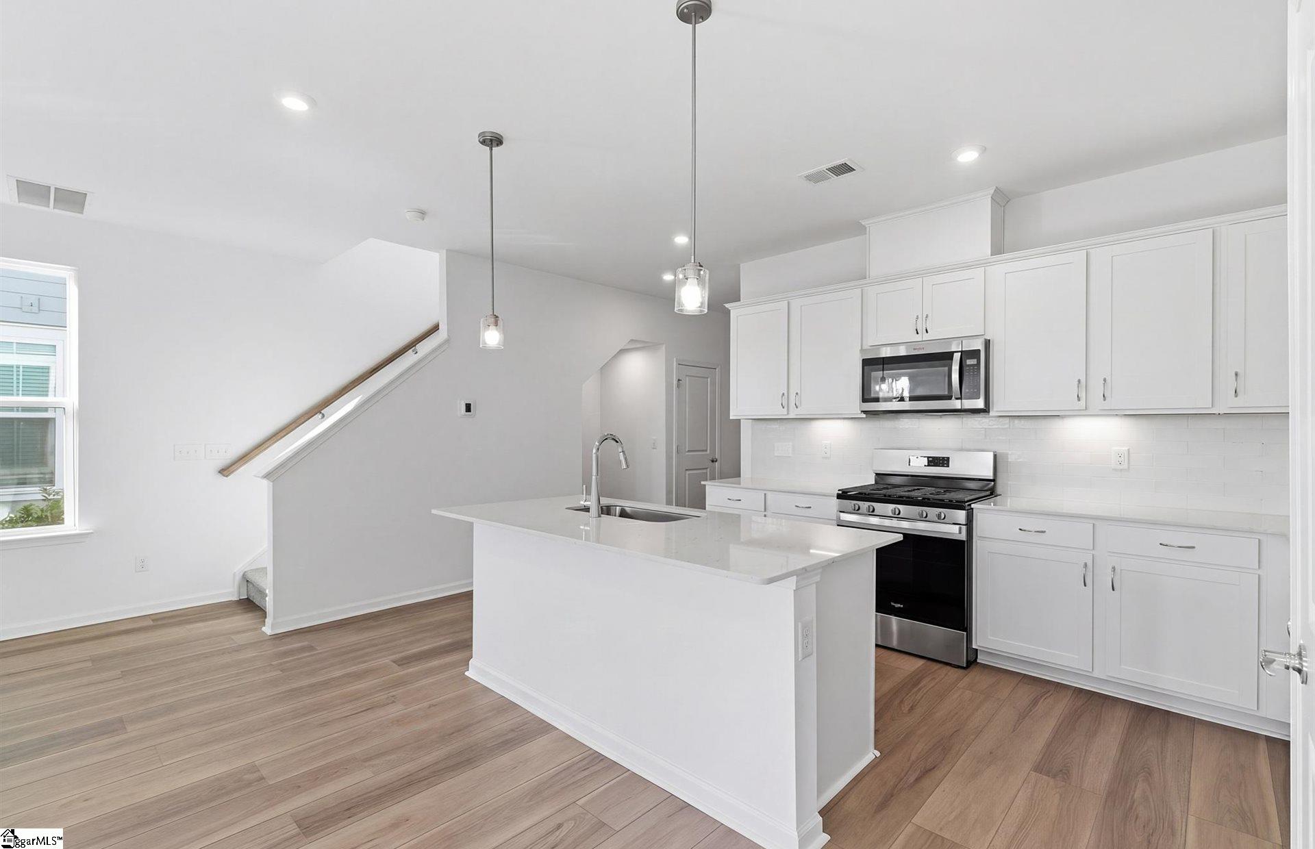 Discover boutique townhome living just minutes from vibrant Downtown Greenville—without the premium price tag. This thoughtfully designed community blends modern style, quality craftsmanship, and everyday convenience. The exterior features durable Hardie Board concrete siding, solid brick accents at the waterline on both front and rear elevations, an impressive 8-ft front entry door and backdoor with ¾ glass which allows in more light, 9-ft ceilings on both levels, and carriage-style garage doors with windows. Inside, you’ll find a refined interior featuring 7” Luxury Vinyl Plank flooring, Quartz countertops, Backsplash, Under Cabinet Lighting Package, Aristokraft cabinetry, and a Whirlpool stainless steel gas range and appliance package with exterior hood ventilation. Additional upgrades include Luxury Kitchen Package with in wall oven and microwave and stainless steel vent. Smart Home pre-wiring and an Owner’s Suite bathroom with tile extended to the ceiling in the shower—plus so much more. Community amenities invite you to relax and connect—meet neighbors at the Paw Park dog area or unwind by the cozy outdoor fire pit with comfortable seating. Each home includes an attached garage, and the driveways are generously sized with a full two-car width. PLUS we have ample overflow parking for visitors.