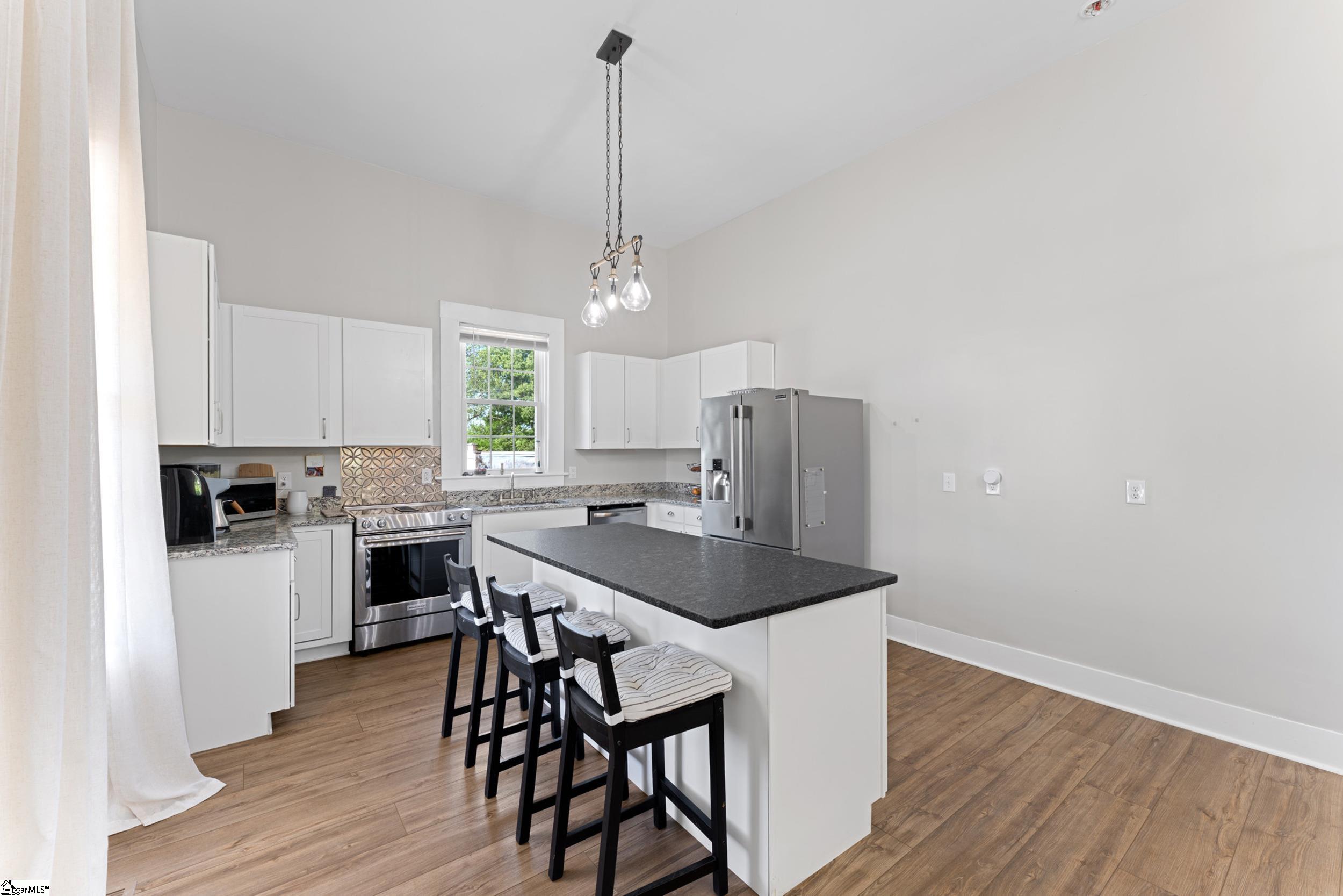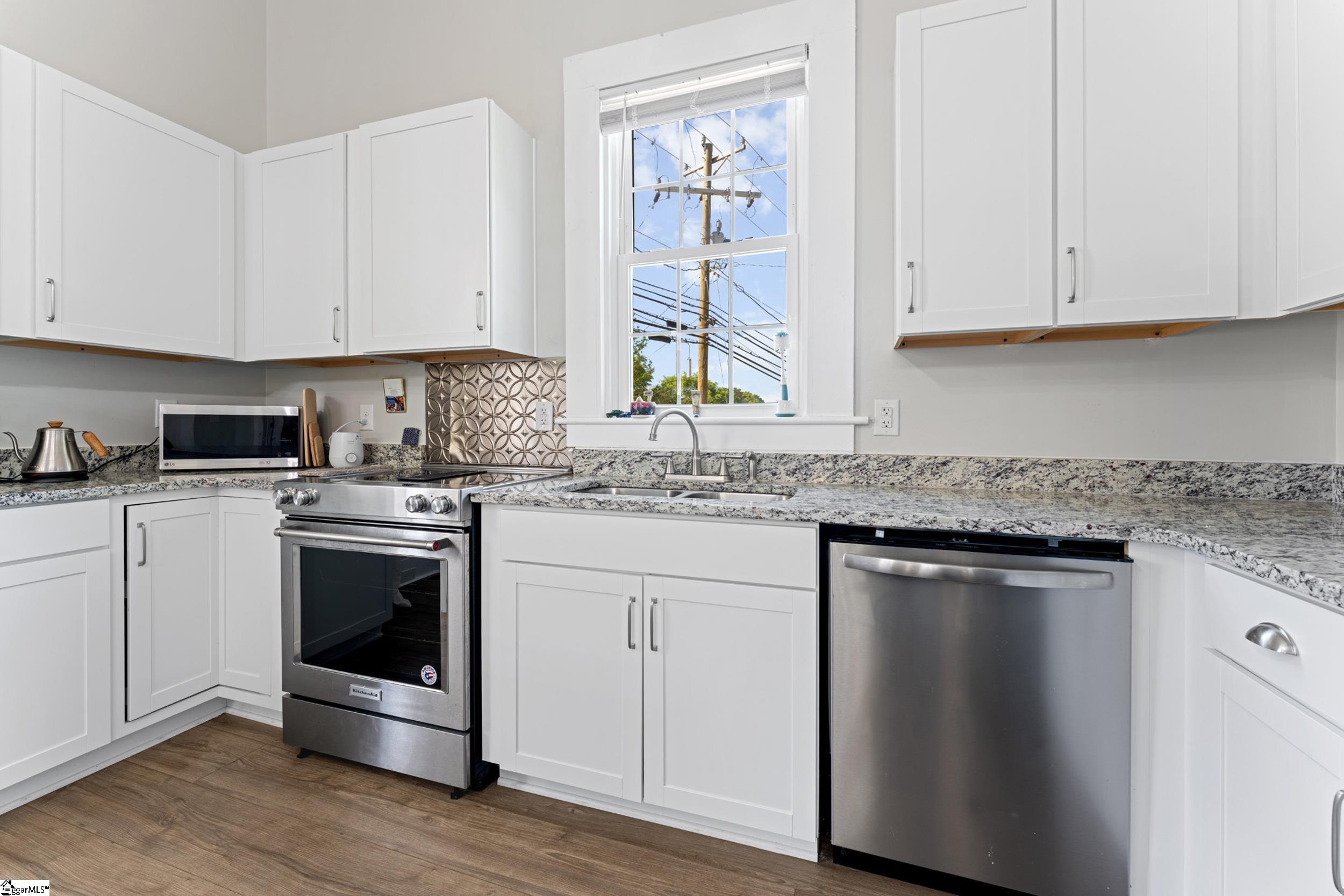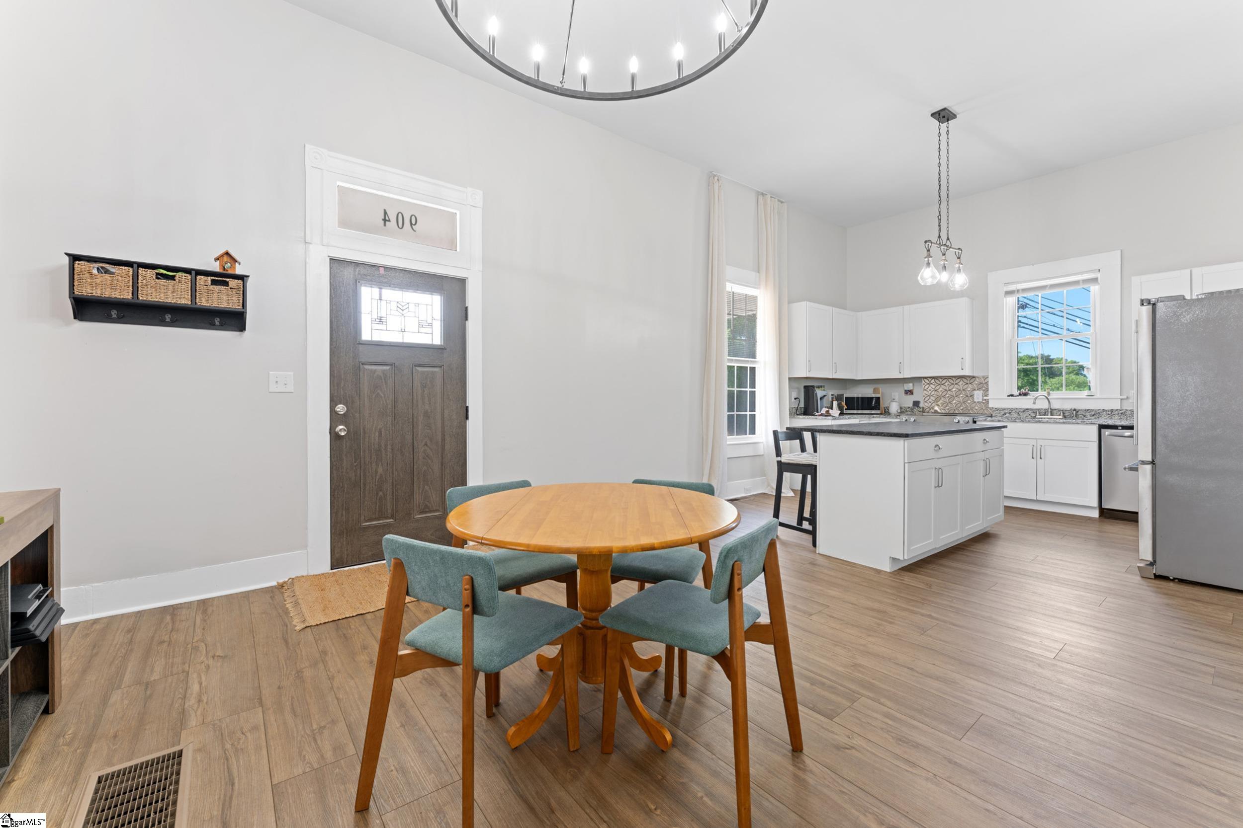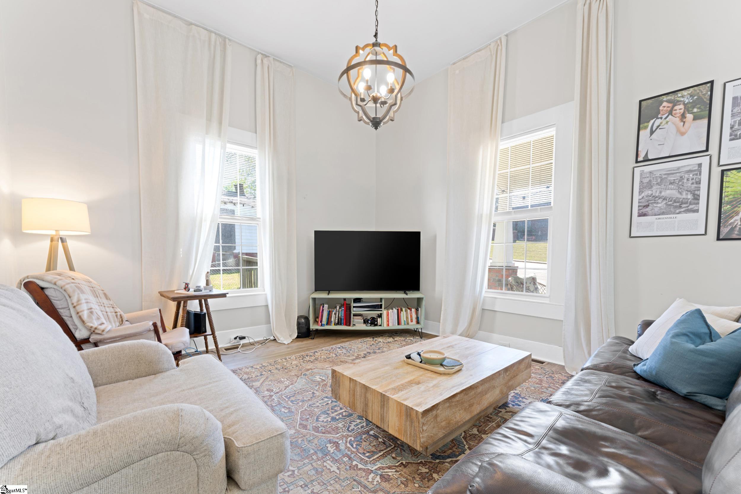 Classic Craftsman charm meets fully updated modern living on one of Greenville’s best-positioned lots. Set on a half-acre just minutes from Downtown Greenville, the Swamp Rabbit Trail, Augusta Road, and all the shops and restaurants that make this city one of the most desirable places to live in the Southeast — 904 Anderson Rd delivers location, character, and space that is increasingly hard to find at this price point. The full-width covered front porch with brick column bases sets the tone before you even walk in the door. Inside, tall ceilings and oversized windows flood the open-concept living and dining areas with natural light, anchored by designer pendant and chandelier lighting throughout. The kitchen is a true centerpiece — white shaker cabinetry, granite countertops, a decorative tile backsplash, stainless steel appliances, and a large center island with bar seating, all flowing seamlessly into the dining and living spaces. The main level features three bedrooms and two full baths, including a spacious primary suite with dual closets and a private en-suite with double vanity. The additional bedrooms are well-sized with great natural light and ample closet space. The basement level offers a private fourth bedroom and bathroom accessible via a separate exterior entrance — ideal for guests, extended family, or rental income potential. Sitting on a half-acre lot in an area surrounded by some of Greenville’s fastest-appreciating real estate, this one will not last.