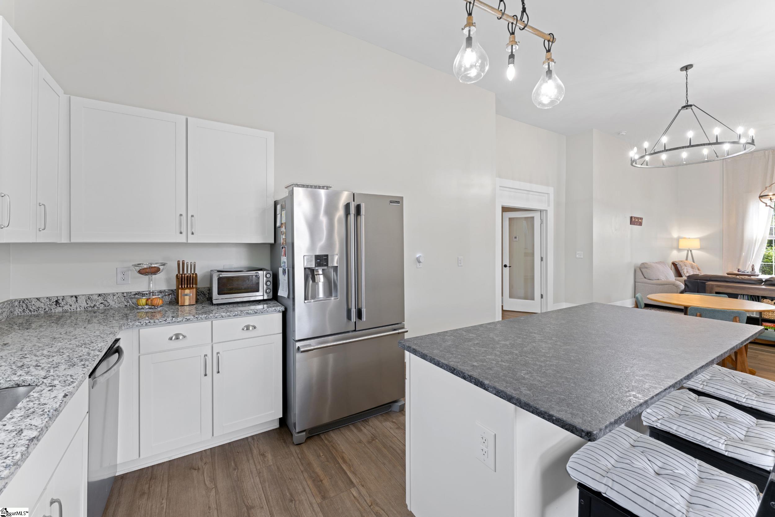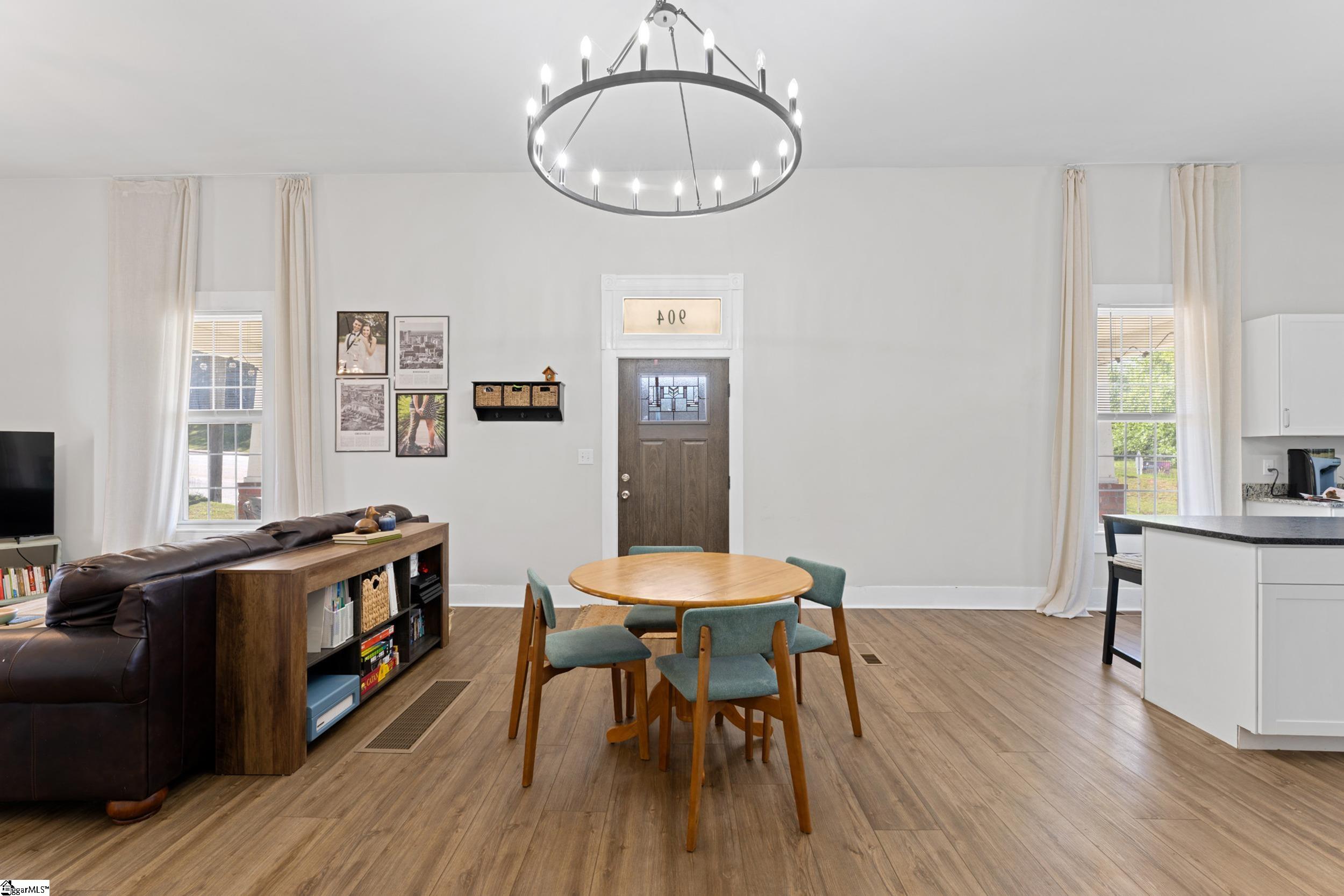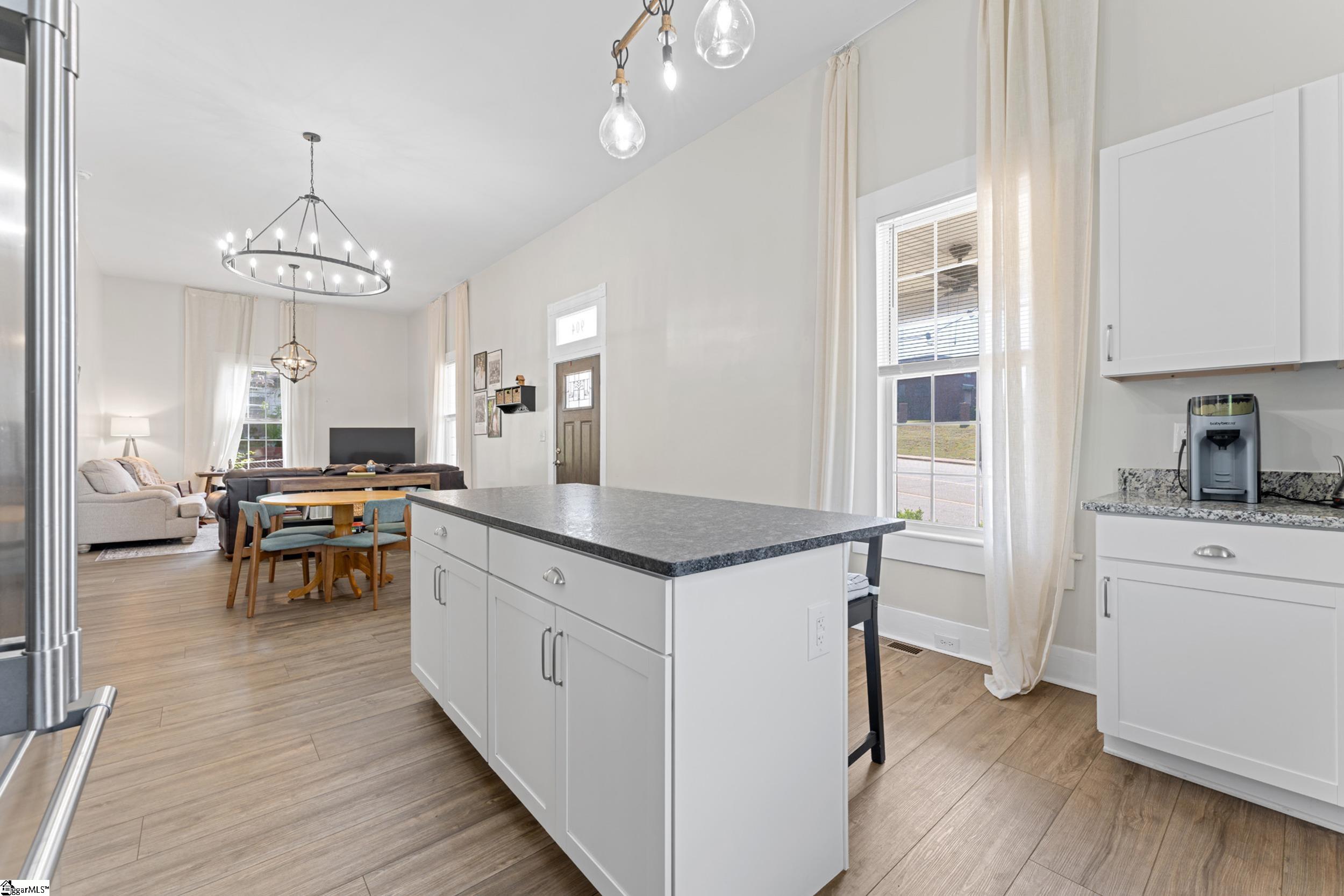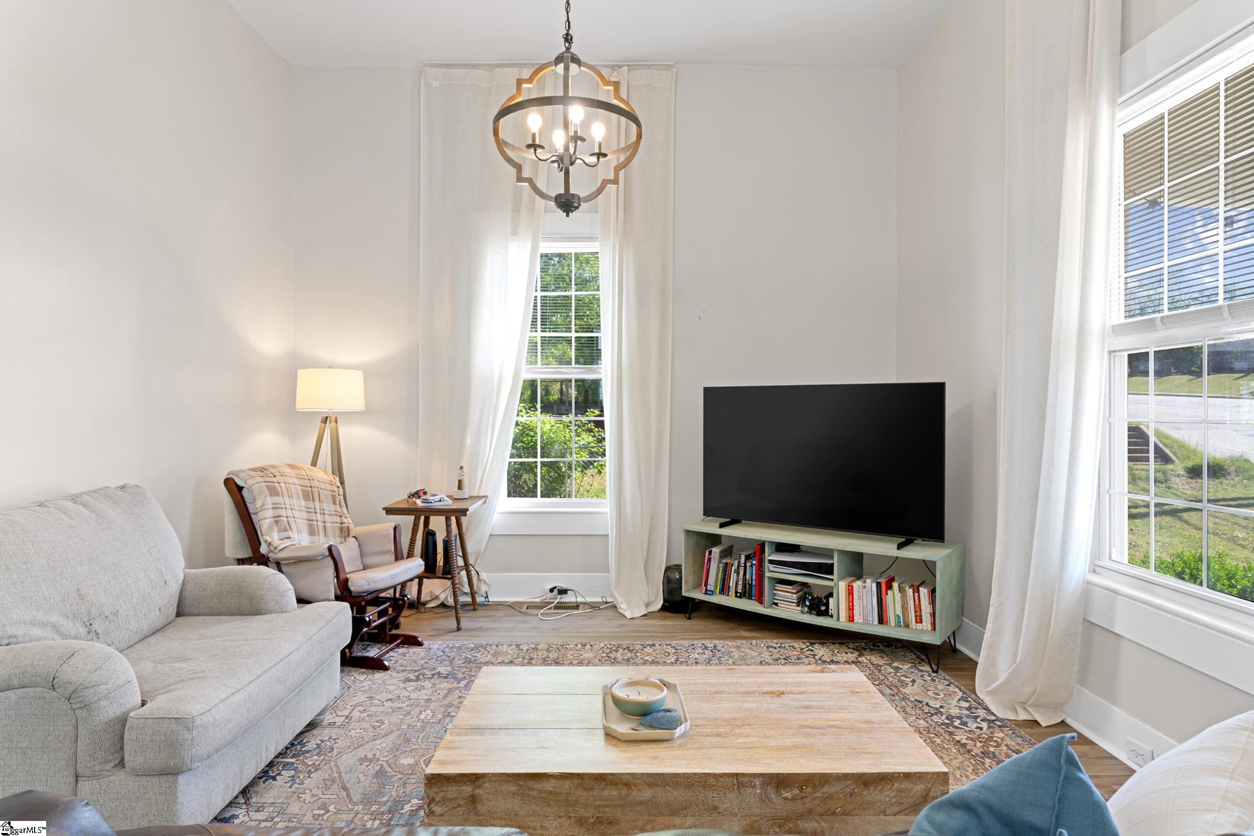 Classic Craftsman charm meets fully updated modern living on one of Greenville’s best-positioned lots. Set on a half-acre just minutes from Downtown Greenville, the Swamp Rabbit Trail, Augusta Road, and all the shops and restaurants that make this city one of the most desirable places to live in the Southeast — 904 Anderson Rd delivers location, character, and space that is increasingly hard to find at this price point. The full-width covered front porch with brick column bases sets the tone before you even walk in the door. Inside, tall ceilings and oversized windows flood the open-concept living and dining areas with natural light, anchored by designer pendant and chandelier lighting throughout. The kitchen is a true centerpiece — white shaker cabinetry, granite countertops, a decorative tile backsplash, stainless steel appliances, and a large center island with bar seating, all flowing seamlessly into the dining and living spaces. The main level features three bedrooms and two full baths, including a spacious primary suite with dual closets and a private en-suite with double vanity. The additional bedrooms are well-sized with great natural light and ample closet space. The basement level offers a private fourth bedroom and bathroom accessible via a separate exterior entrance — ideal for guests, extended family, or rental income potential. Sitting on a half-acre lot in an area surrounded by some of Greenville’s fastest-appreciating real estate, this one will not last.