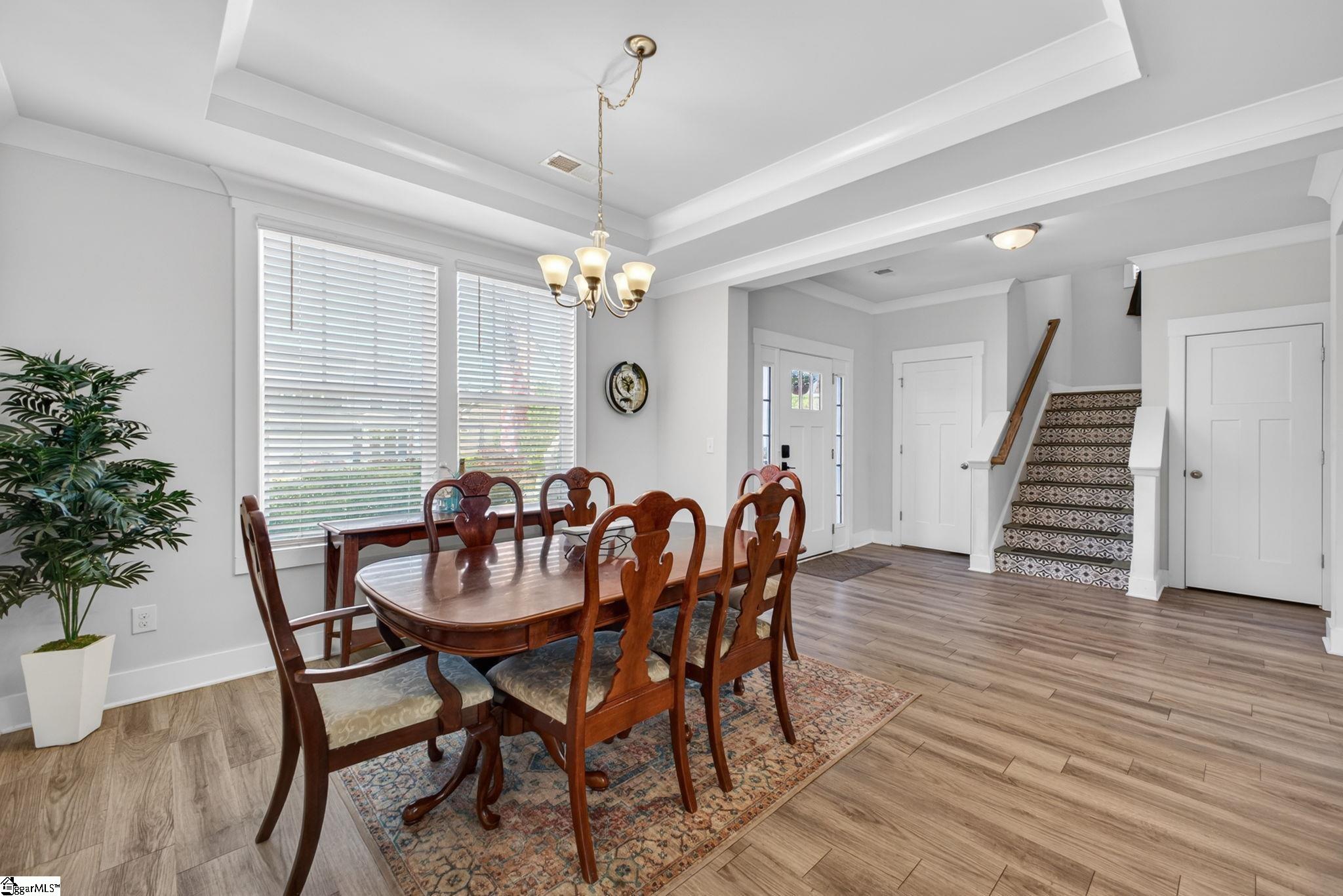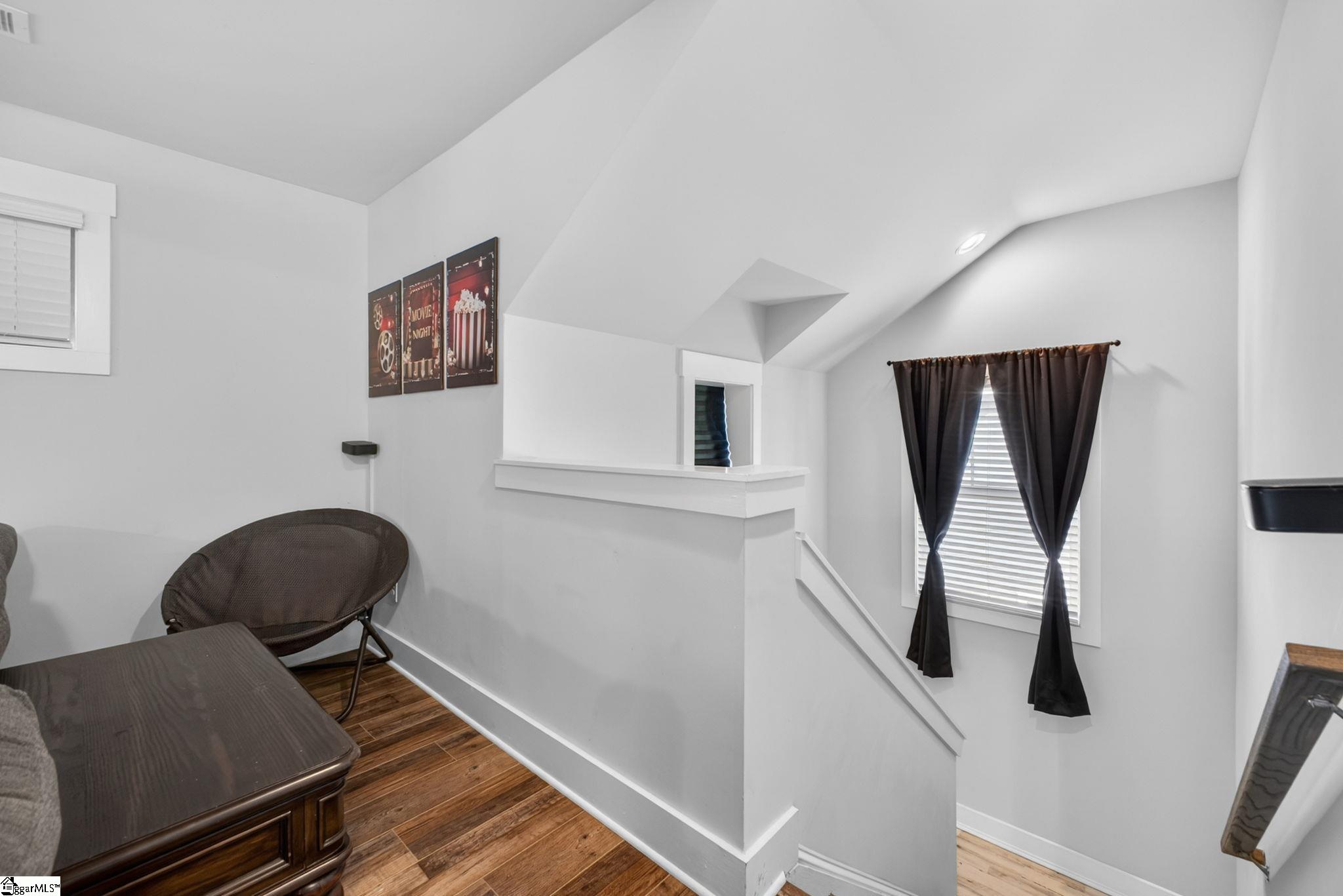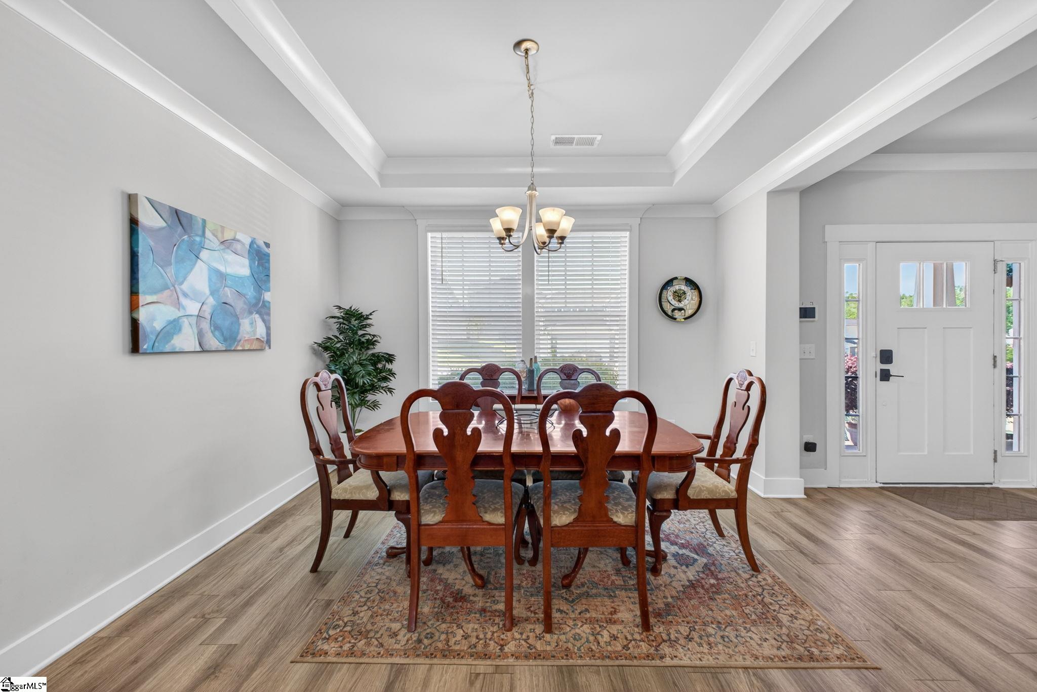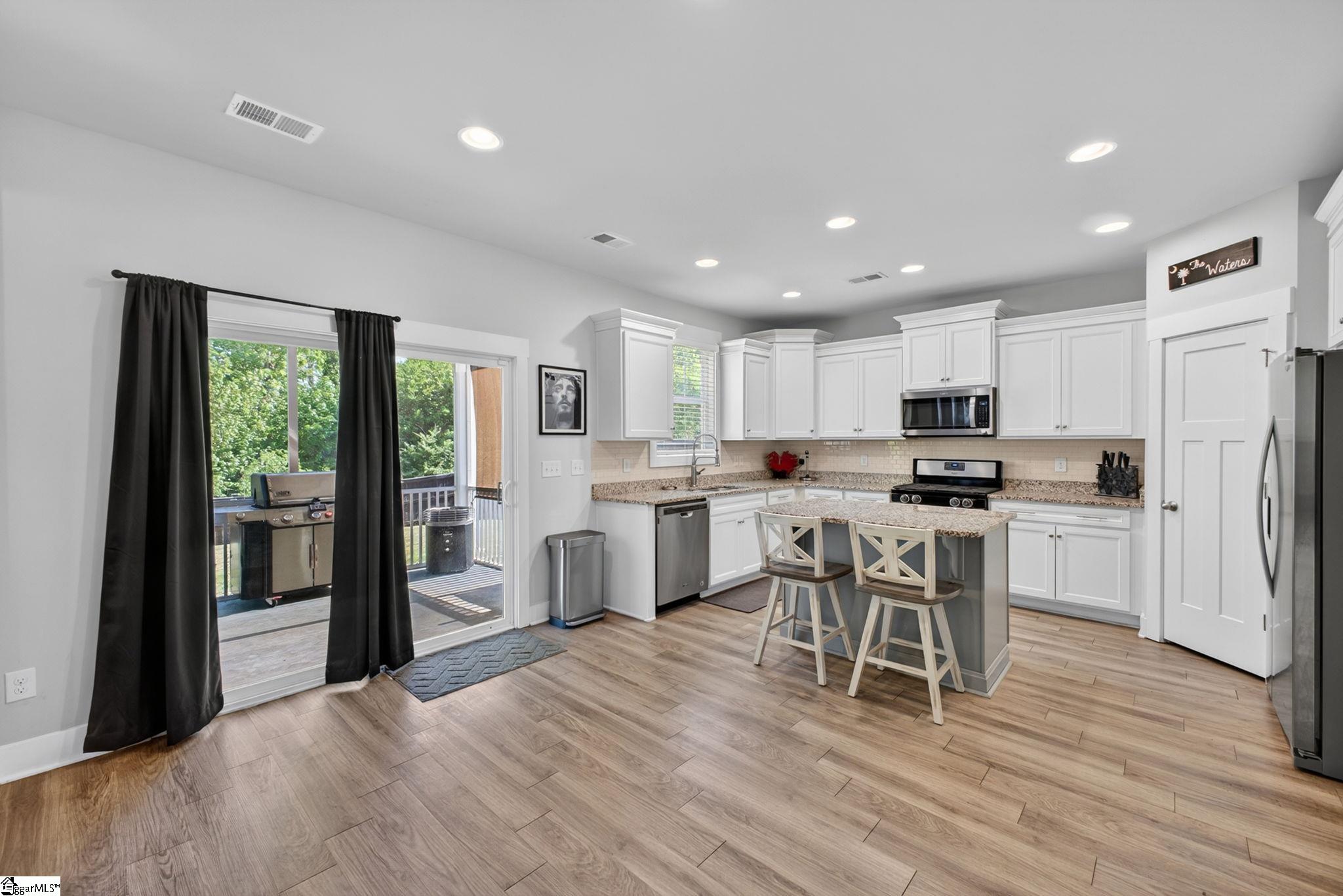 Located in the charming Coventry community just two miles from downtown Simpsonville, this beautiful craftsman-style home offers over 2,600 square feet of modern living space on nearly a half-acre lot. This property features a striking hardboard and stone exterior with a welcoming front porch and an extended paved driveway leading to a home fully equipped for comfort and security, including a 9.6 kW dual-fuel generator with a dedicated home connection. The main level is designed with an open-concept flow, beginning with an oversized foyer. The chef-inspired kitchen has premium granite countertops, a large center island, and upgraded staggered cabinetry. This space flows into the breakfast area and a formal dining room. A bedroom and full bathroom are also located on the main floor, offering an ideal setup for an in-law suite, guest retreat, or office! Upstairs, the expansive primary suite features tray ceilings, a gigantic walk-in closet, and a private bathroom with dual vanities and a tiled shower with a built-in seat. The second level also includes two additional guest bedrooms and a versatile loft that has been professionally transformed into a state-of-the-art home theater, perfect for cinematic movie nights. Outdoor living is truly exceptional on this property. Step out onto the private screened porch to find a backyard oasis that includes a luxury hot tub, a high-end natural gas grill with a permanent connection, and a dedicated play area featuring a premium springless trampoline and low-maintenance rubber mulch. The fenced backyard offers ultimate privacy, with the property line extending into the lush wooded area. Residents of Coventry enjoy neighborhood amenities including a community pool!