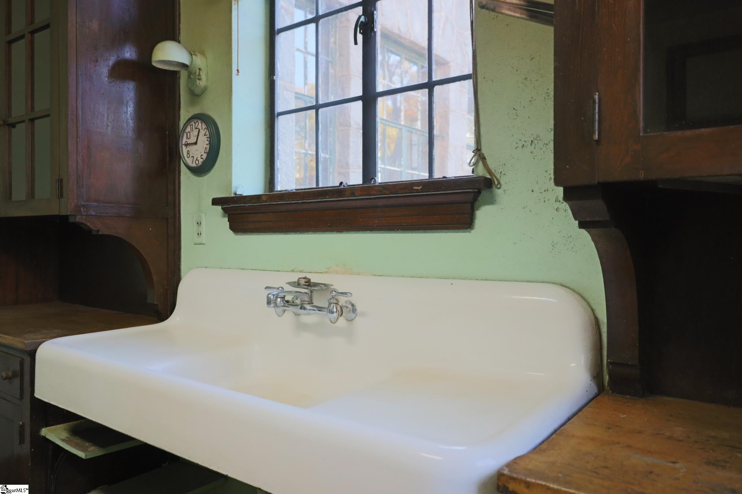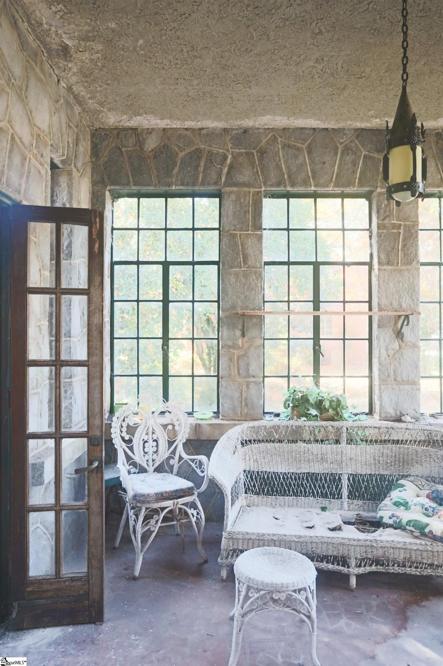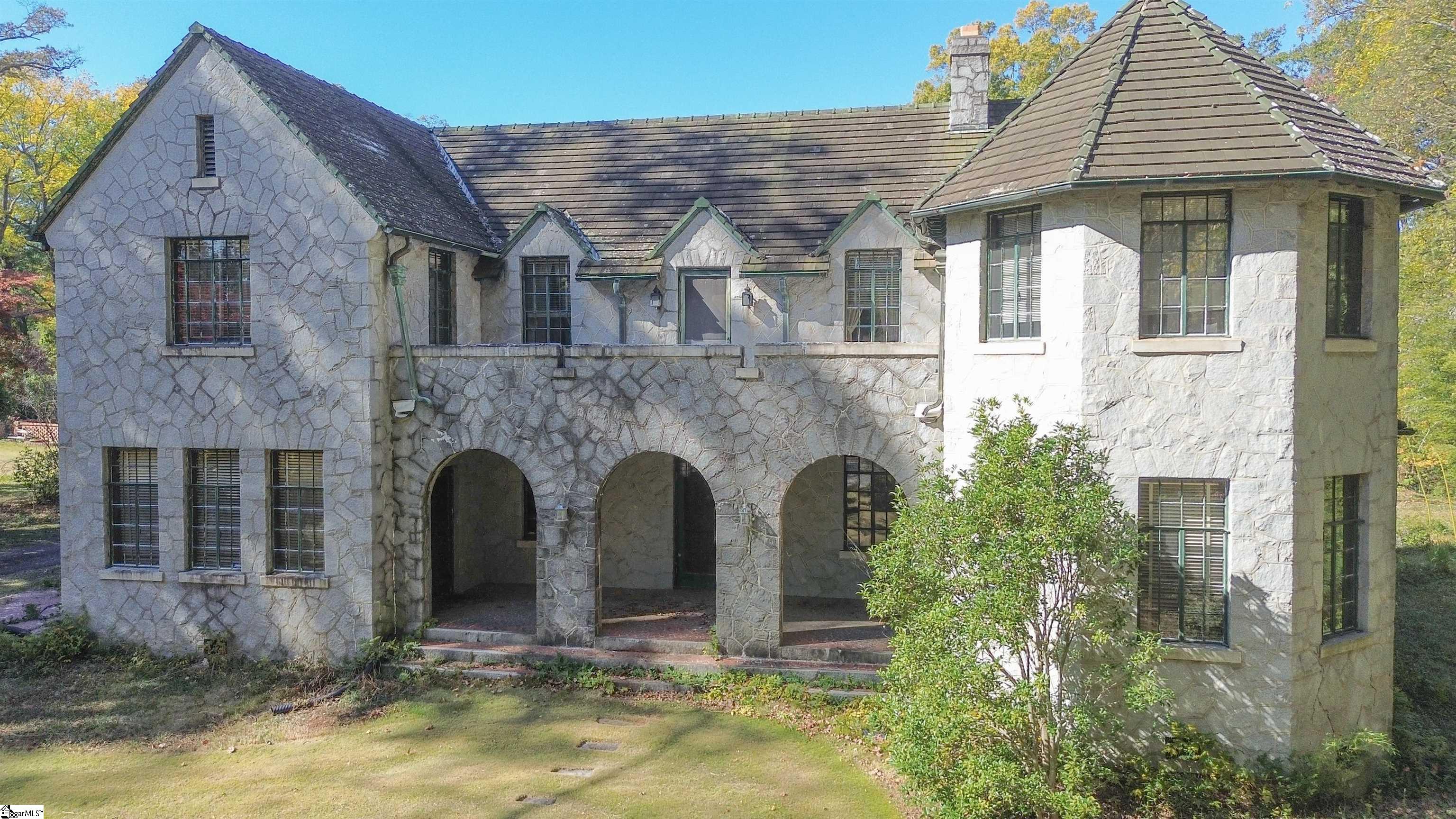 If this home could talk this is what it would say. I was built in 1934 by the first woman doctor (Dr. Anne Austin Young) in the state of South Carolina. I was the talk of the town in Anderson back then and I could be once again. I was designed like a castle inside and out on 1.2 acres. I offer 4,120 sq ft of living space with 6 bedrooms, three full baths & 4 fireplaces. City water & sewer. There is a well on the property that works fine and supplies the home with excellent water. You will have a choice. A total of 12 rooms. I am located next to Cater Lake. The lake area is under-going a complete face lift with a park setting. Quite and improvement. I am built with Granite Stone top to bottom from Elberton, Ga. The exterior doors are from the Redwood Forest in California and all the oak woodwork inside is from the Pisgah Forest. I must stress, I am not a tear down and my bones are very good as they don’t use materials like this too often anymore. There are two large gathering areas, one on main level 28’x18′ & one on the upper level 28’x18′. These rooms are huge. On main level is a library in the lower part of the tower. There’s conservatory off the butler pantry. All the wrought iron work railings and hanging fixtures were custom made by a gentleman in Greenville. Fireplaces with massive mantelpieces show the Young coat-of-arms. I feel once you see my structure inside and out you will see the great detail. Even the tile roof is still protecting my insides. There was a leak in one of my bedrooms. The roof was repaired but the inside ceiling needs to be finished. The leak was repaired. Lastly there is a cellar, and furnace area. I want to prove that I can shine once more. I promise I can be great again. There is a two car detached garage also Granite behind the home with a second level offering a 2 room apartment with bath. Four tenths of a mile to Anderson College. “SOLD AS IS” There are also 2 other properties adjoining that are for-sale. If someone has interest in the entire estate you can purchase it for $1,503,000. This would be two homes plus the extra lots. Total acreage would then be 6.31.
