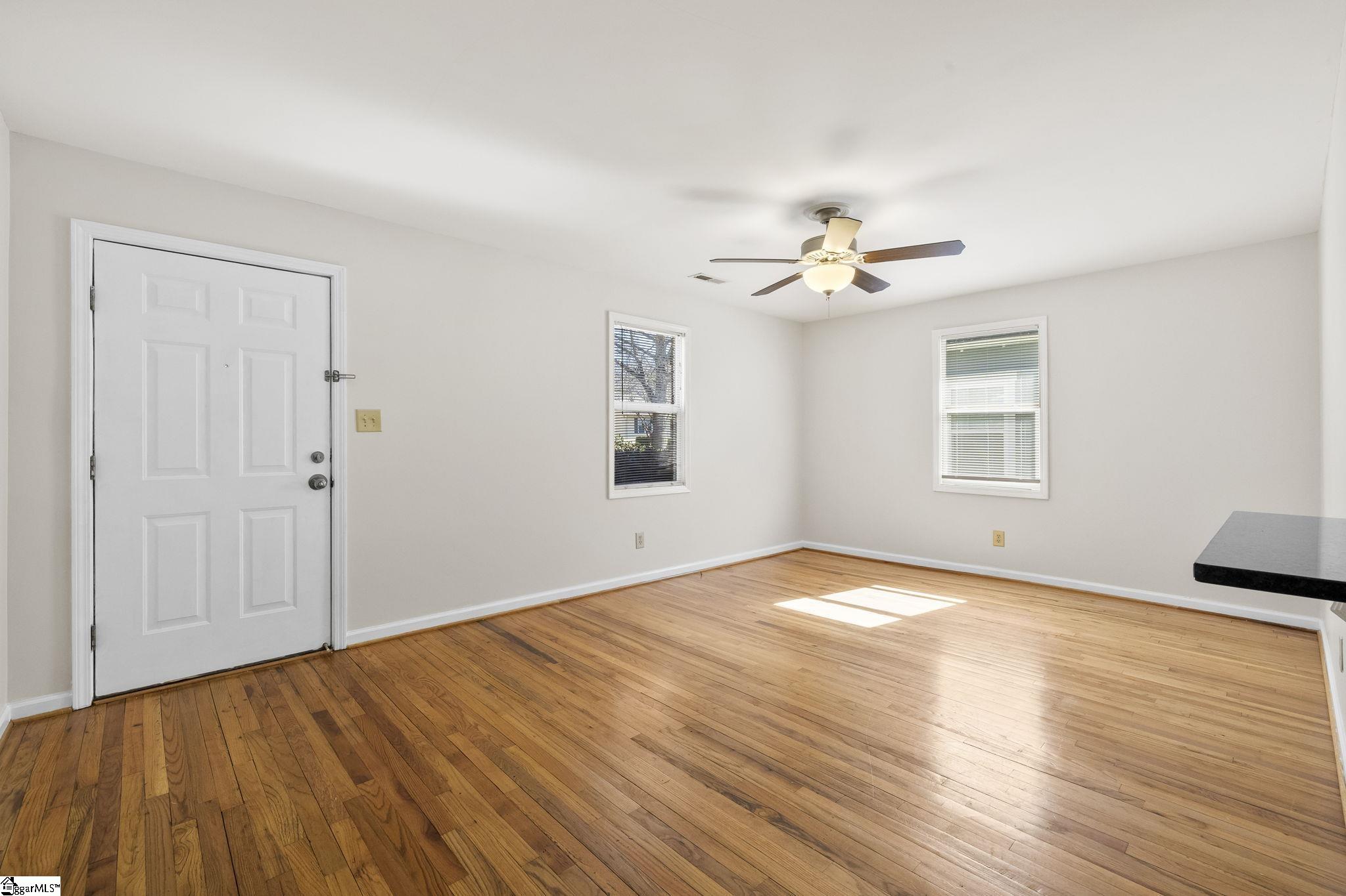 Rare opportunity to own a duplex within walking distance to the heart of Greenville and just minutes from Unity Park. This well-maintained property features two 2-bedroom, 1-bath units, making it a strong addition to a rental portfolio or an ideal house-hack opportunity in a high-demand location. Each side features warm hardwood floors, comfortable living space, and an easy-flow layout. The kitchens are efficient and open to the main living area, and the bathrooms have been refreshed with updated tile and vanities. Both units have private front entrances, rear access doors, and dedicated parking. The brick exterior offers long-term durability and low maintenance. Unit B is currently leased at $1,500/month, providing immediate income from day one. Prime location near downtown and Unity Park, solid rental history, and strong walkability make this a standout investment opportunity.