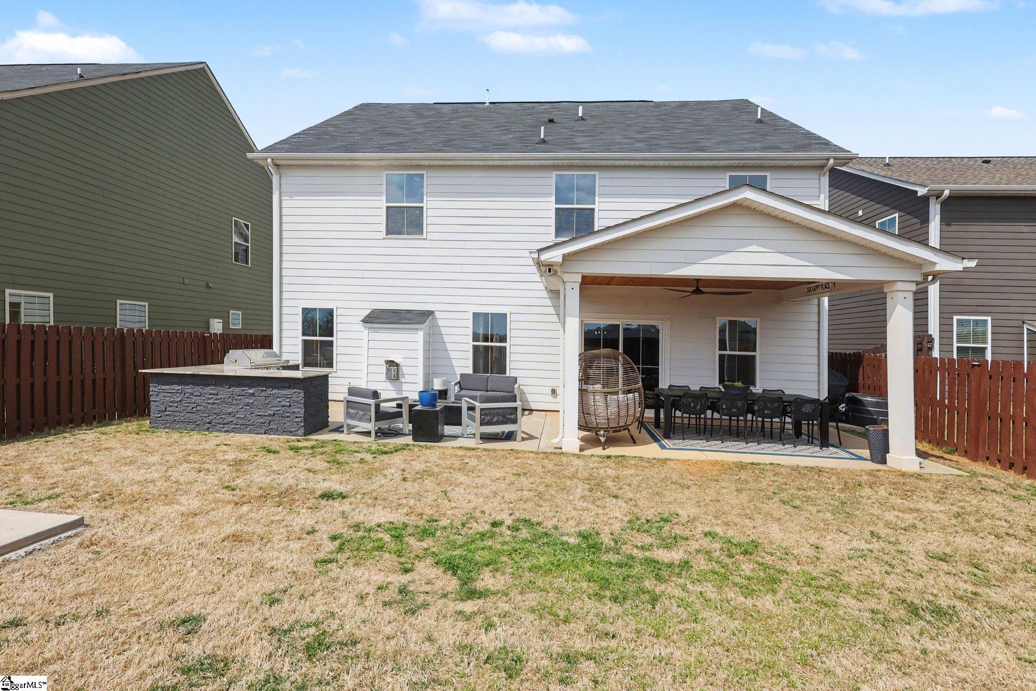Better than new, this stunning home looks like it’s straight out of the pages of a magazine! Thoughtfully designed with both everyday and entertaining in mind, this home offers 4 bedrooms and 4 full bathrooms with flexible space to fit your needs. The main level features a beautiful front room currently used as a piano with a walk in closet-easily converted into a guest suite. The open concept living area showcases wood floors, a formal dining room, and a chef’s kitchen complete with quartz countertops, farmhouse sink, upgraded 6-burner gas stove, and a spacious walk in pantry. The living room centers around a striking stone fireplace, perfect for cozy nights in. Upstairs, the primary suite offers a spa-like feel with an upgraded shower featuring a frameless glass door, dual shower heads, and a bench, along with dual walk in closets. Additional bedrooms are generously sized and also include walk in closets. Step outside to a fully fenced backyard built for entertaining! The custom outdoor kitchen in a standout, featuring a gas grill, gas burner, mini fridge, built in storage, hidden trash, stone siding, and granite countertops. Don’t miss your chance to own this incredible home that perfectly blends style, comfort, and functionality!