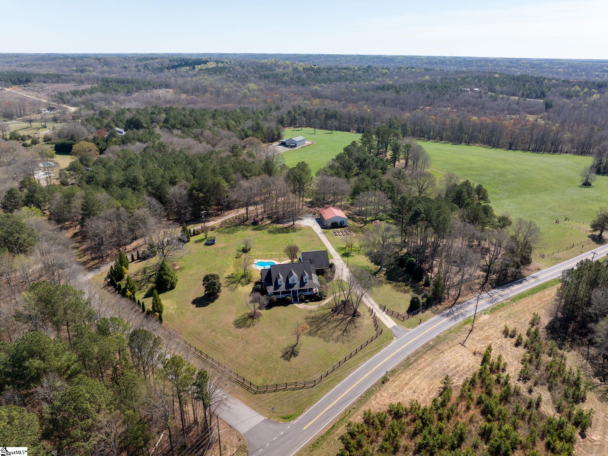 Welcome to this stunning all-brick estate on 7+ private acres at 950 Hamlin Rd in Easley, offering the perfect blend of privacy and convenience just 5-10 minutes from schools and town. With 5 bedrooms and 3.5 bathrooms, this home provides ample space for comfortable living and entertaining. The recently remodeled kitchen is a true showpiece, featuring new countertops, all-new stainless steel appliances, taupe cabinetry, gold accents, double wall ovens, island seating, and a butler’s pantry complete with a built-in microwave drawer and beverage fridge. The open-concept layout flows seamlessly into the living area, highlighted by a beautifully updated fireplace, creating a warm and inviting space. In addition to the kitchen and living space renovations, other recent upgrades include fresh interior paint, refinished hardwood floors, new carpet throughout, and a remodeled half bath, offering a move-in ready experience. The main-level primary suite features his-and-hers closet space with custom built-ins, a spacious en-suite bath with double sinks, a walk-in shower, and a jetted soaking tub. A secondary bedroom/flex space and light-filled office are also located on the main floor, while upstairs offers additional bedrooms with extra storage and attic access. A sixth bedroom above the garage provides flexible space for guests, a bonus room, or private retreat. Outdoor living is just as impressive, with a private pool and expansive pool deck, covered back porch, and outdoor fire pit – perfect for entertaining or relaxing. A 1,440 SF pole barn functions as a 3-bay garage/workshop with extensive space for any hobby. In addition to the detached workshop, the property features an orchard, flower and garden space with newly installed raised beds. The extended gravel driveway provides easy access, and the fully fenced property includes a gated entrance and negotiable chicken coop. A rare opportunity to enjoy acreage, privacy, and modern updates, all in a convenient Easley location.